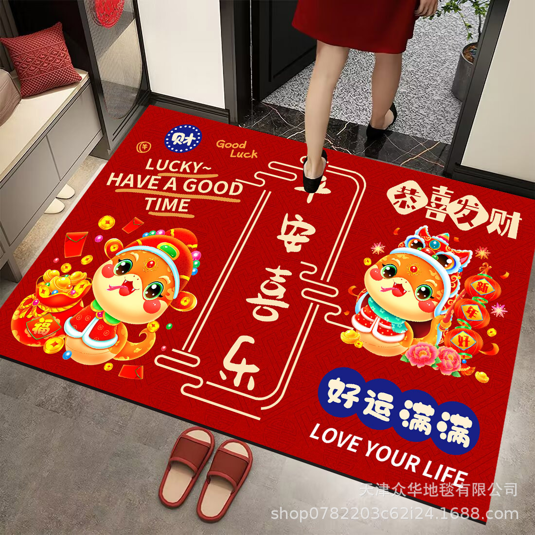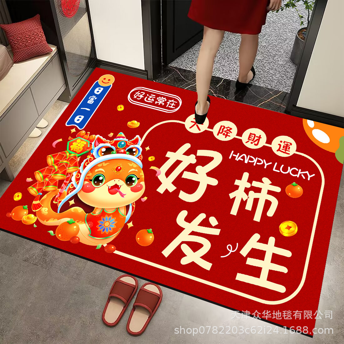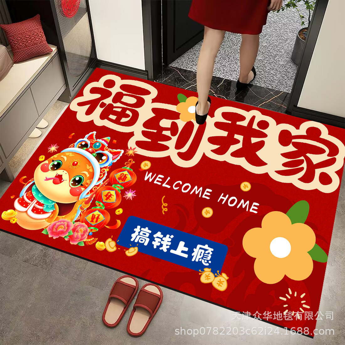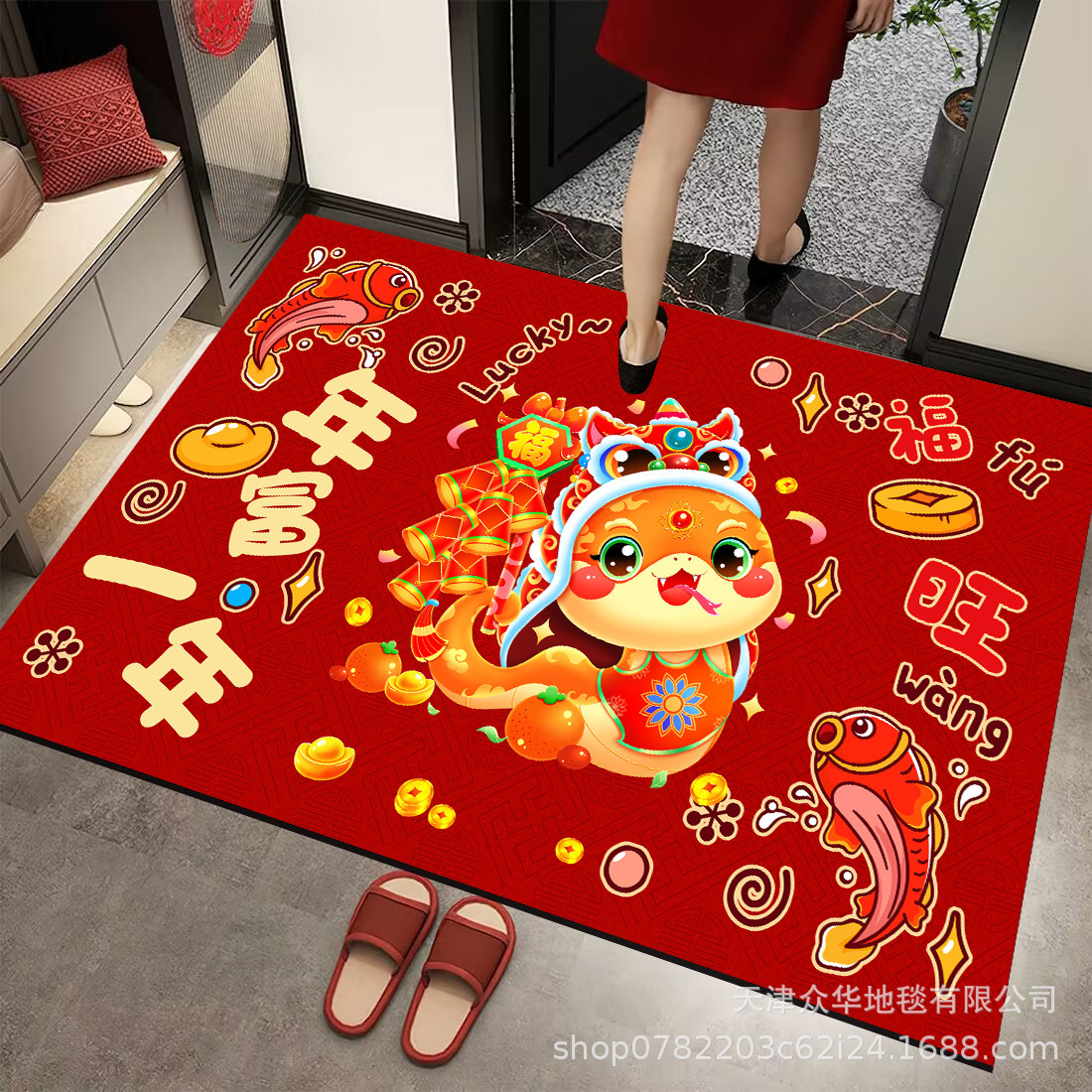 蛇年红门垫2025新年入户门玄关装饰地垫水晶绒公司礼品脚垫加LOGO
