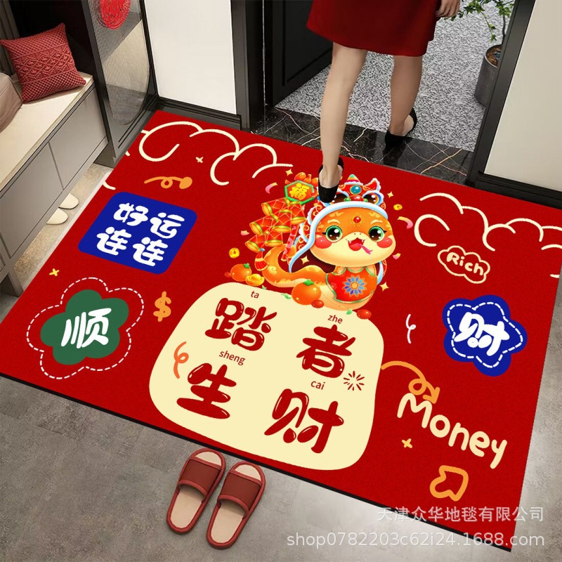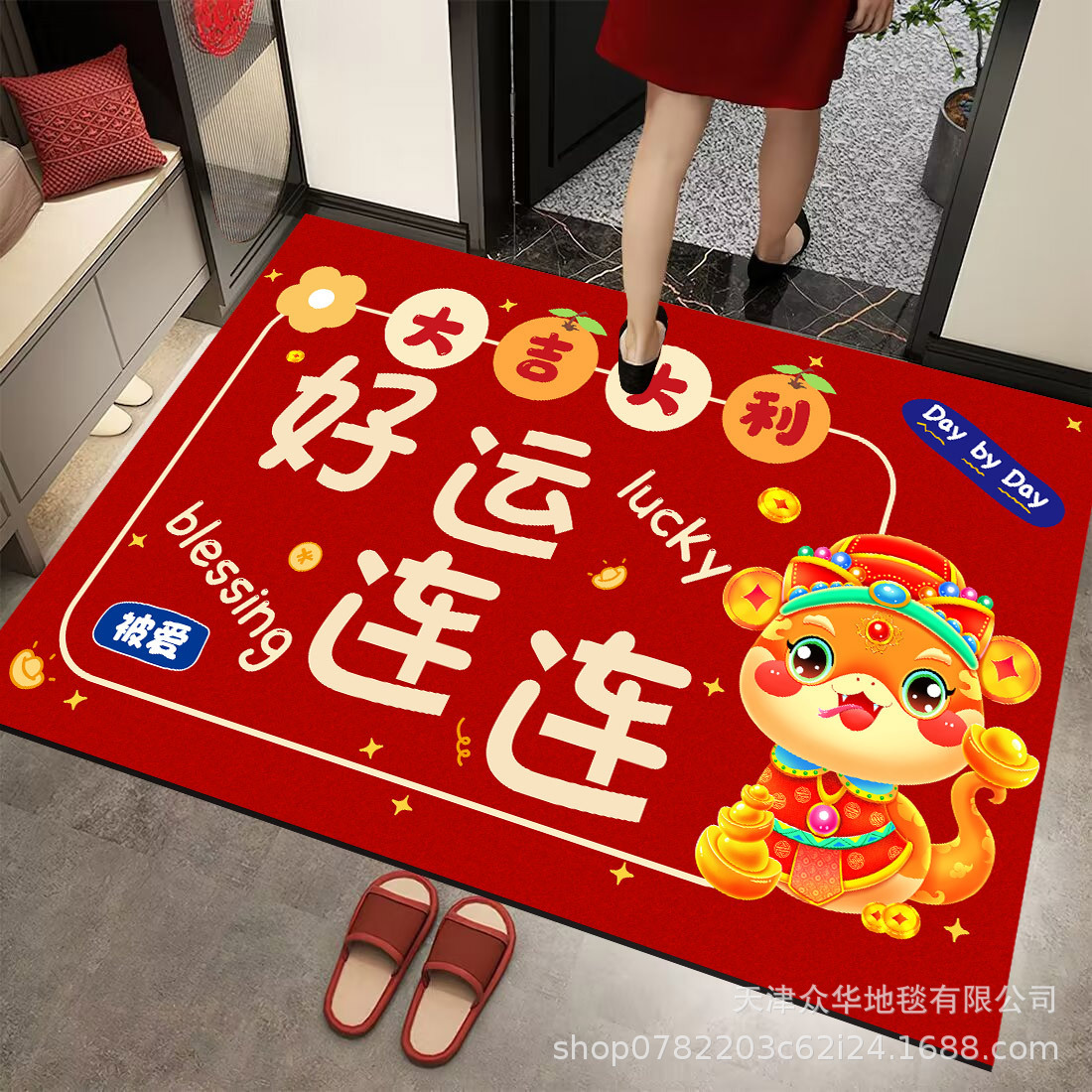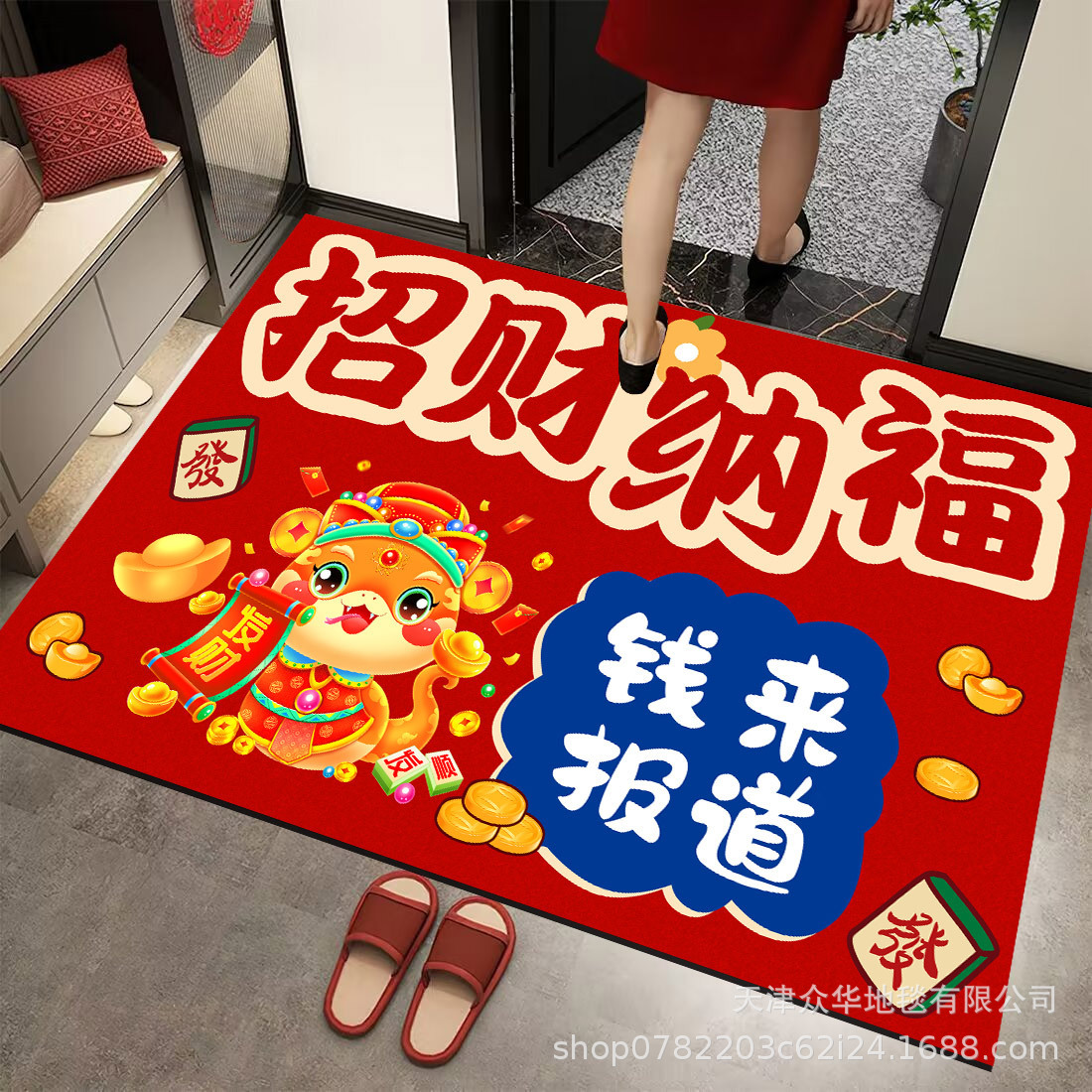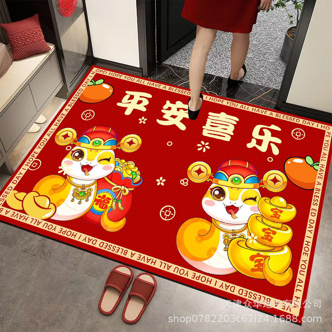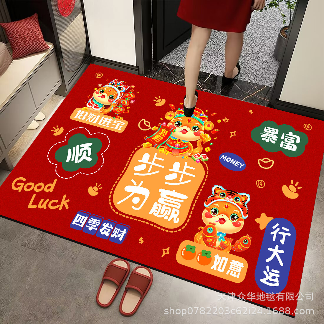 蛇年红门垫2025新年入户门玄关装饰地垫水晶绒公司礼品脚垫加LOGO