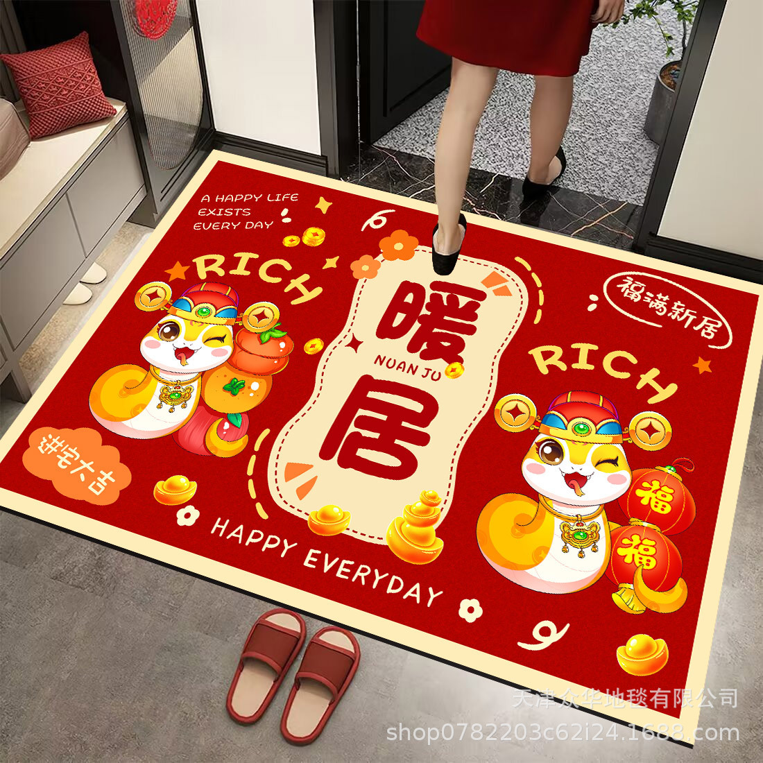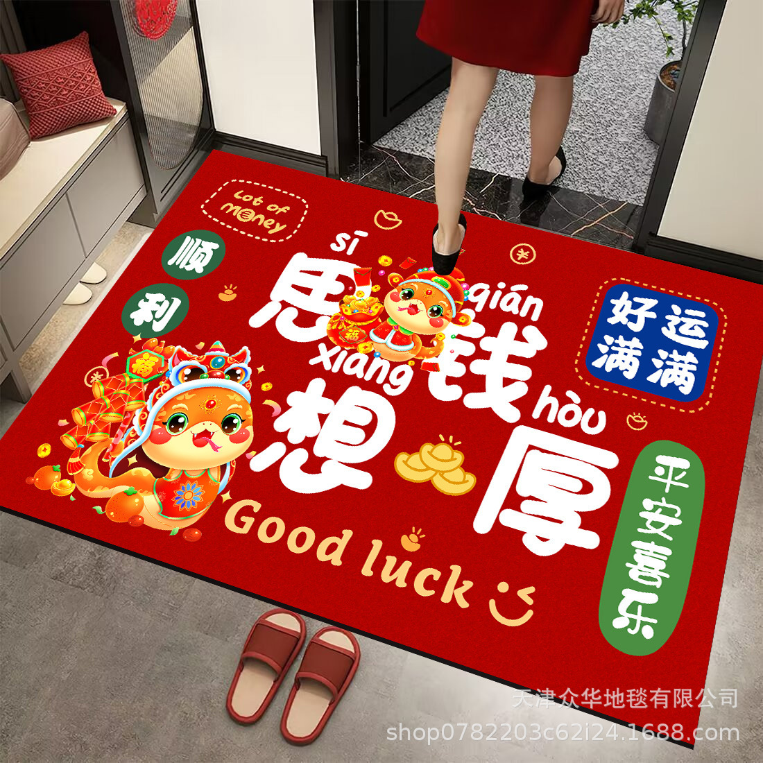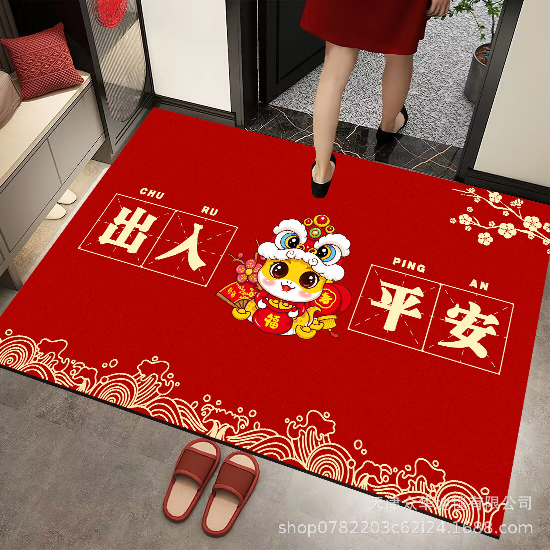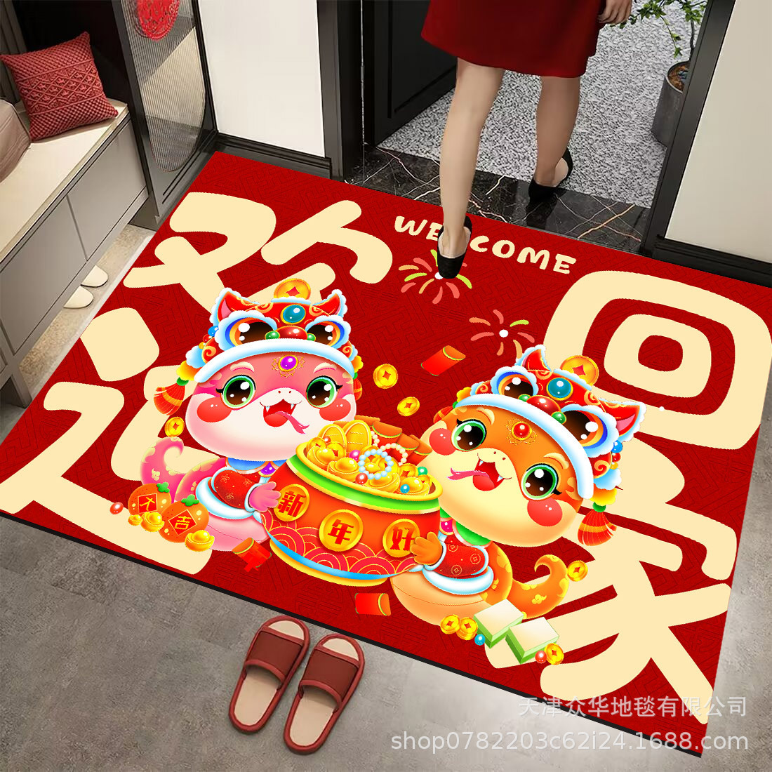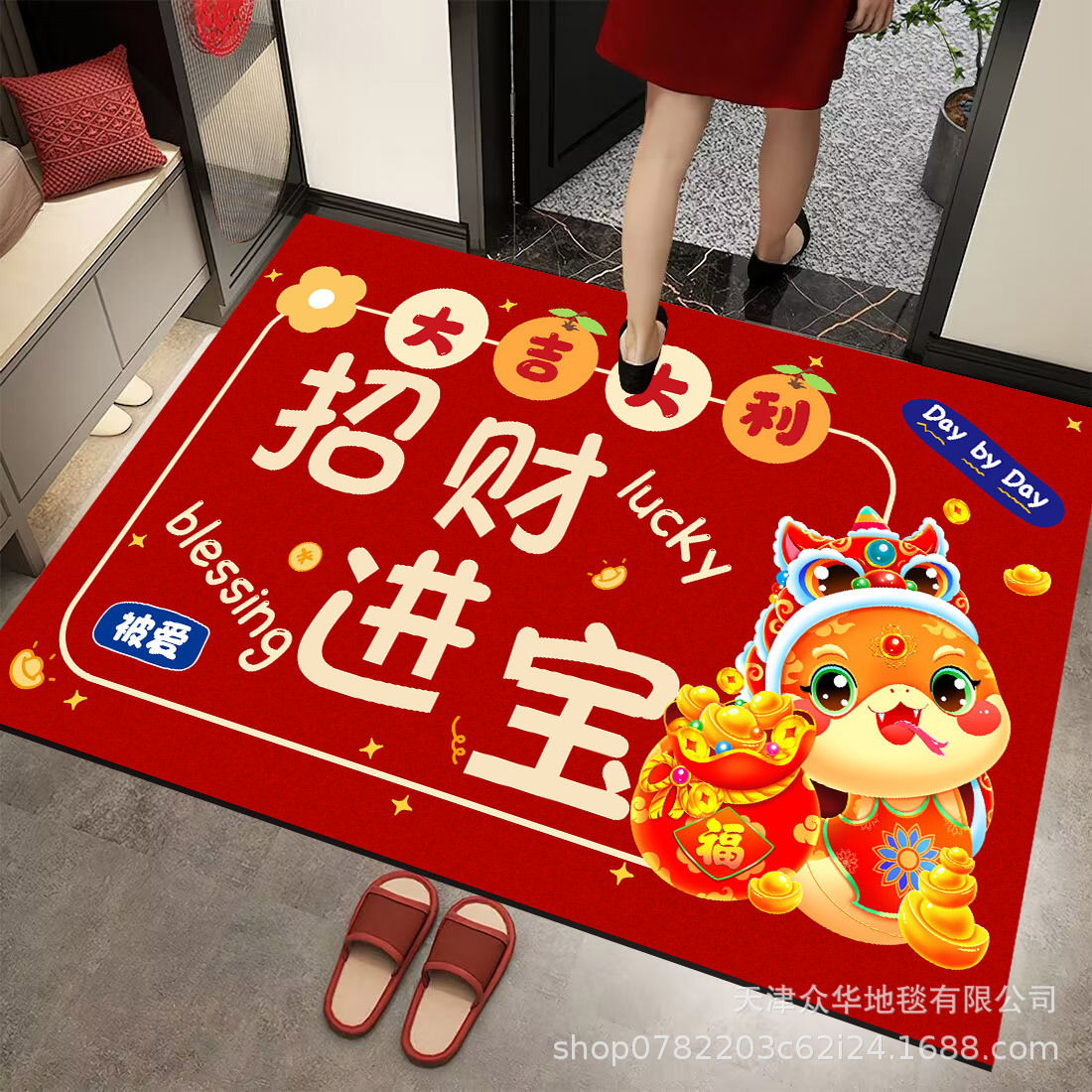 蛇年红门垫2025新年入户门玄关装饰地垫水晶绒公司礼品脚垫加LOGO