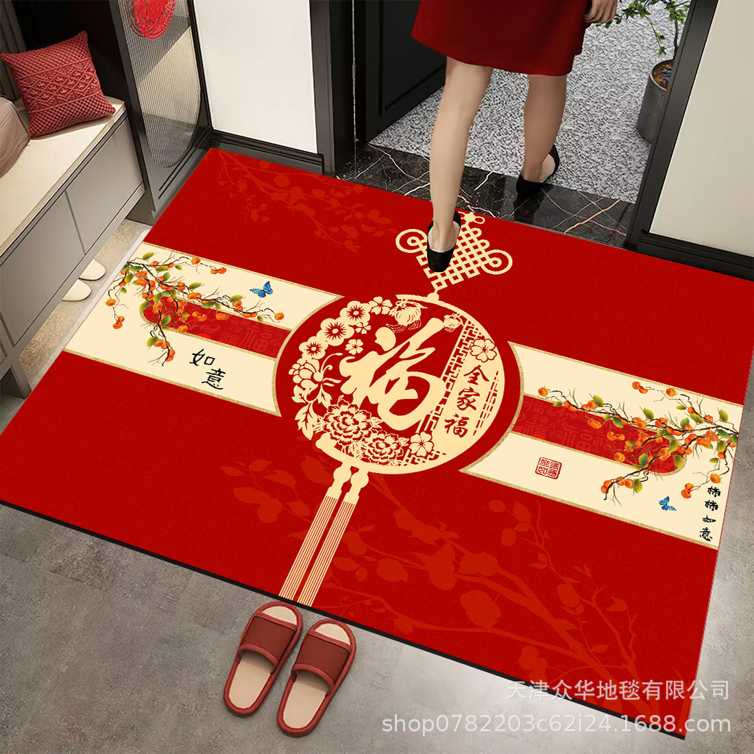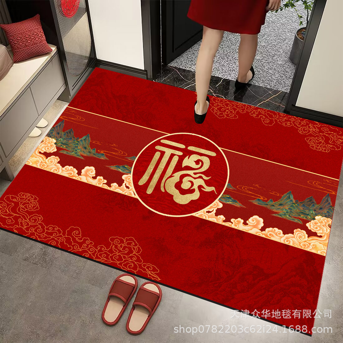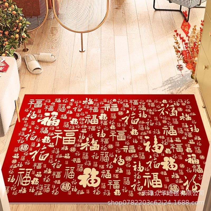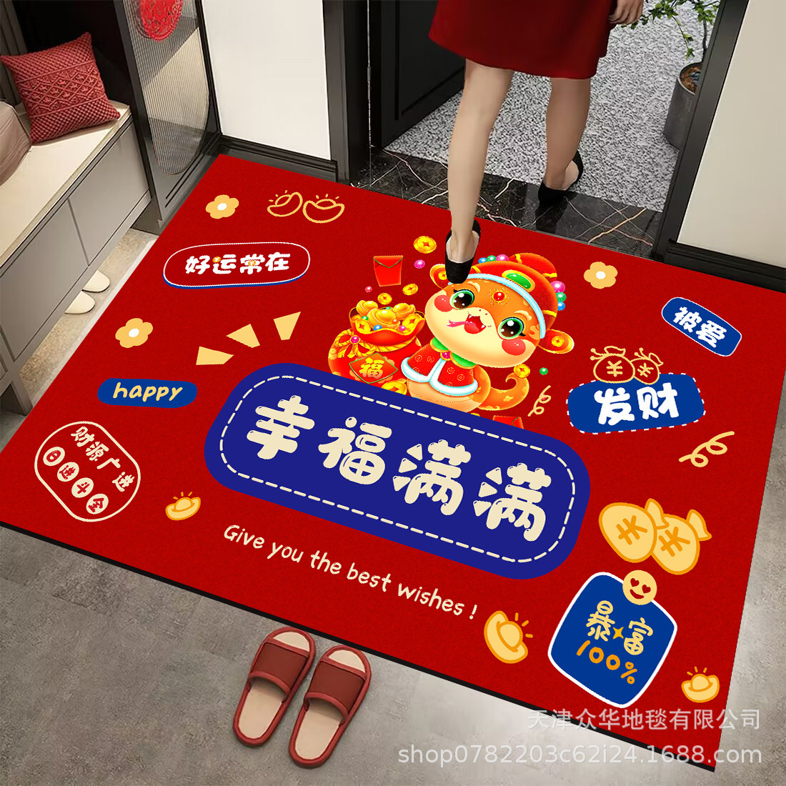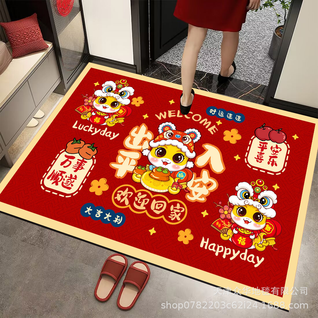 蛇年红门垫2025新年入户门玄关装饰地垫水晶绒公司礼品脚垫加LOGO