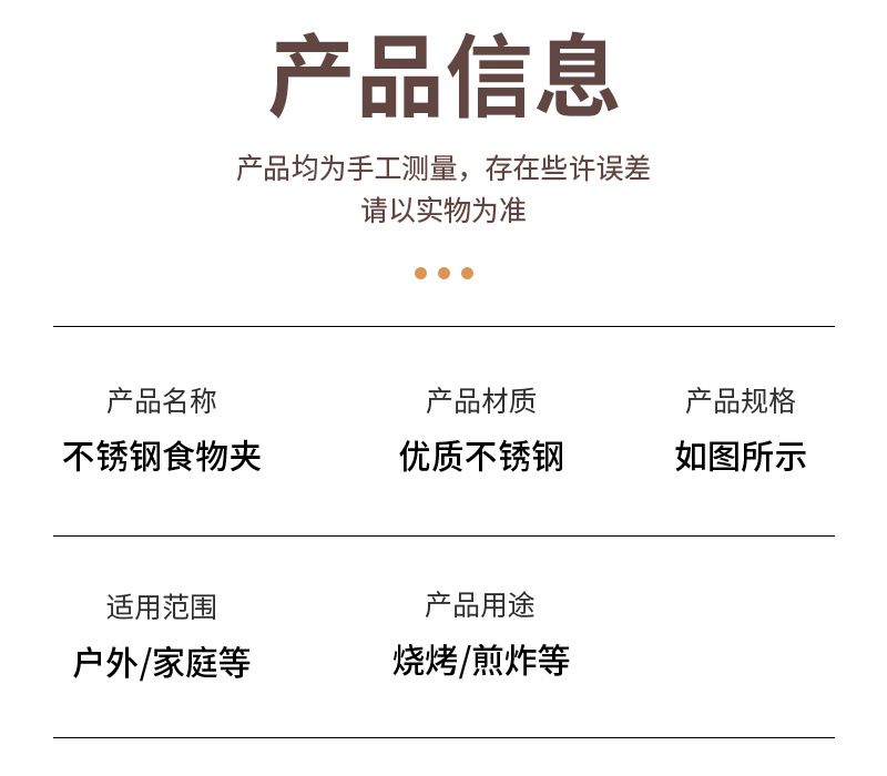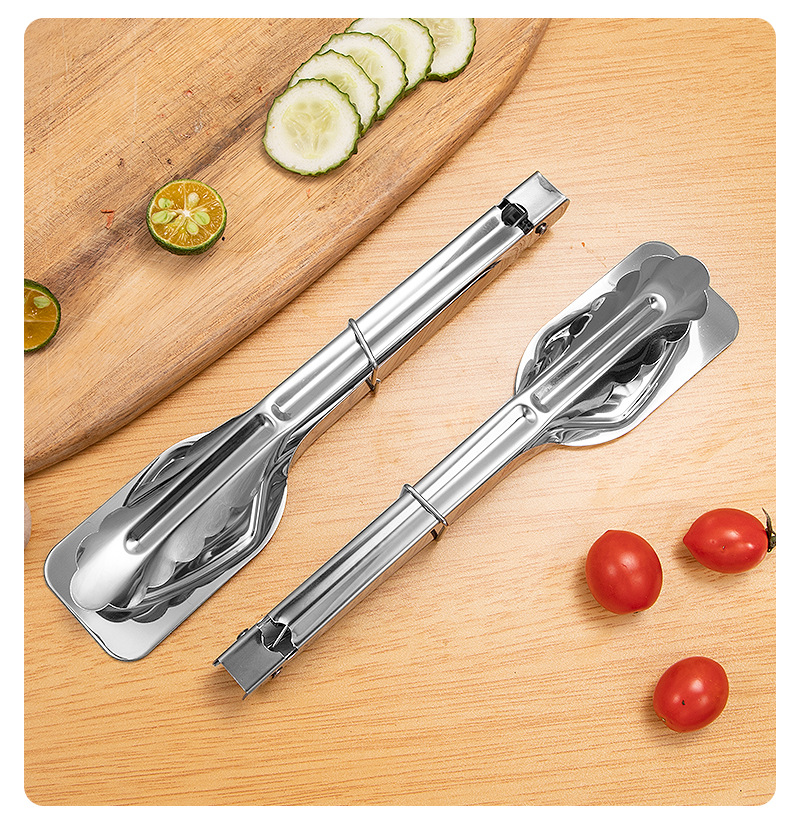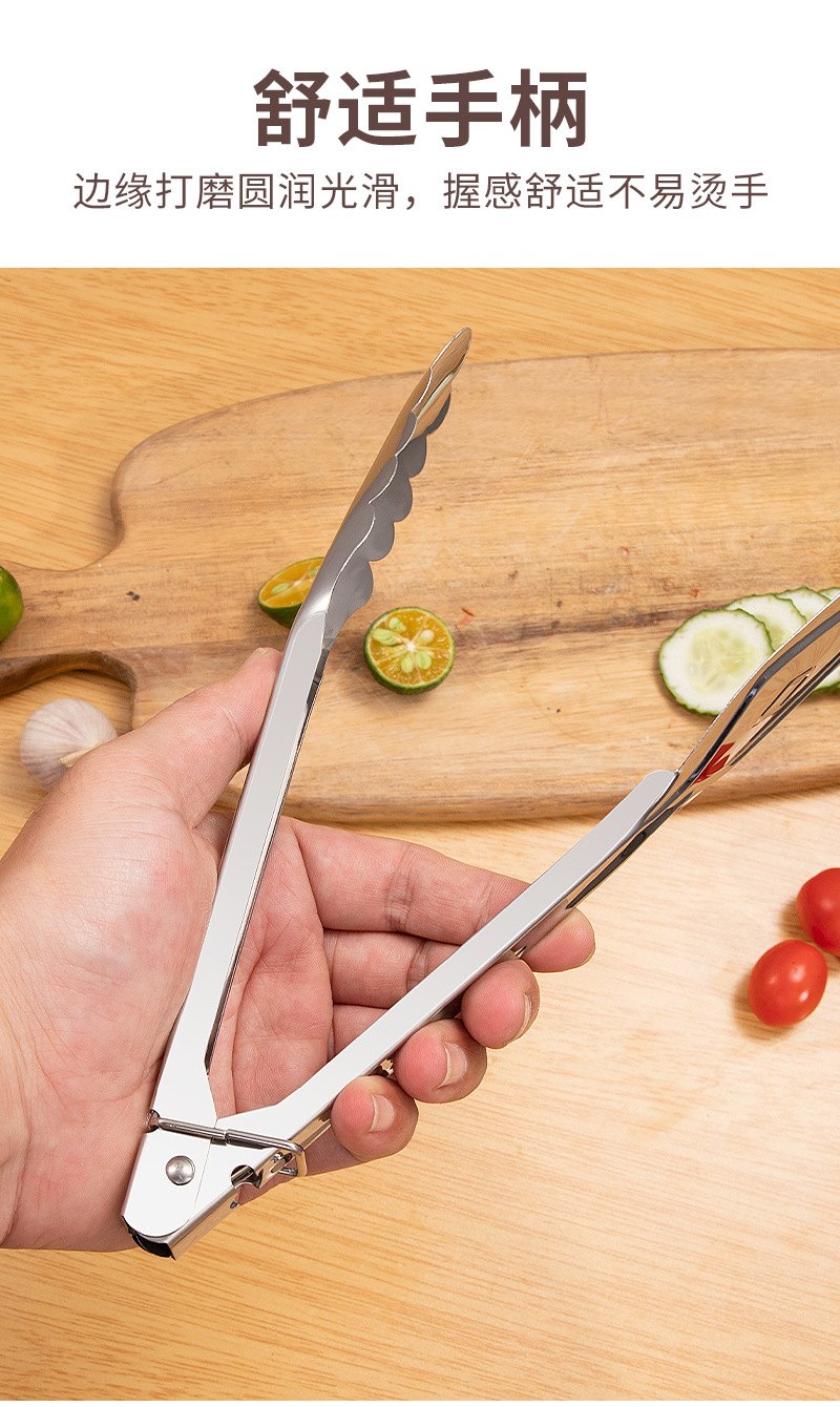 不锈钢食品夹子厨房烤肉烧烤煎牛排家用防烫面包食物夹9寸加厚