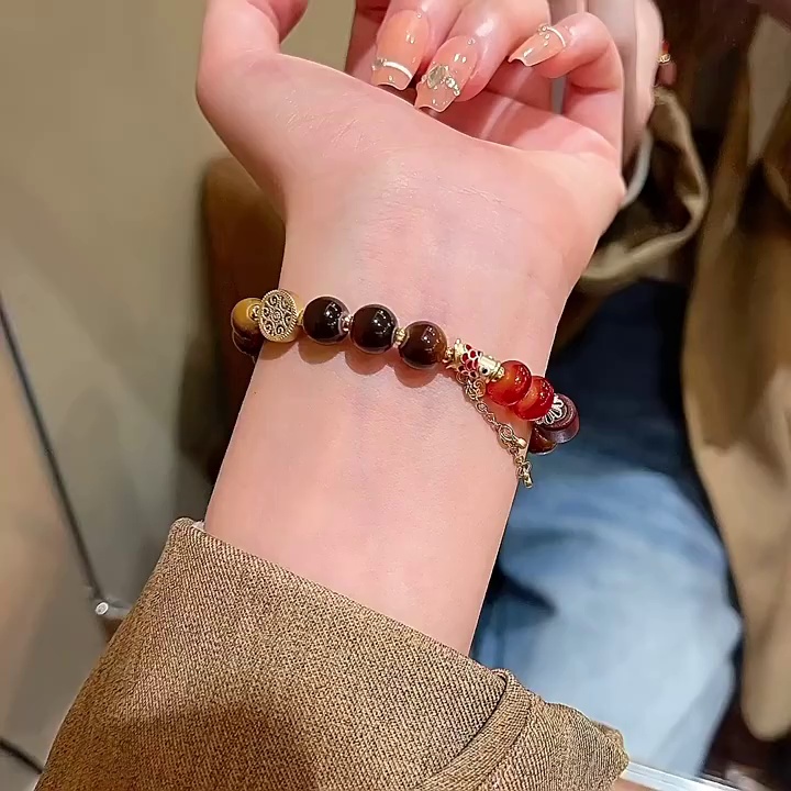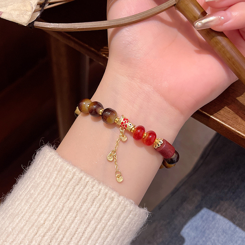 时尚百搭气质水晶手串网红手饰品新中式复古虎眼石串珠手链女批发