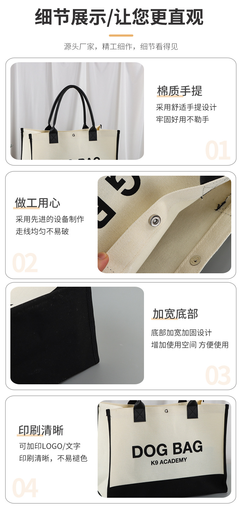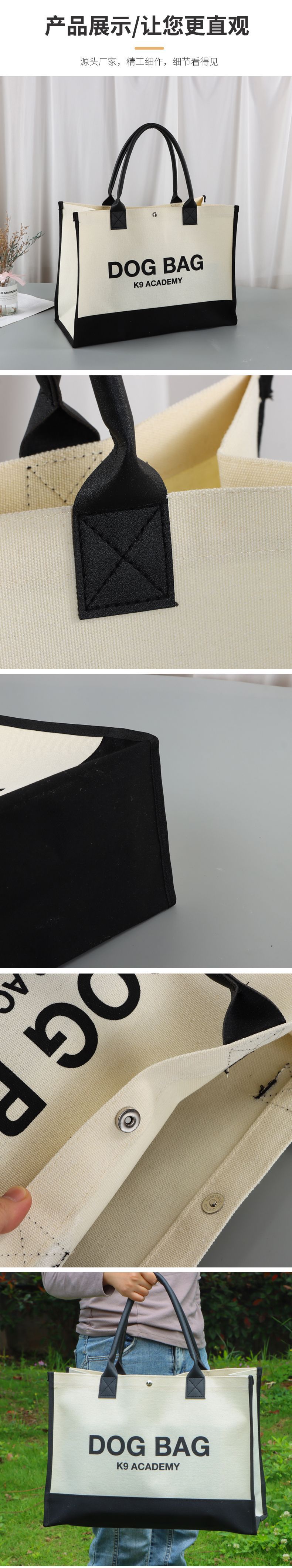 亚马逊热销帆布袋定制logo广告立体帆布托特包个性数字覆膜购物袋