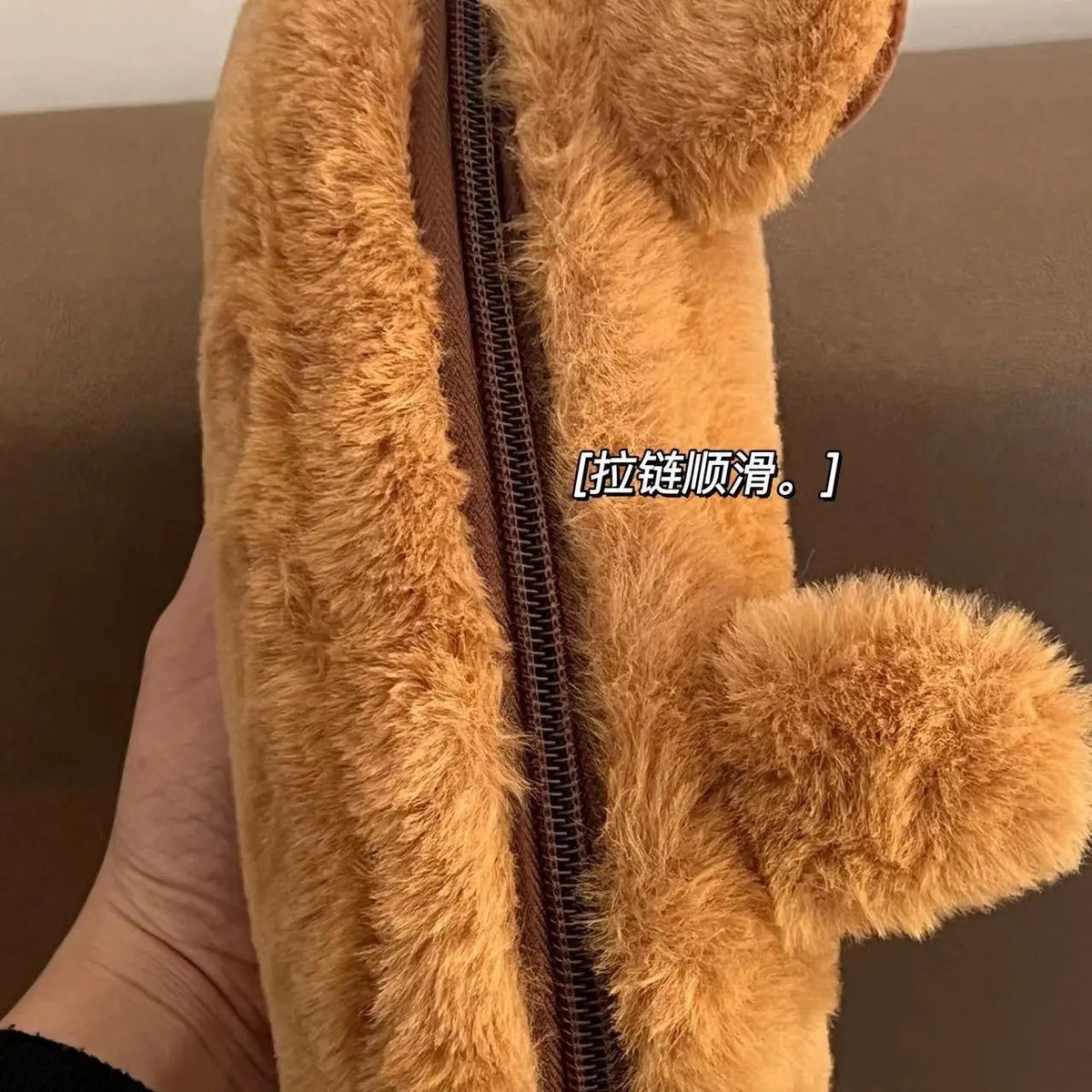 小红书卡皮巴拉毛绒笔袋大容量学生卡通收纳袋桌面整理多功能笔袋