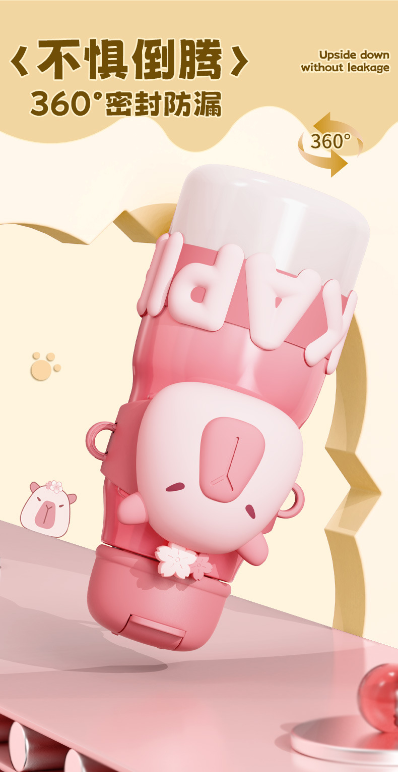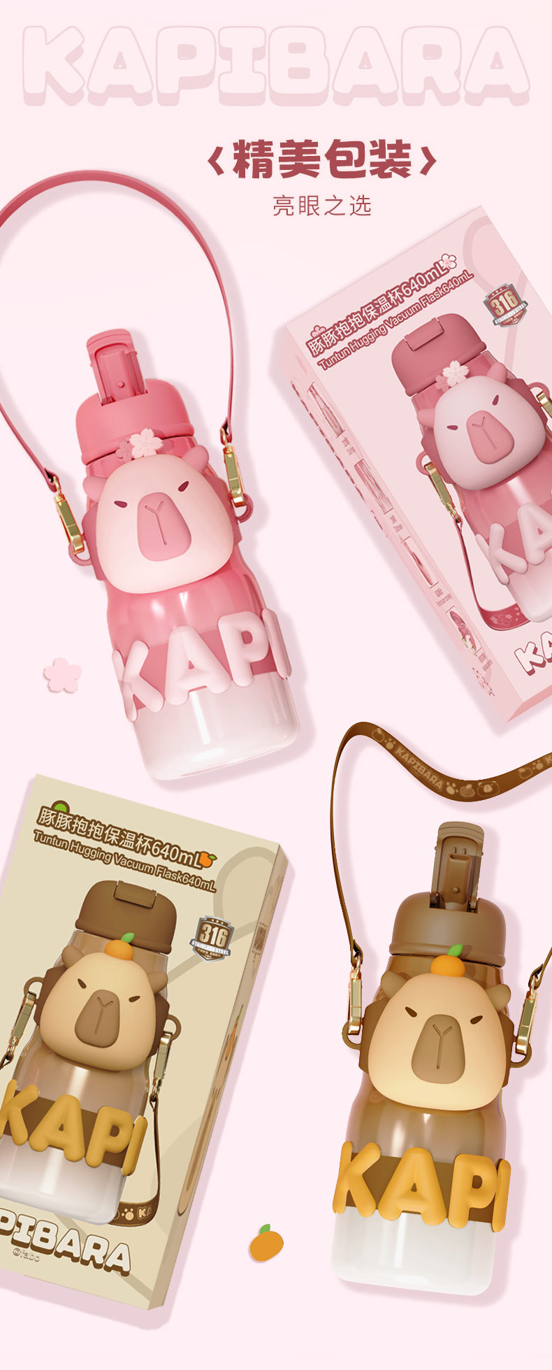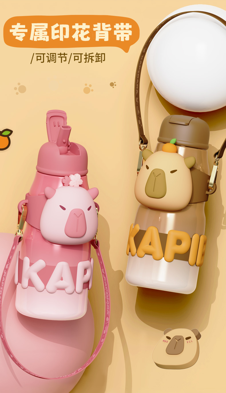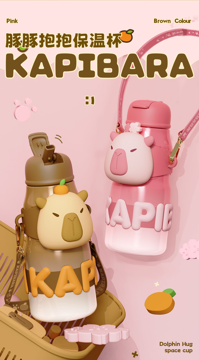 艾可思新款卡皮巴拉豚豚保温杯可爱高颜值女生儿童专用吸管水杯子