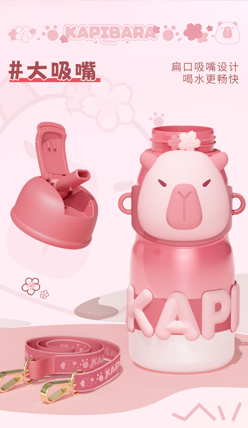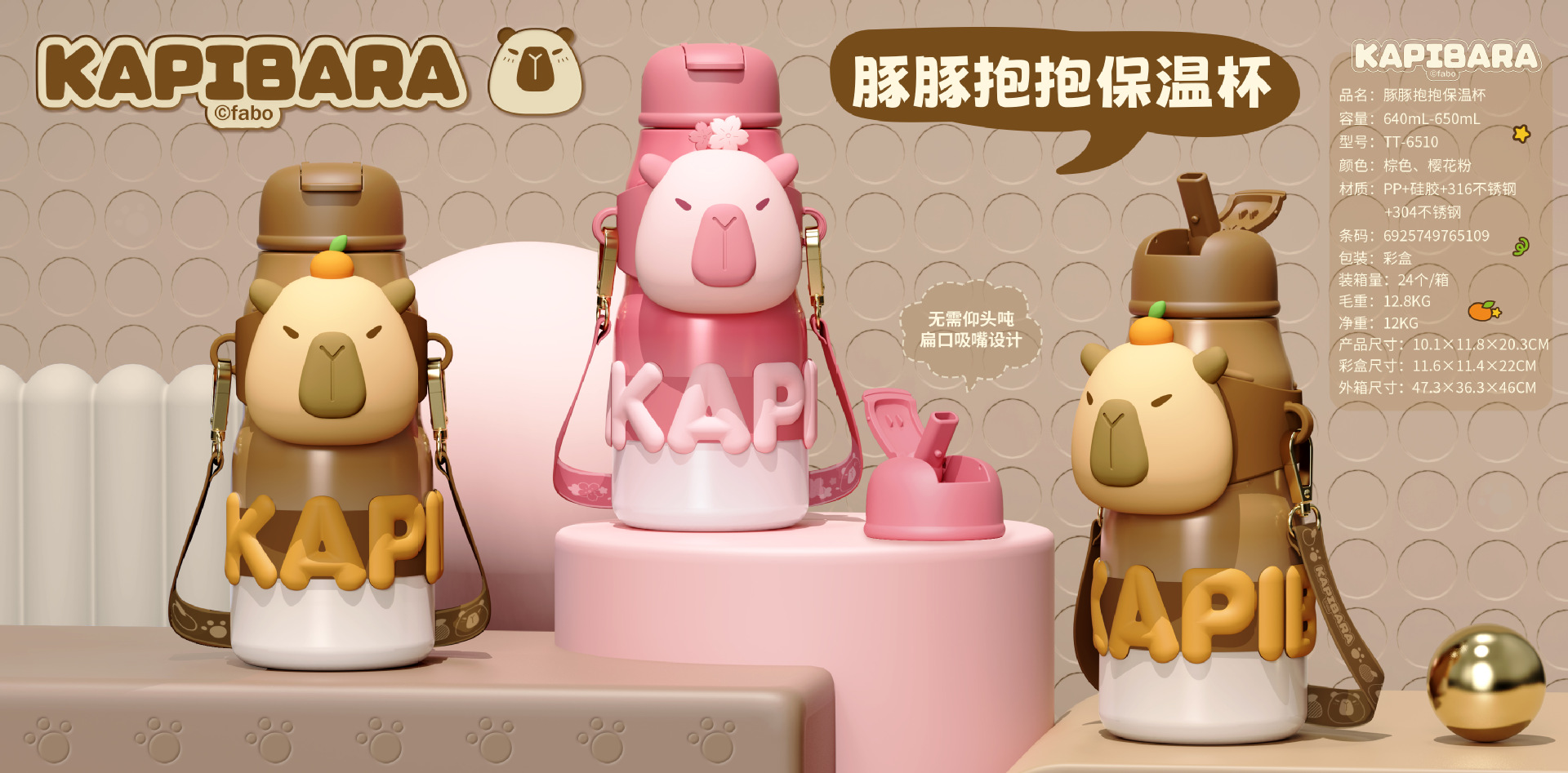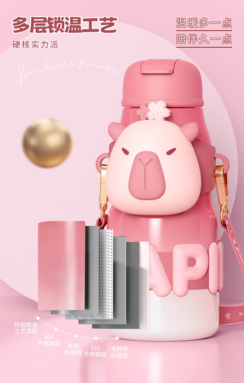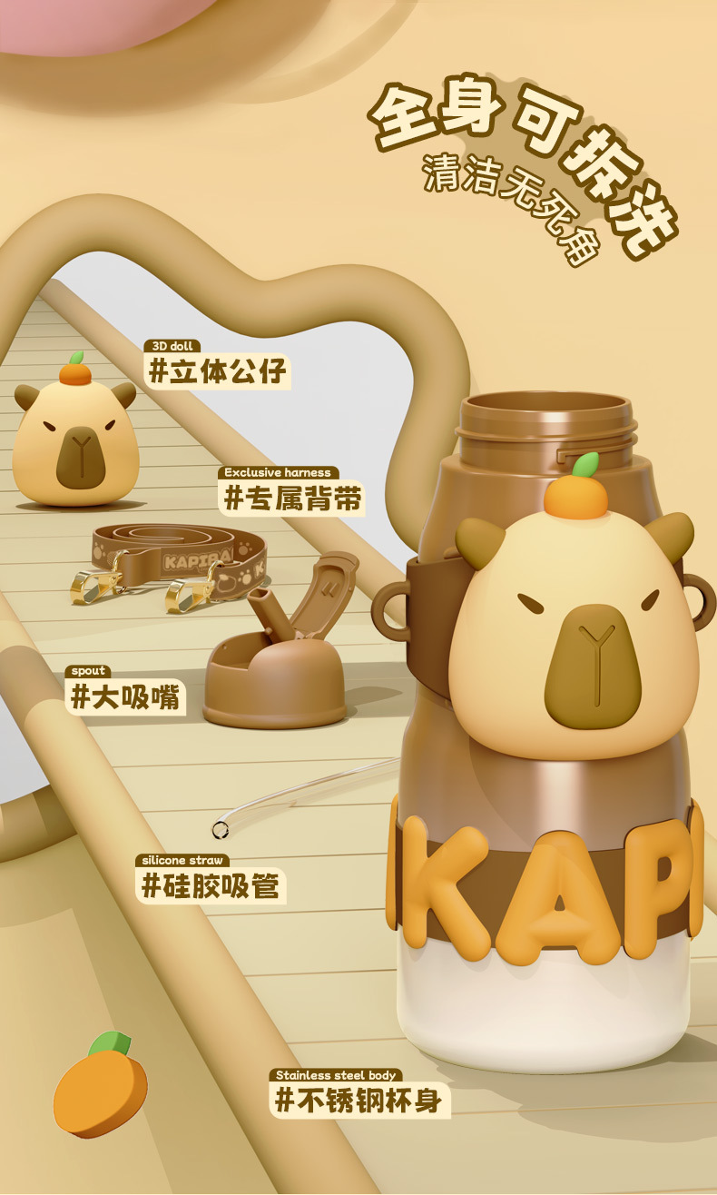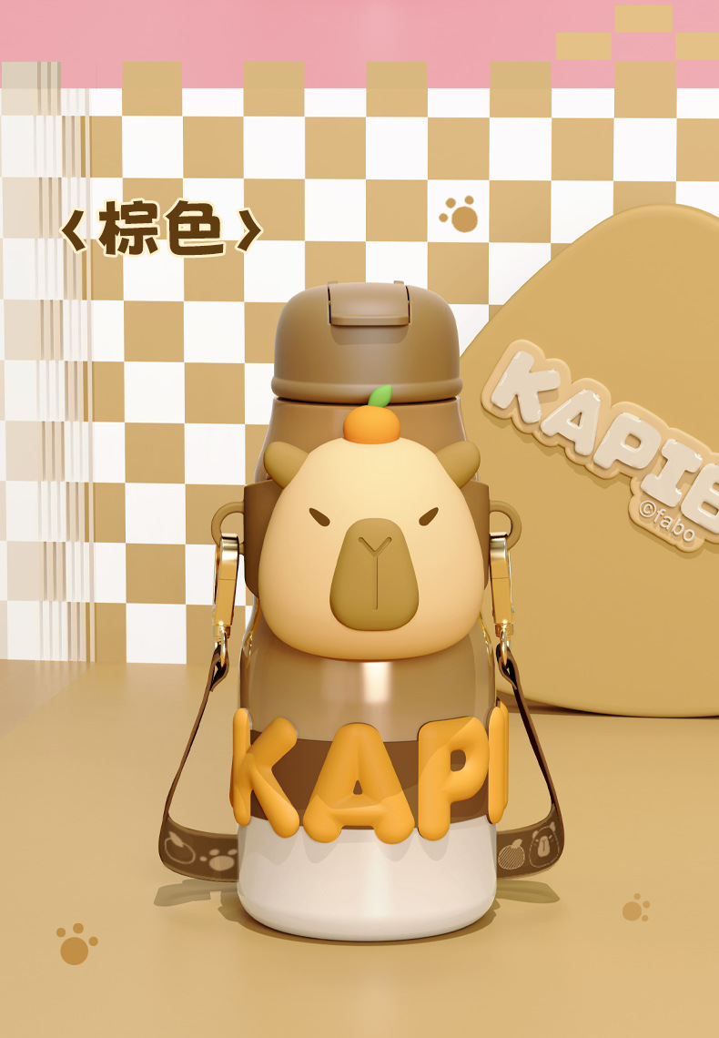 艾可思新款卡皮巴拉豚豚保温杯可爱高颜值女生儿童专用吸管水杯子