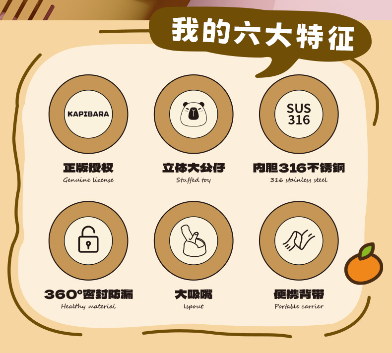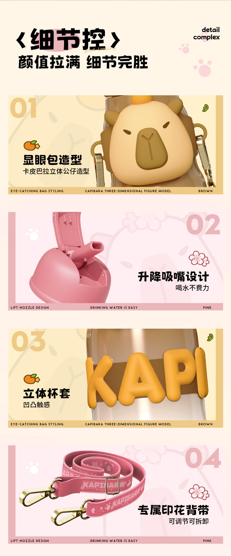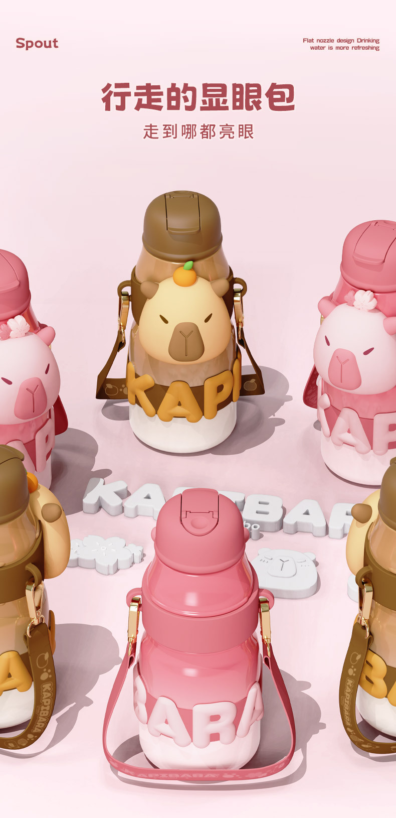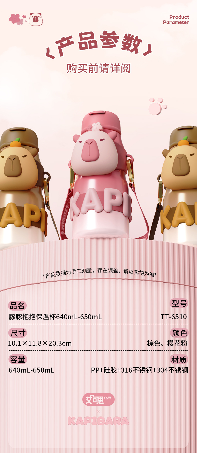 艾可思新款卡皮巴拉豚豚保温杯可爱高颜值女生儿童专用吸管水杯子