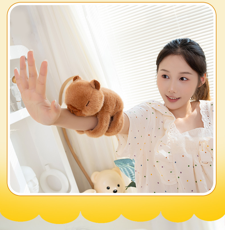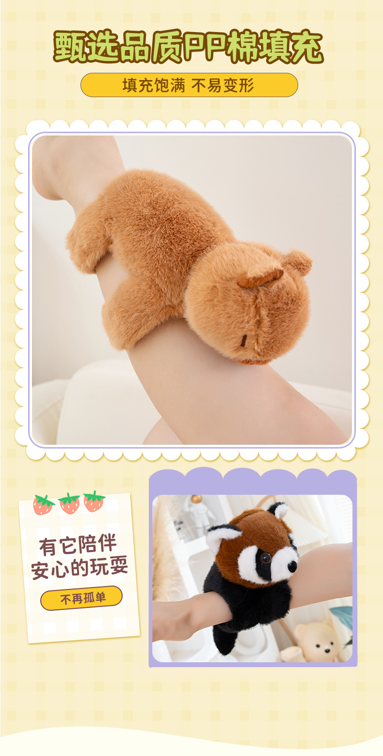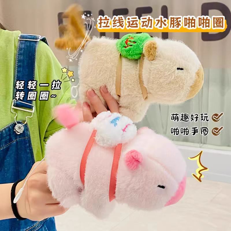 卡皮巴拉毛绒公仔啪啪圈摇尾巴丑萌水豚粉色小动物手环配饰纪念品