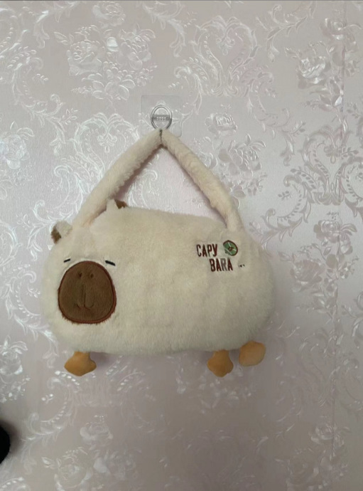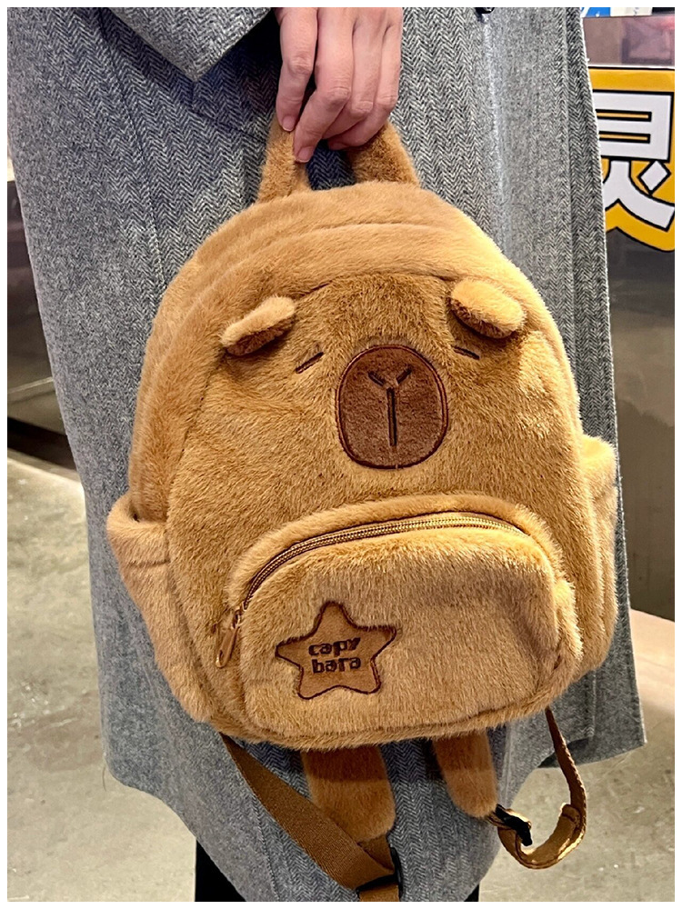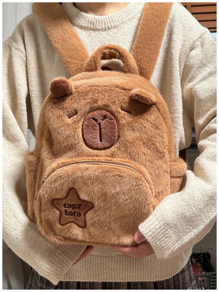 2024新款卡皮巴拉毛绒水豚双肩包可爱百搭毛毛包女卡通学生小背包