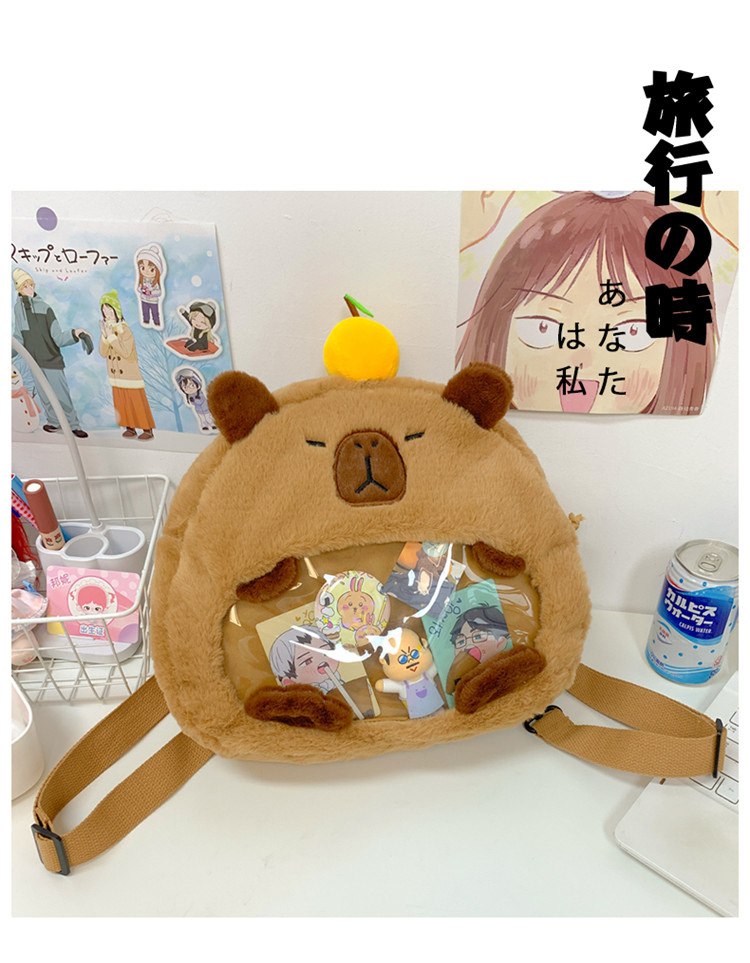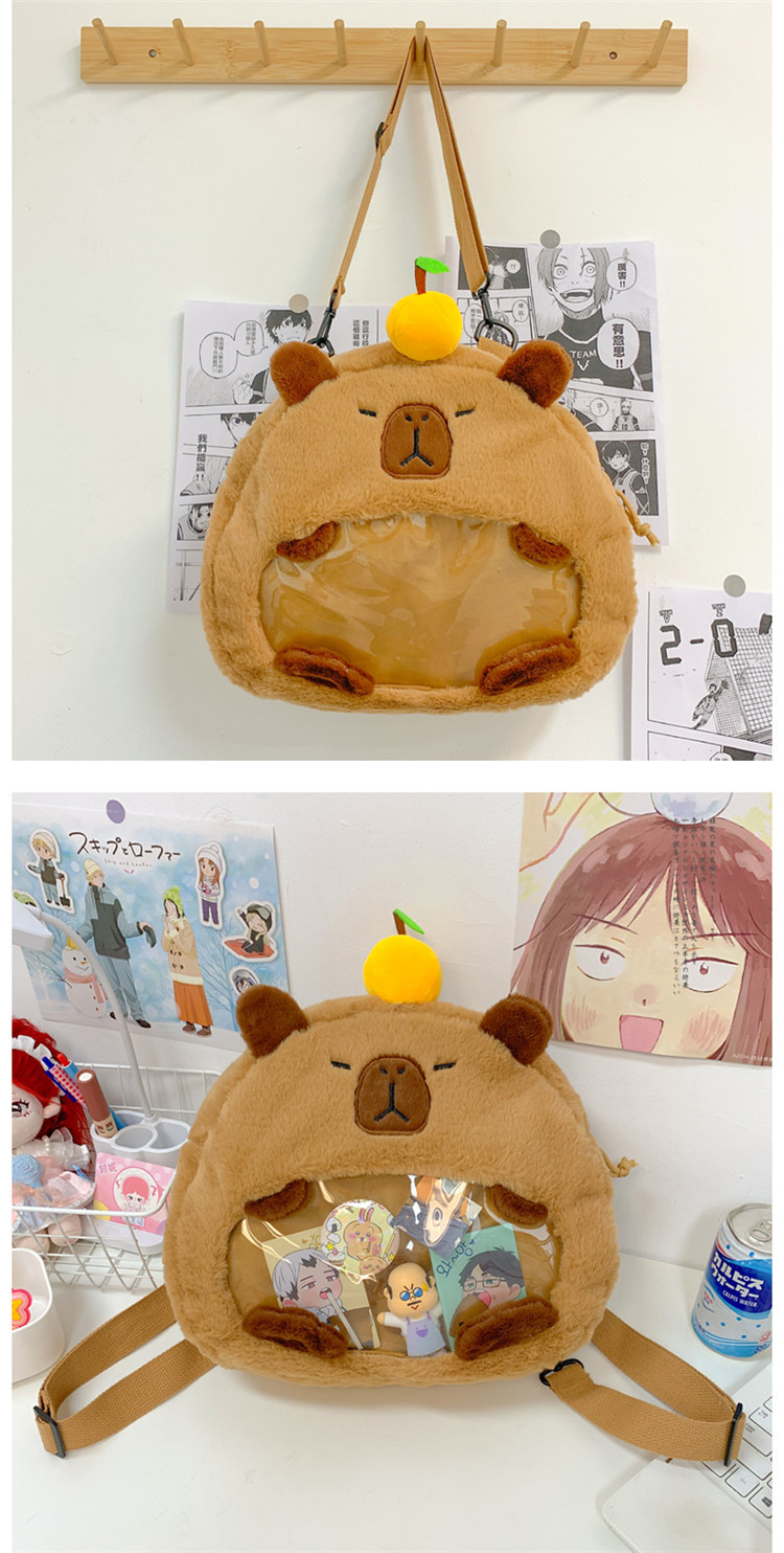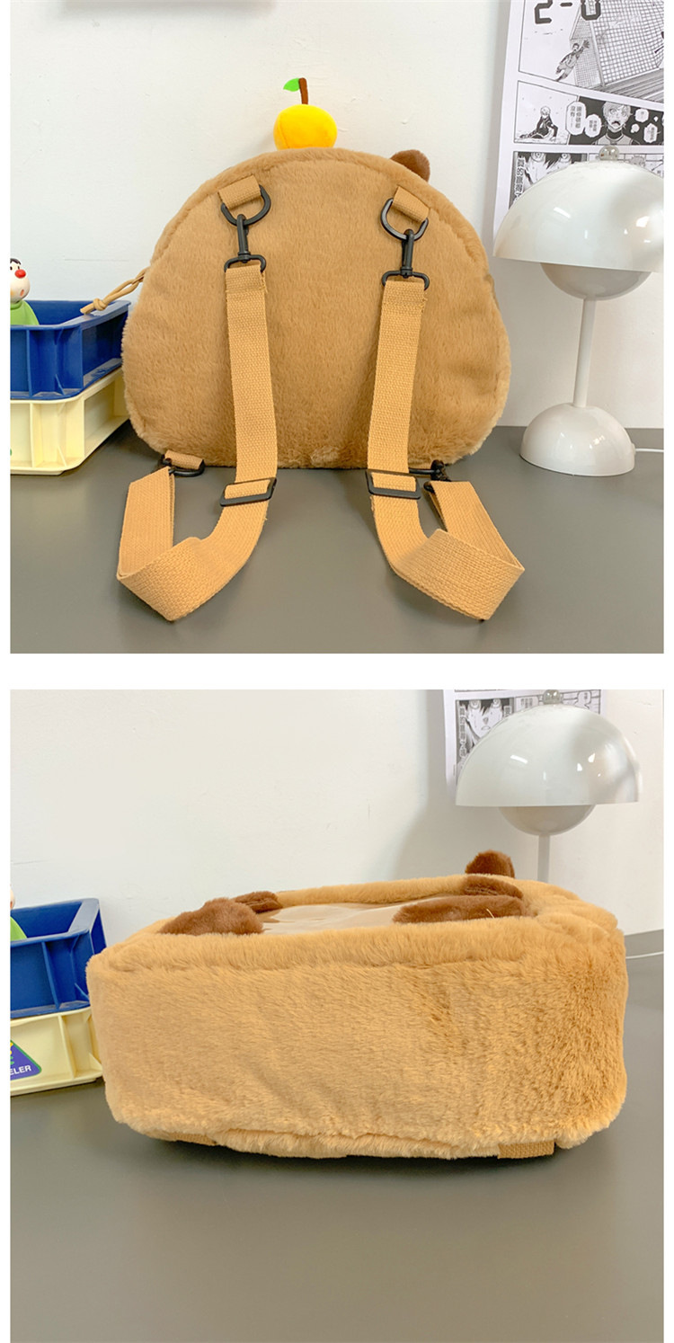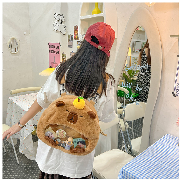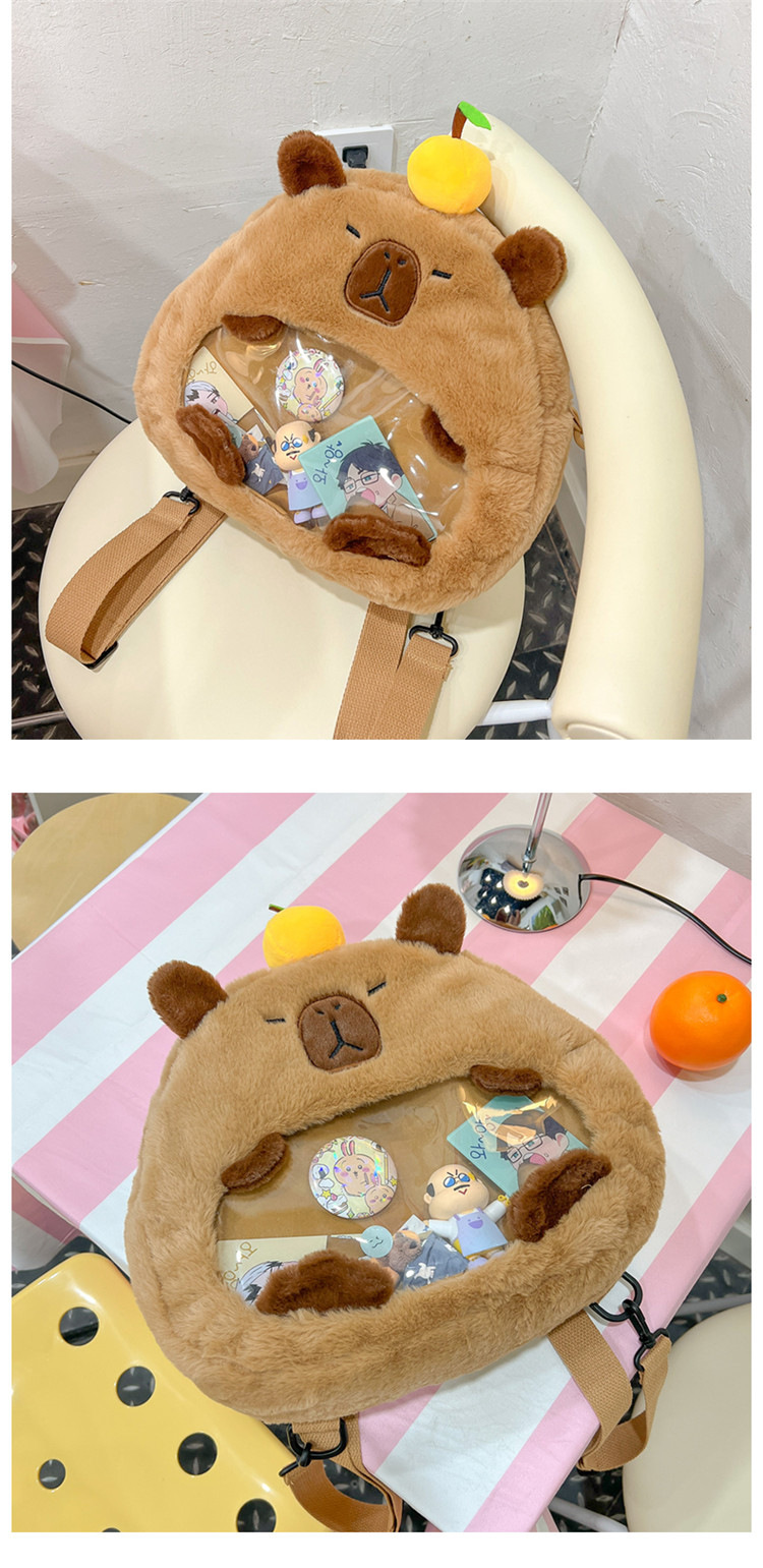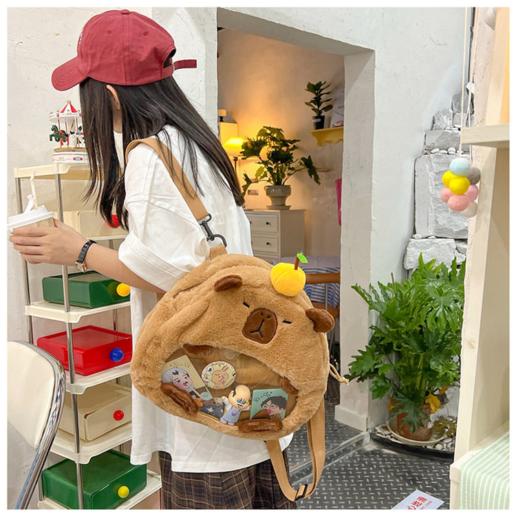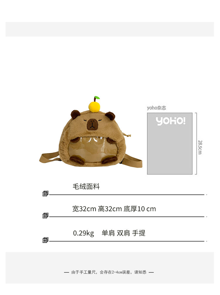 as2024卡皮巴拉单肩包可爱水豚包包毛绒玩偶书包个性毛绒玩具包