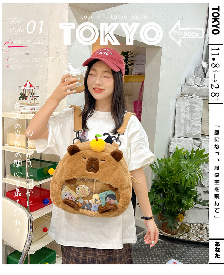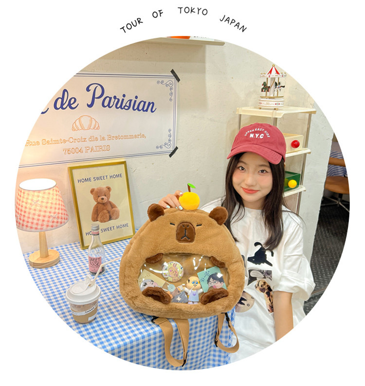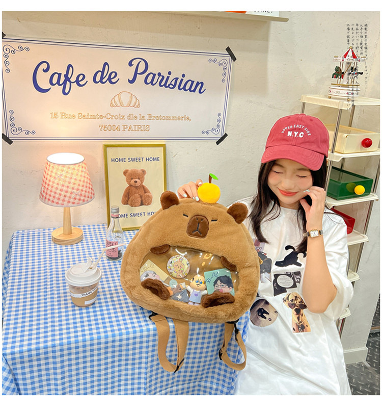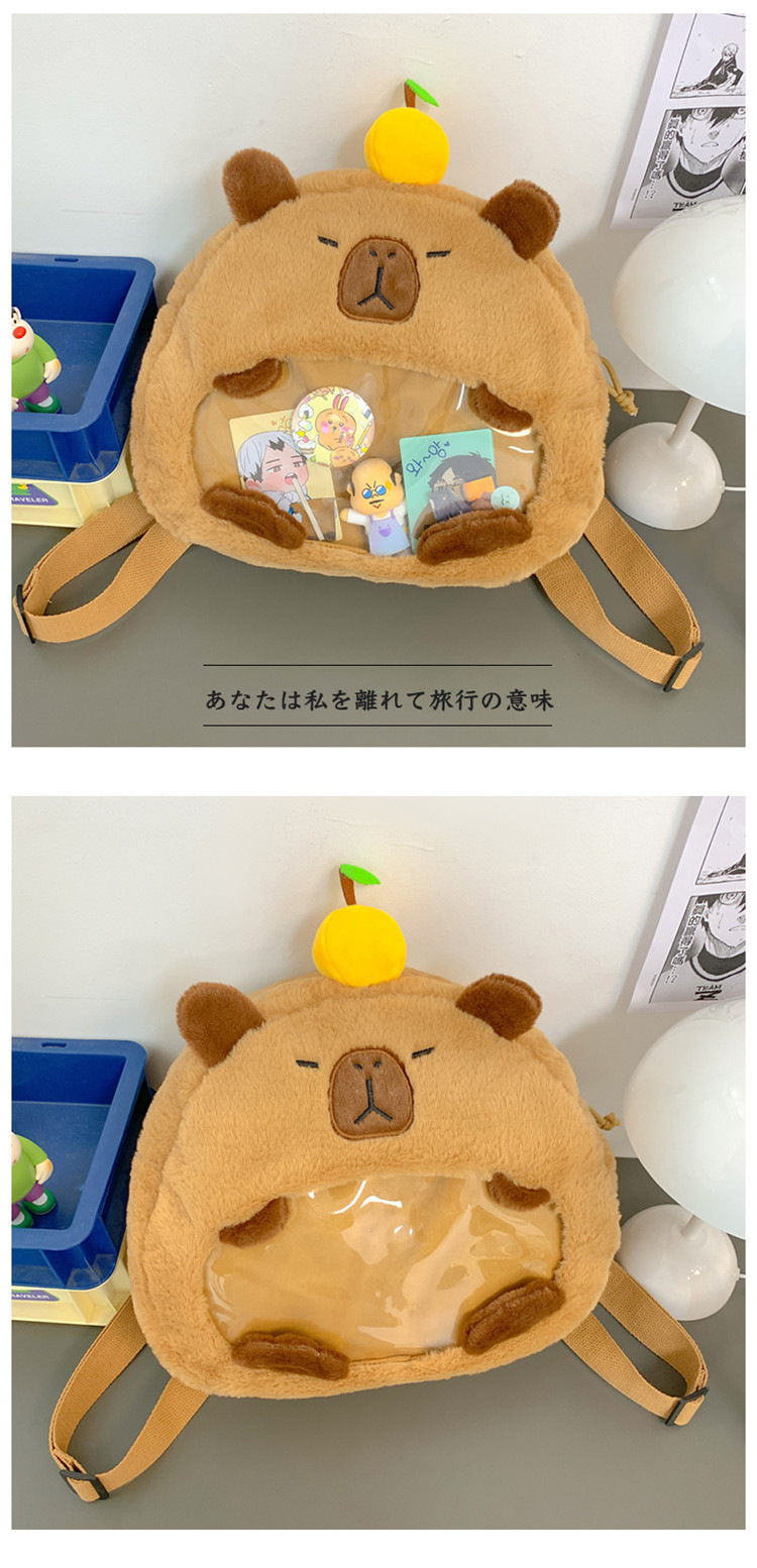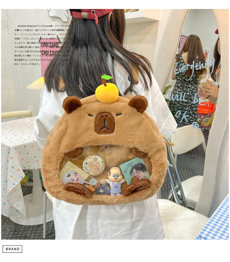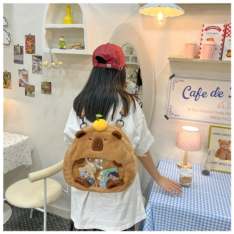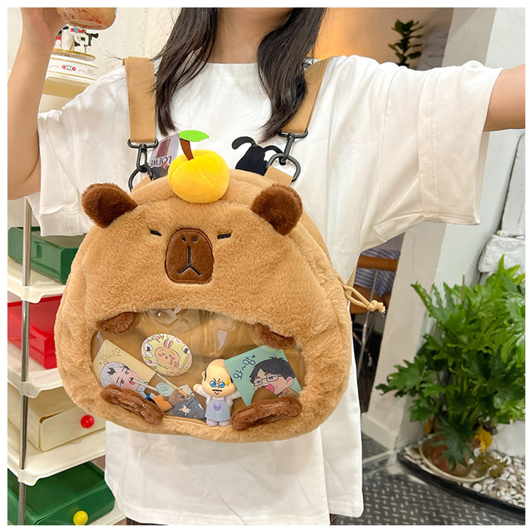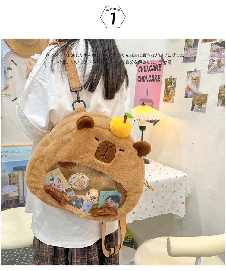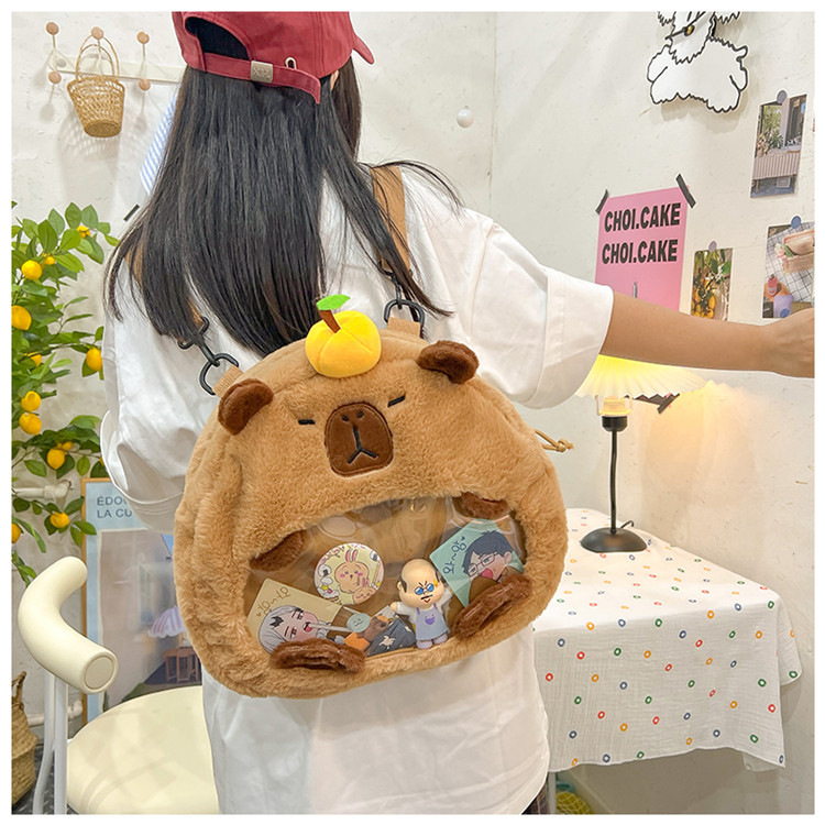 as2024卡皮巴拉单肩包可爱水豚包包毛绒玩偶书包个性毛绒玩具包
