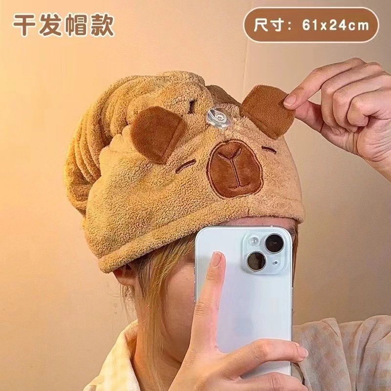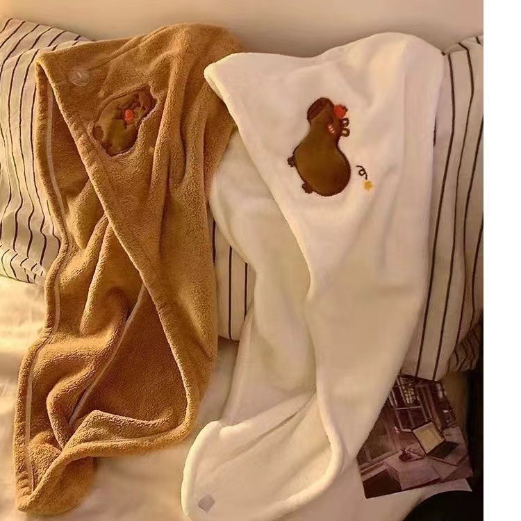 新款卡皮巴拉加厚可爱卡通珊瑚毛巾浴巾干发帽速吸水柔软洗头毛巾