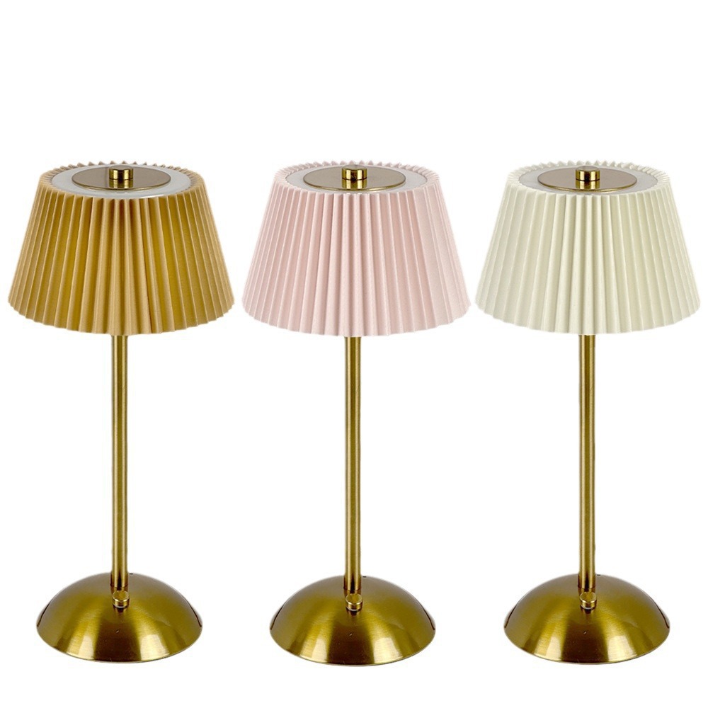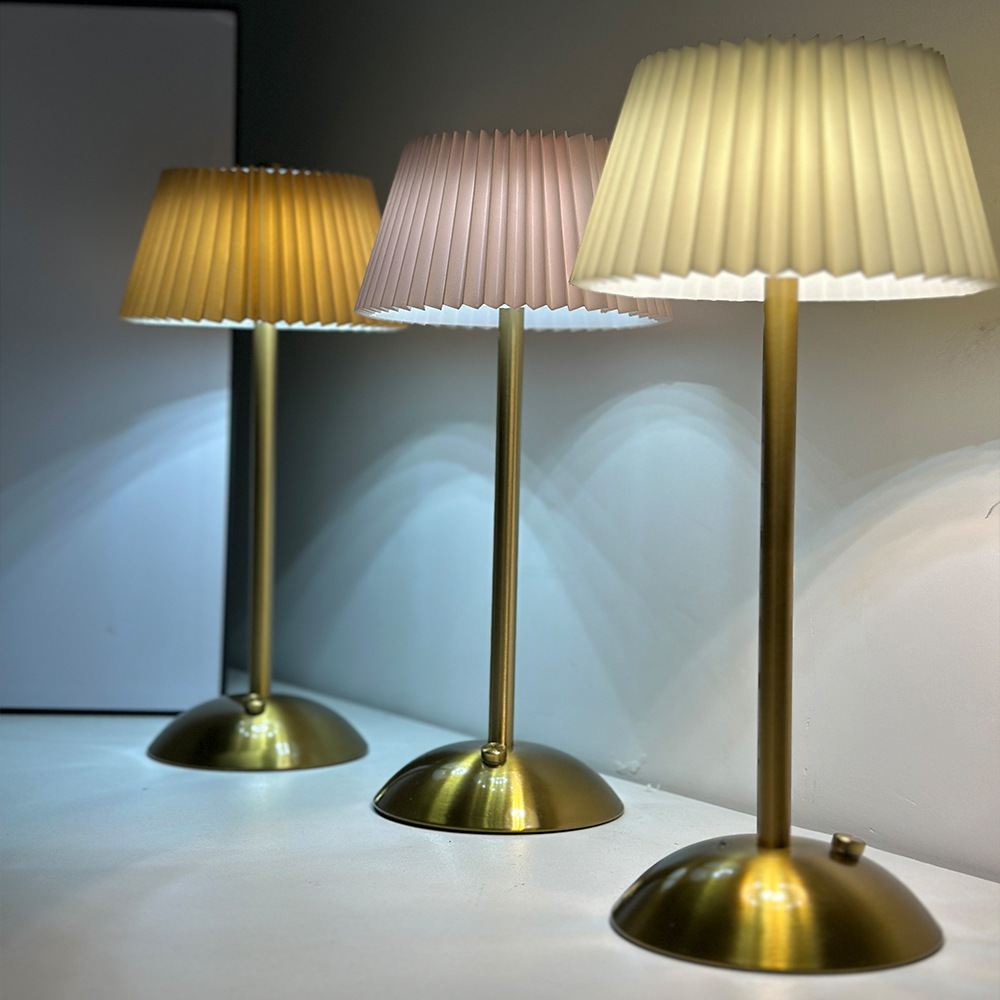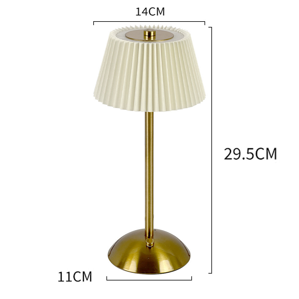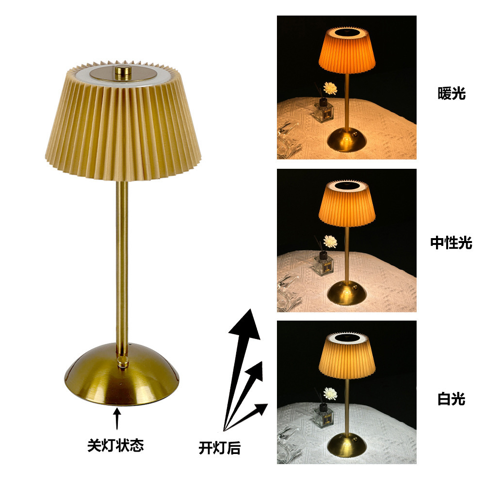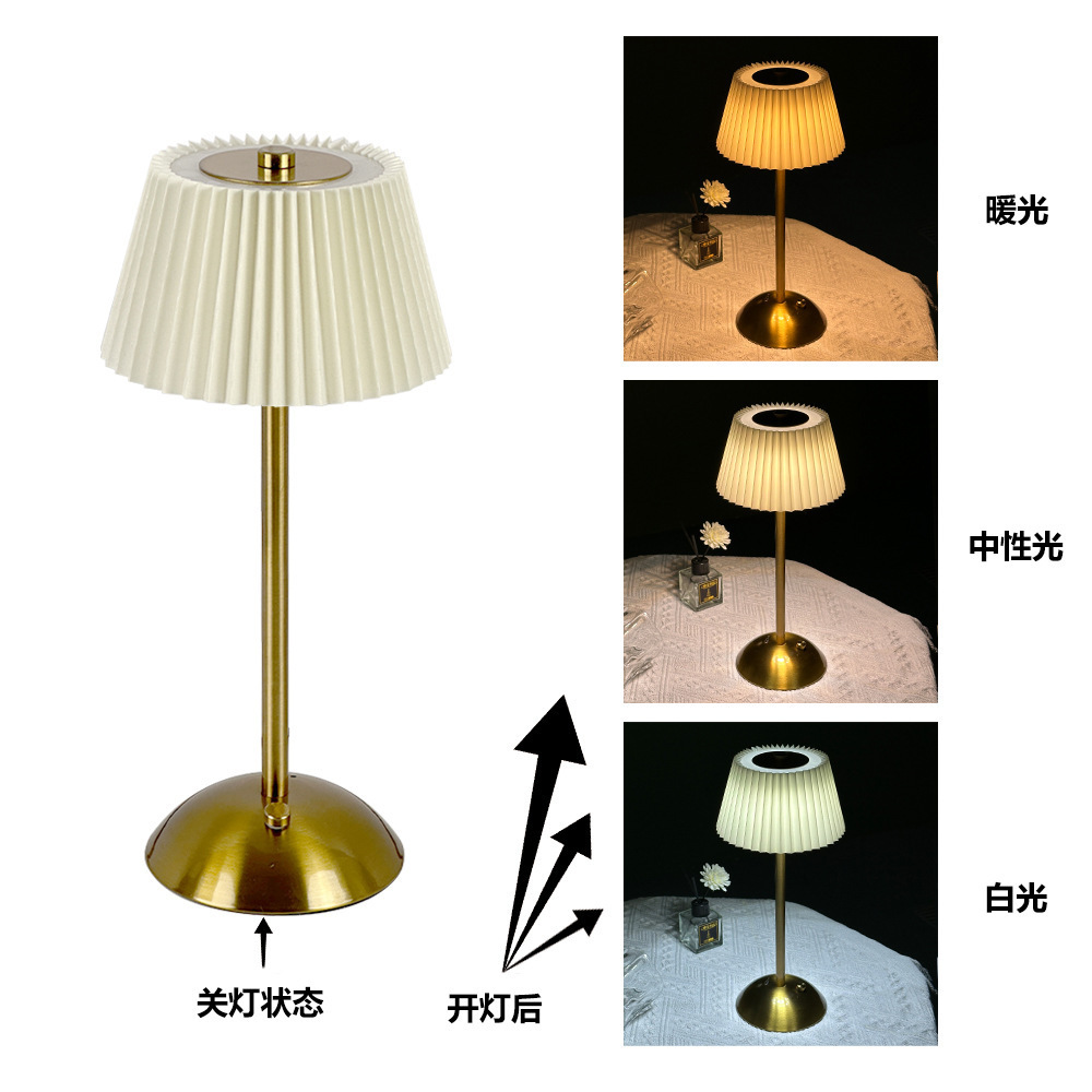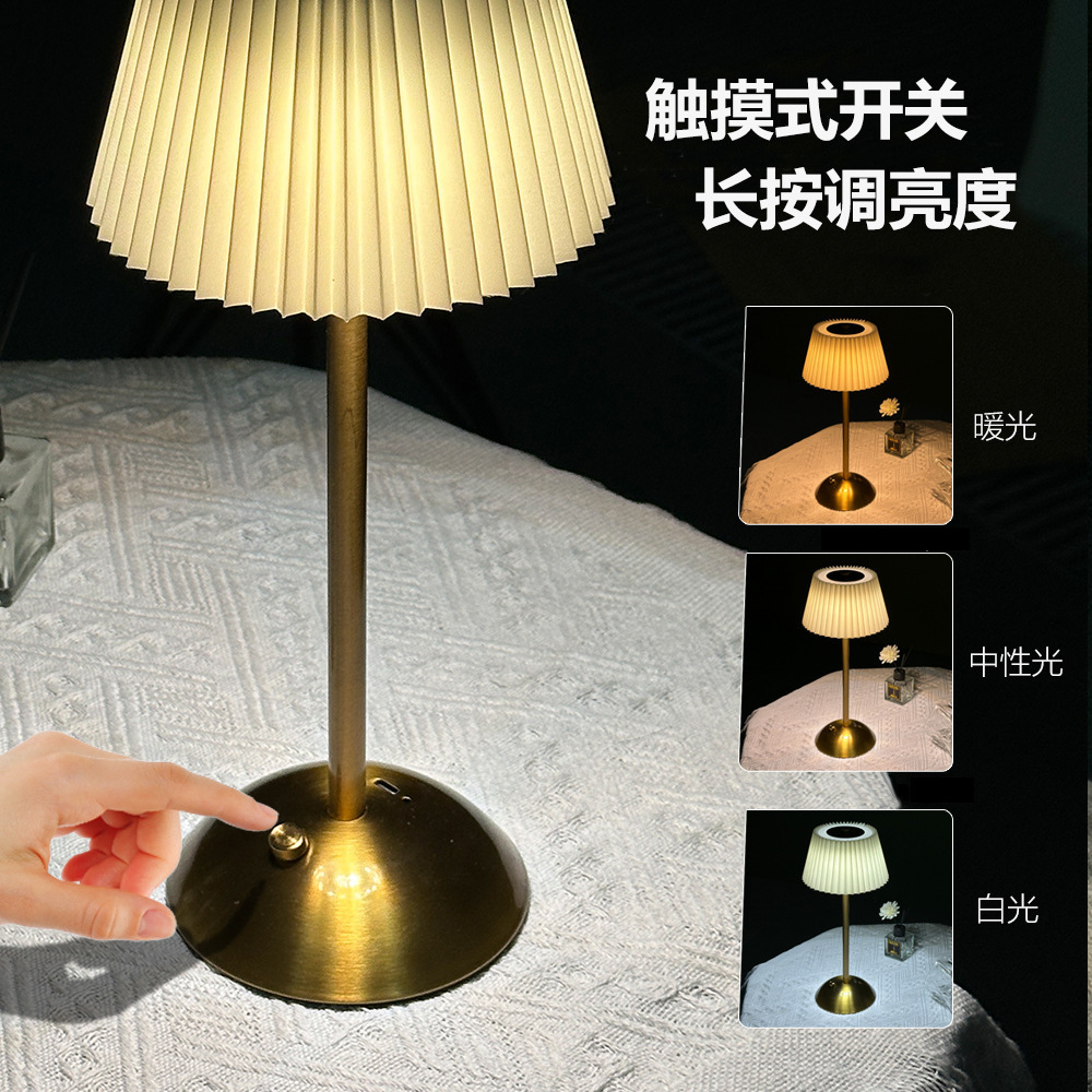现代简约百褶布艺金属台灯跨境卧室床头氛围灯充电触摸小夜灯礼物
