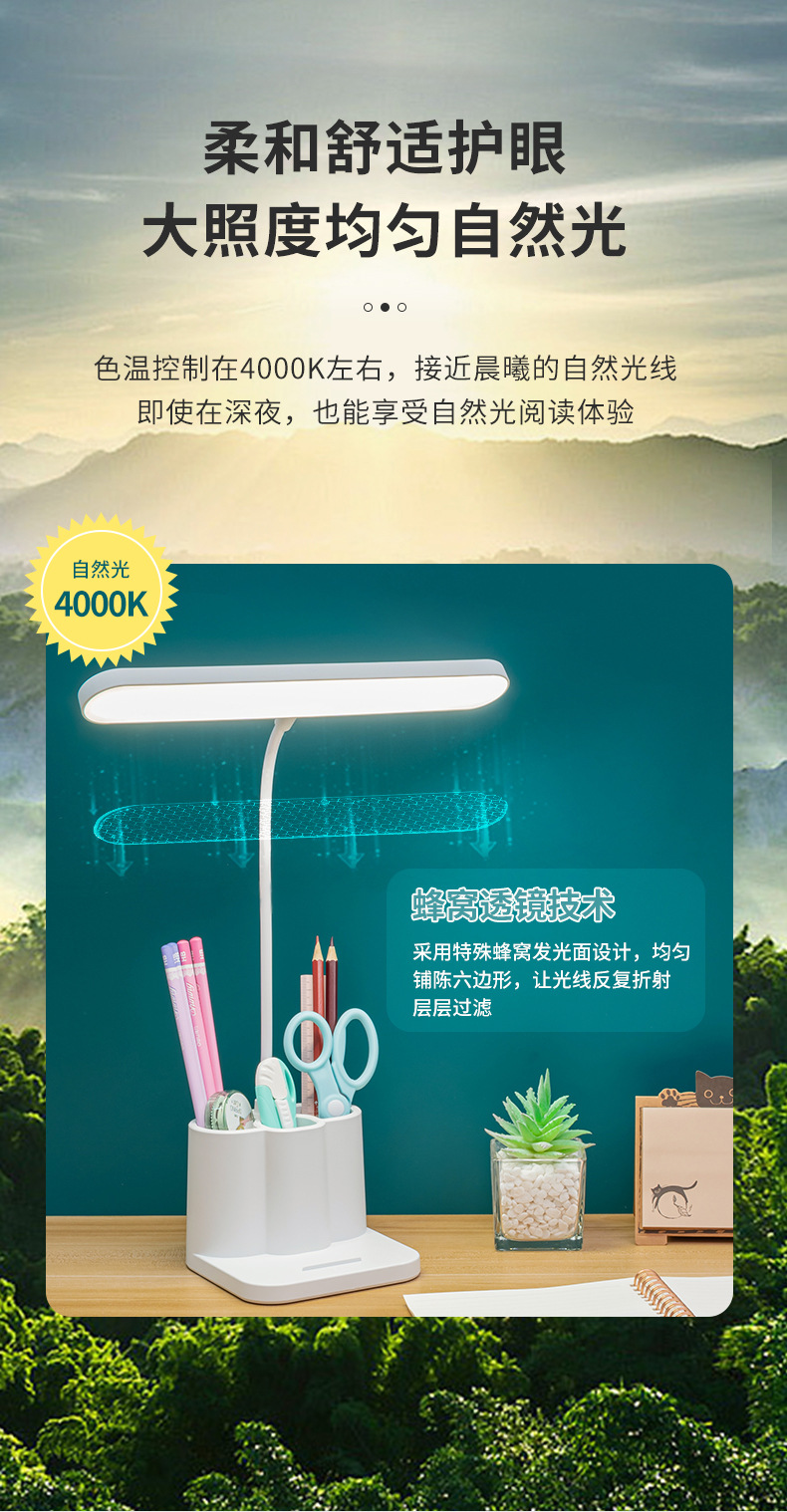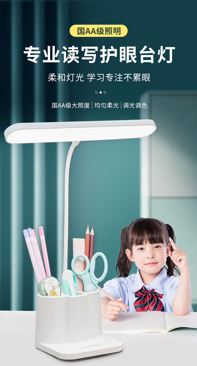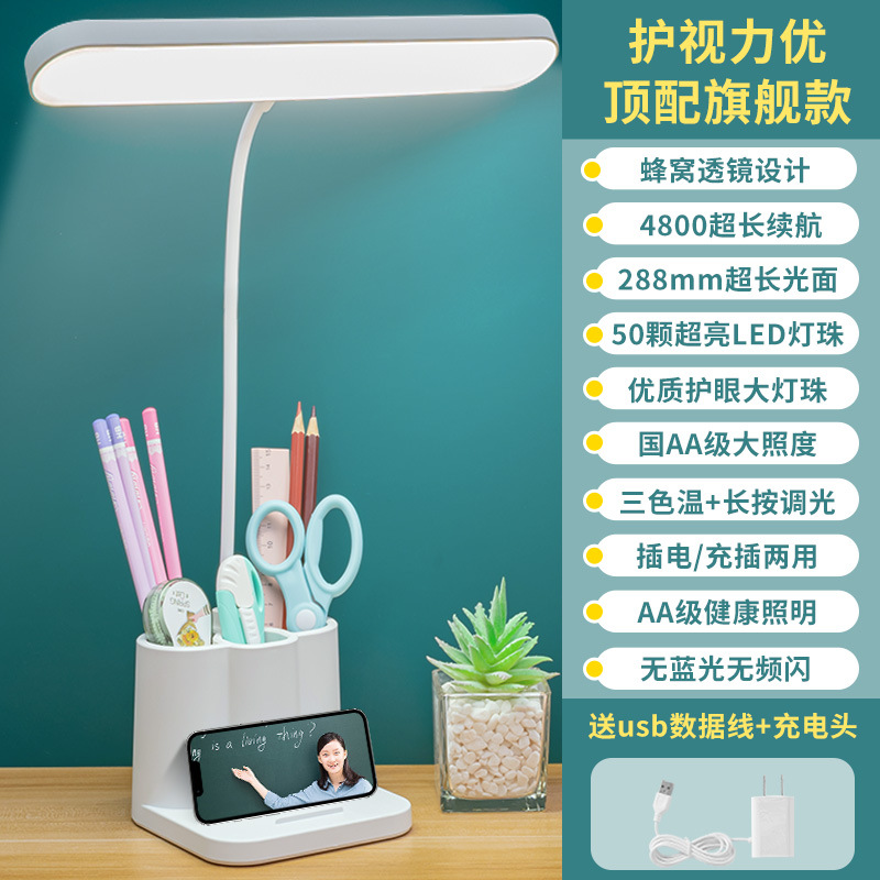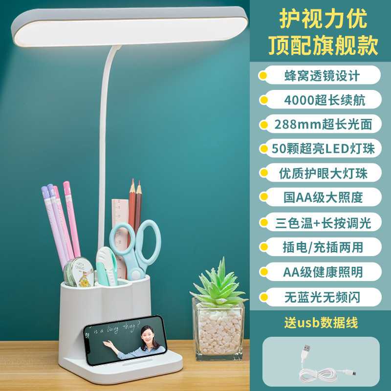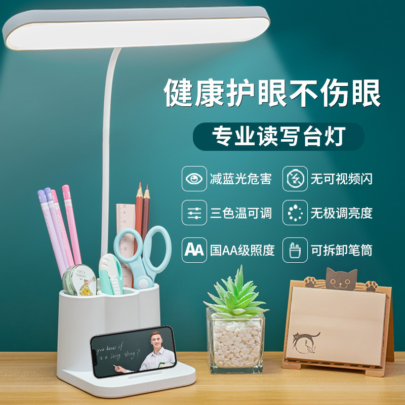 笔筒台灯护眼学习专用大学生宿舍书桌充电式插电阅读作业立式台灯