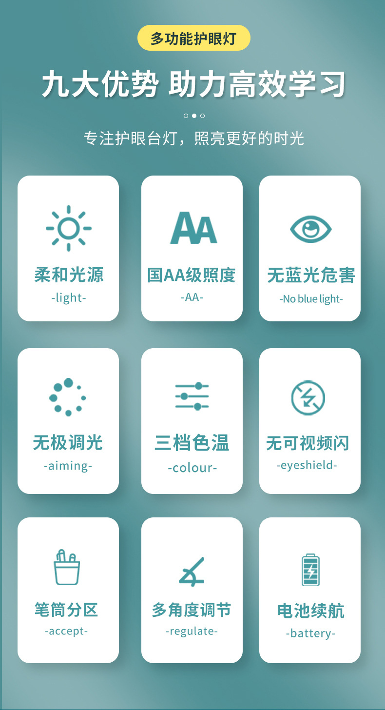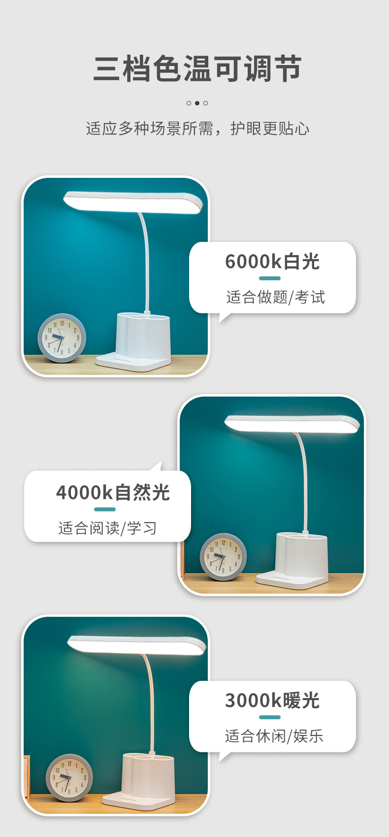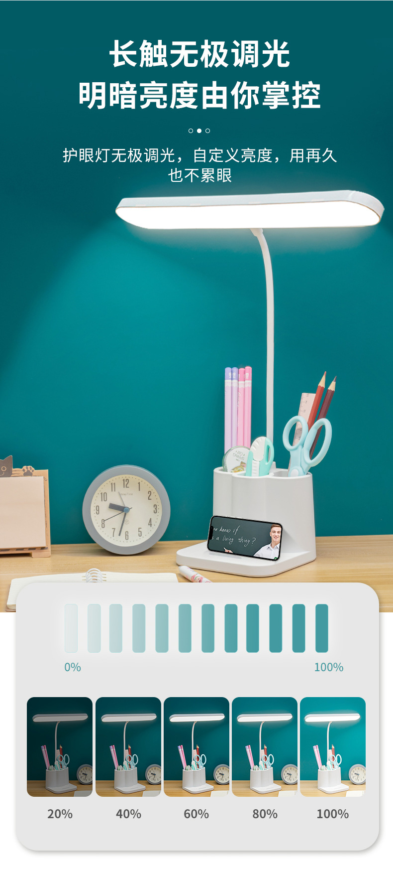 笔筒台灯护眼学习专用大学生宿舍书桌充电式插电阅读作业立式台灯