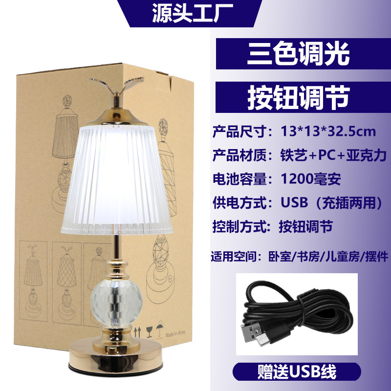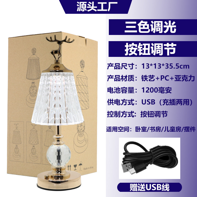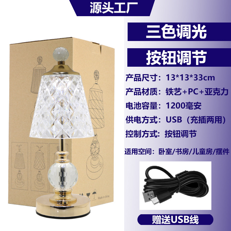 跨境轻奢小夜灯水晶装饰台灯现代简约氛围灯卧室床头触摸摆件夜灯