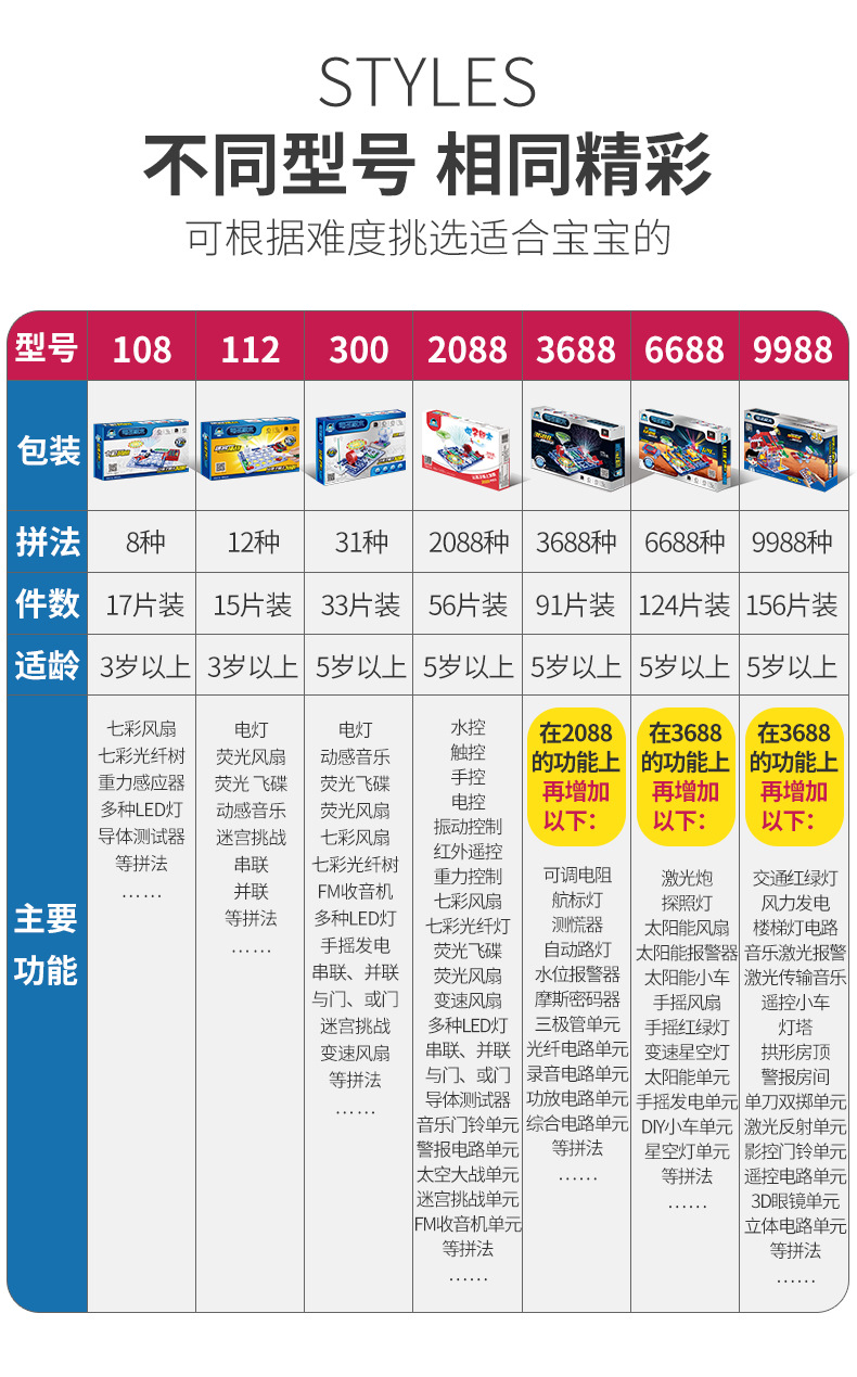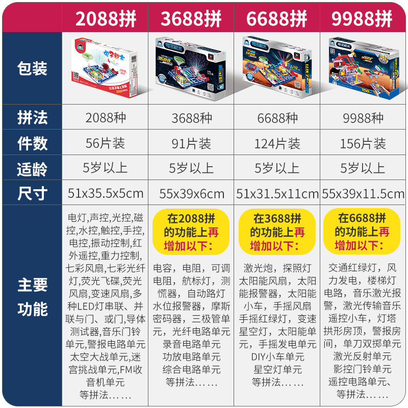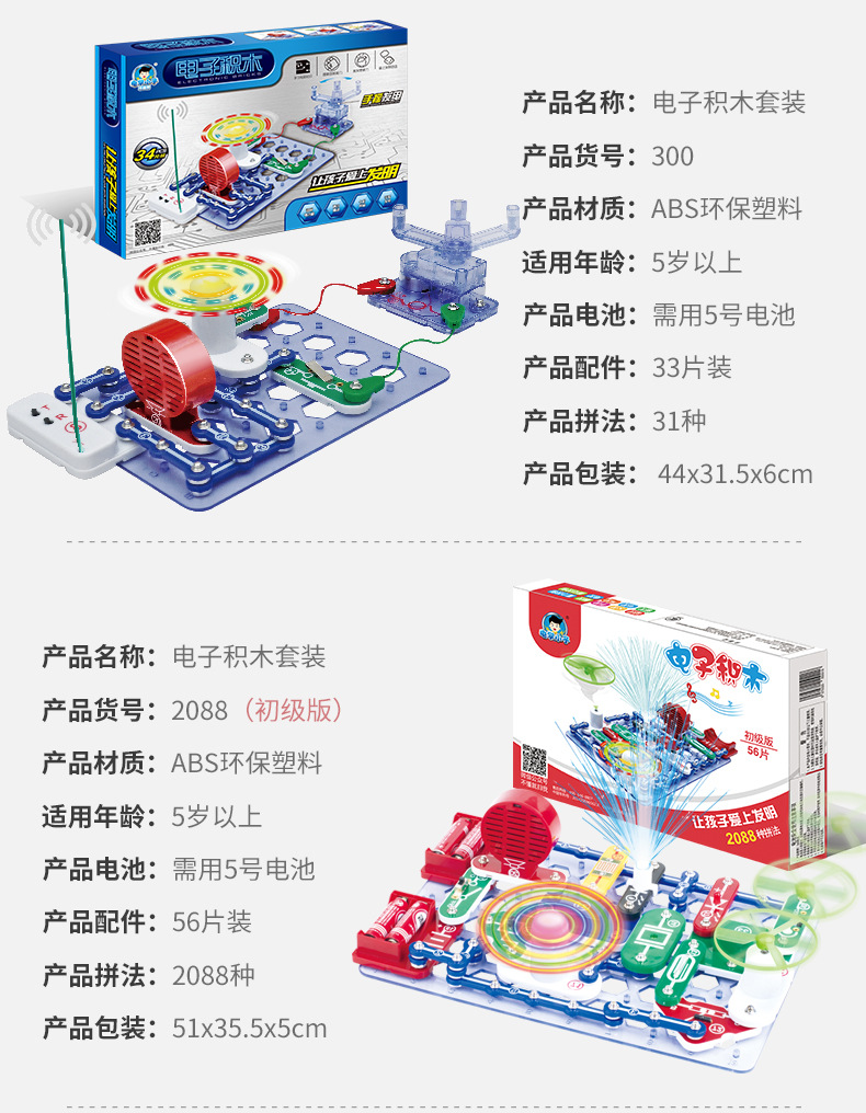 电学小子电子积木9988电子百拼6688儿童物理电路教学科学玩具批发