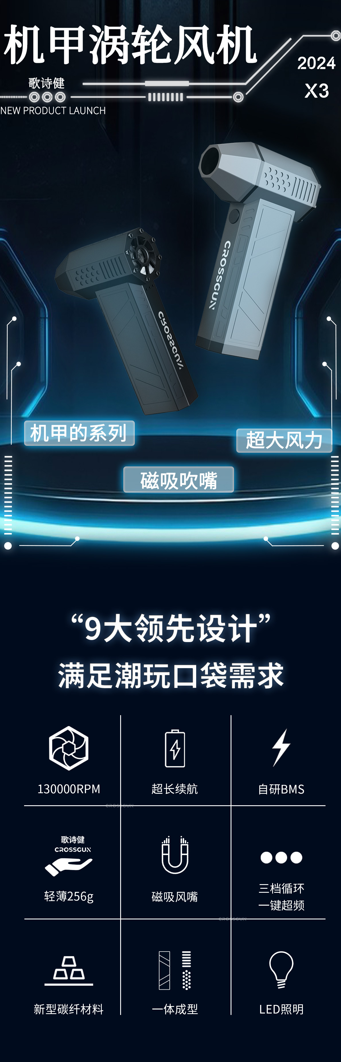 crossgun暴力风扇暴风X3PRO 跨境户外吹尘器锂电工业吹风机大功率