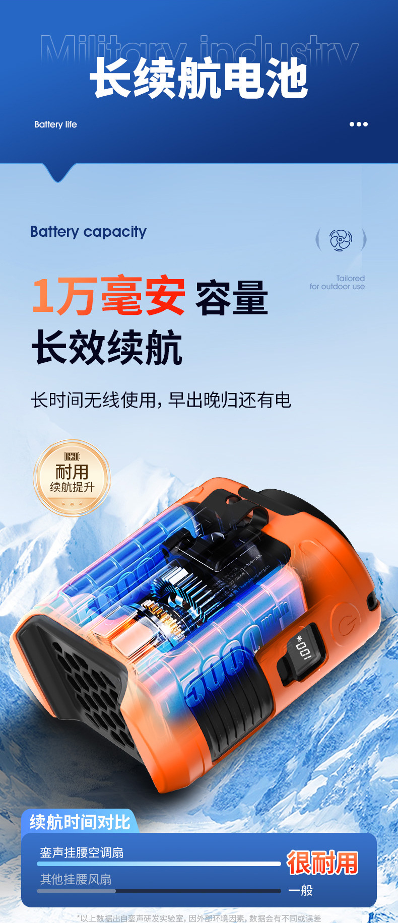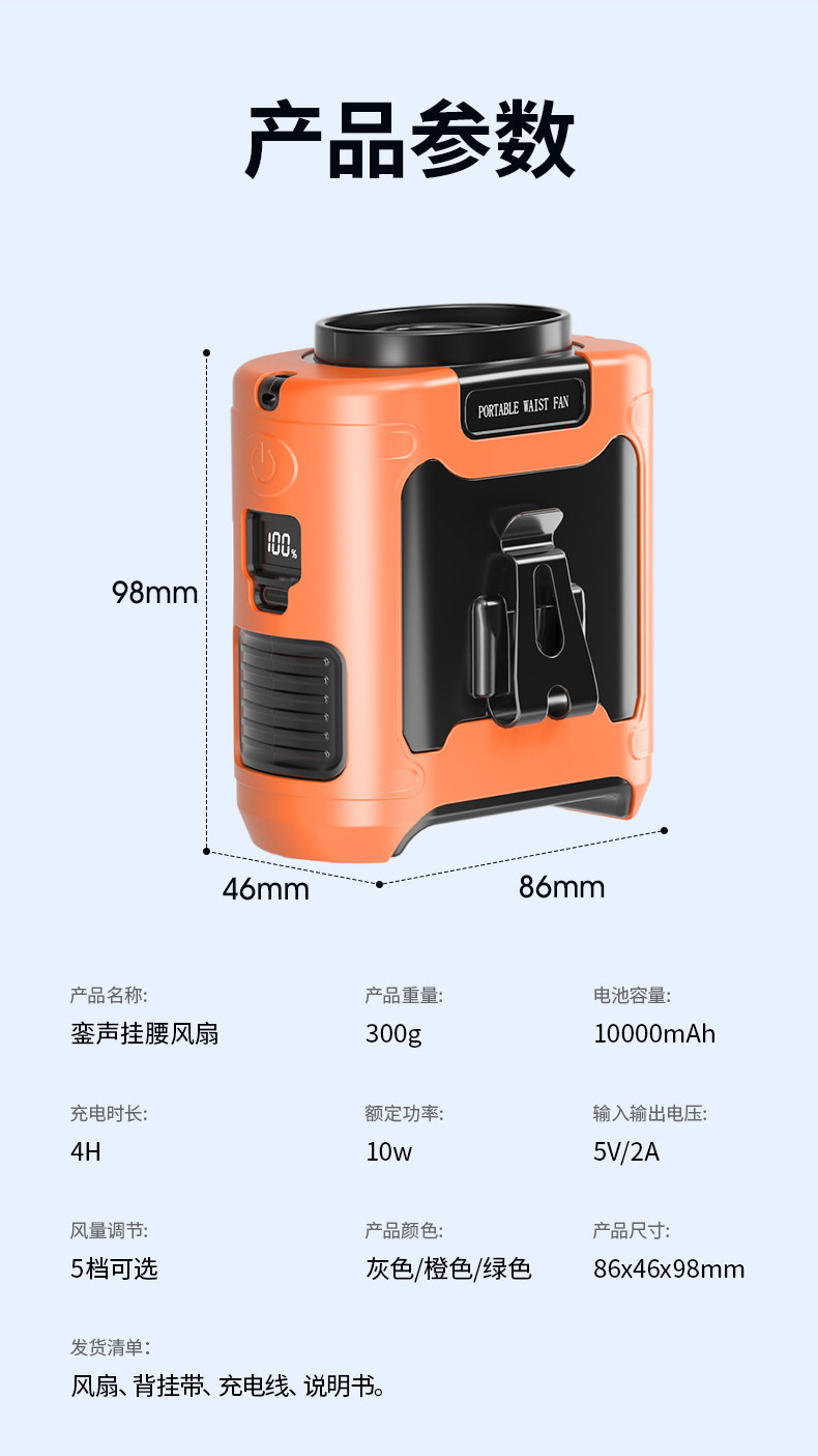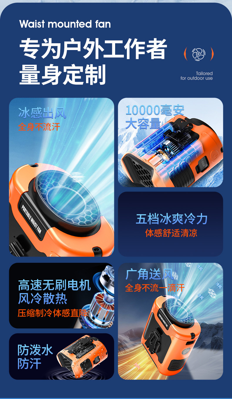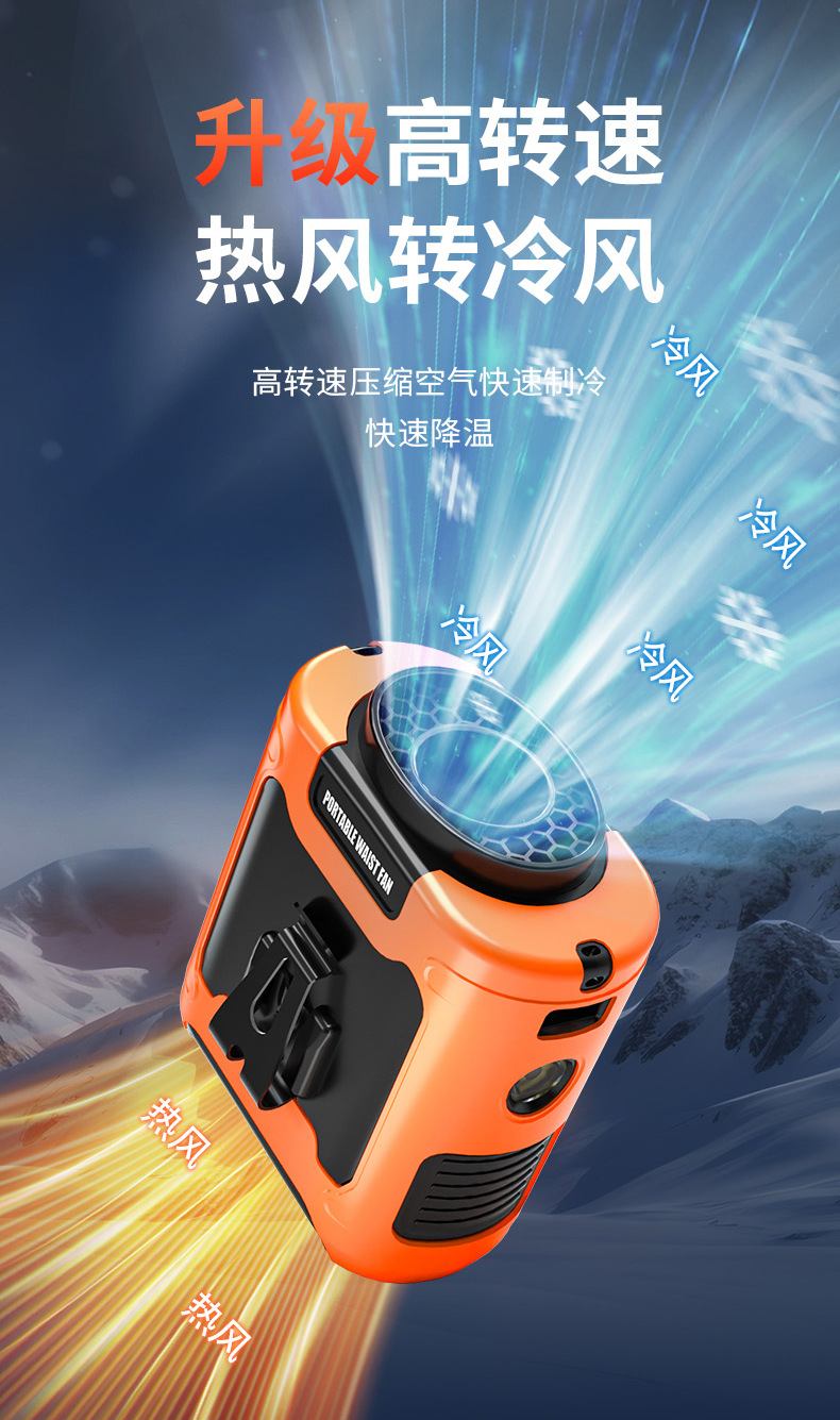 銮声新款K50挂腰充电风扇防水防摔全身降温防尘挂肚小型大功率