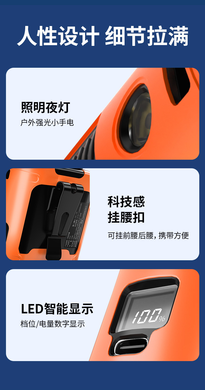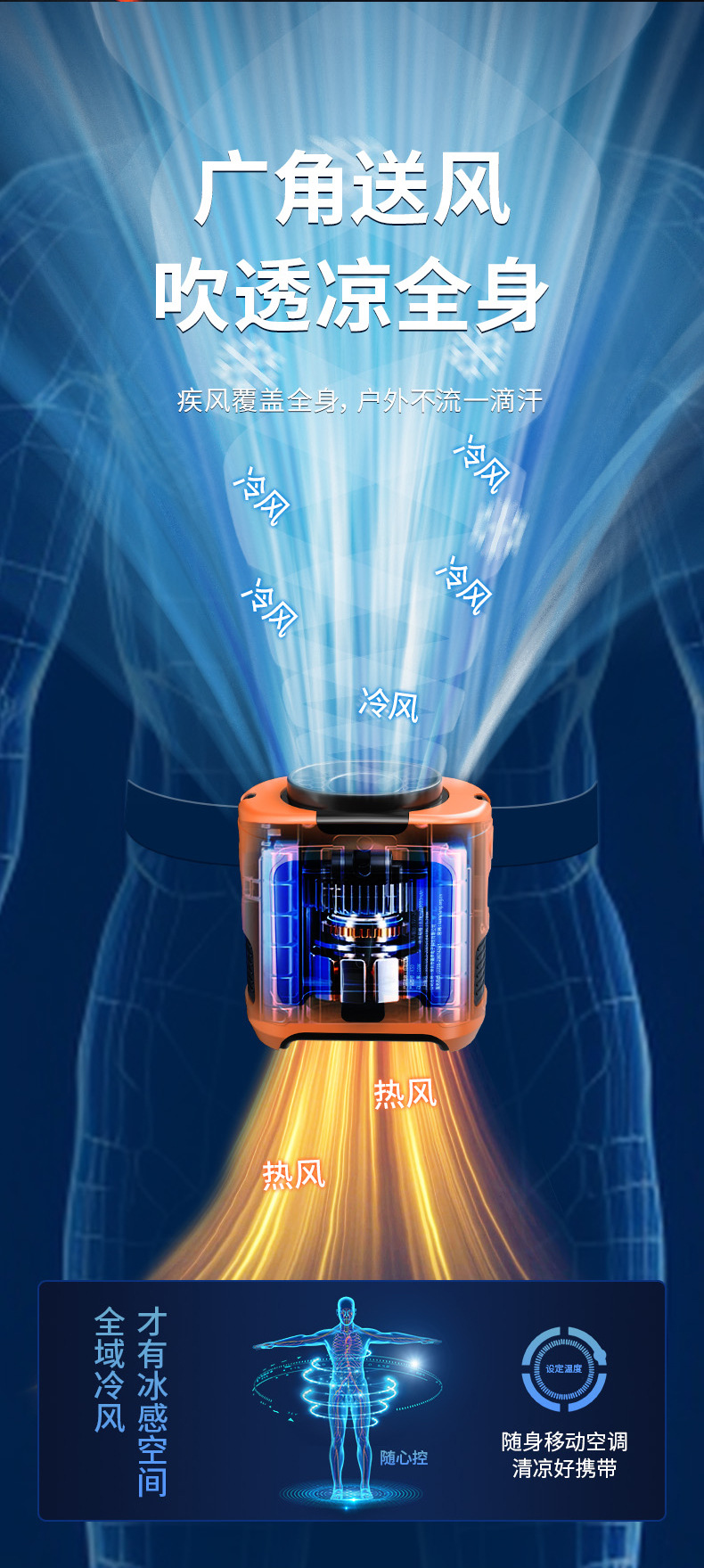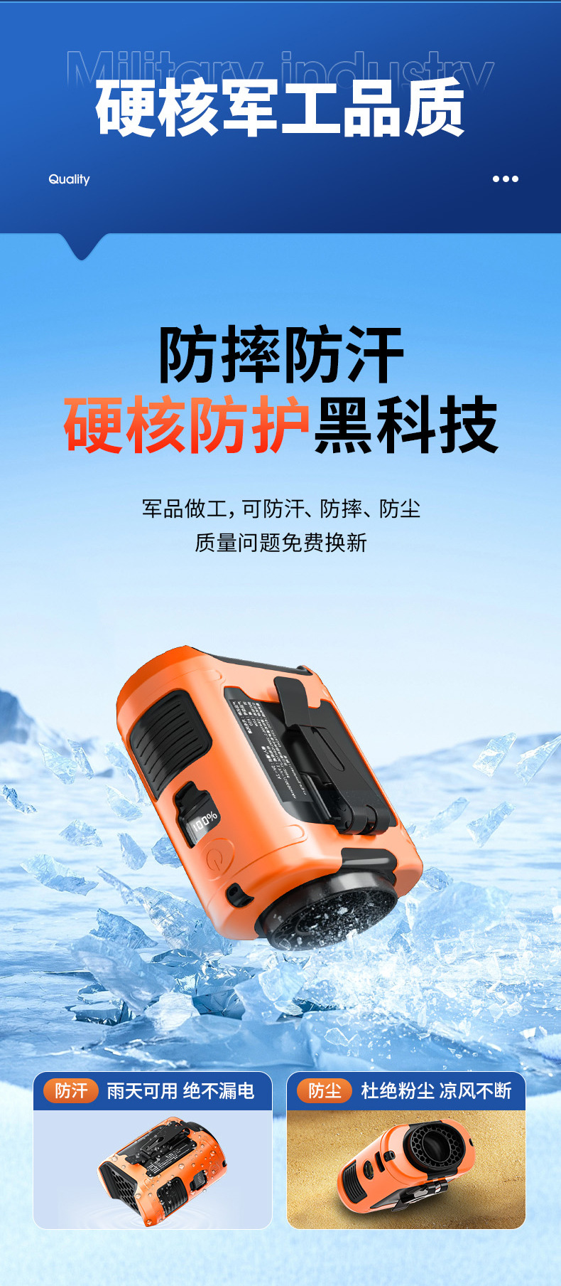 銮声新款K50挂腰充电风扇防水防摔全身降温防尘挂肚小型大功率