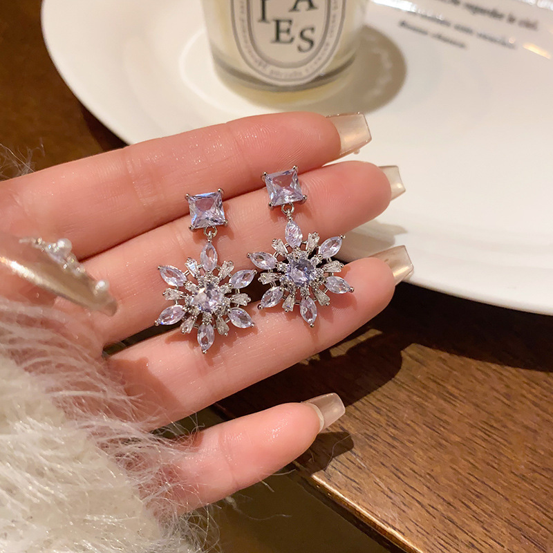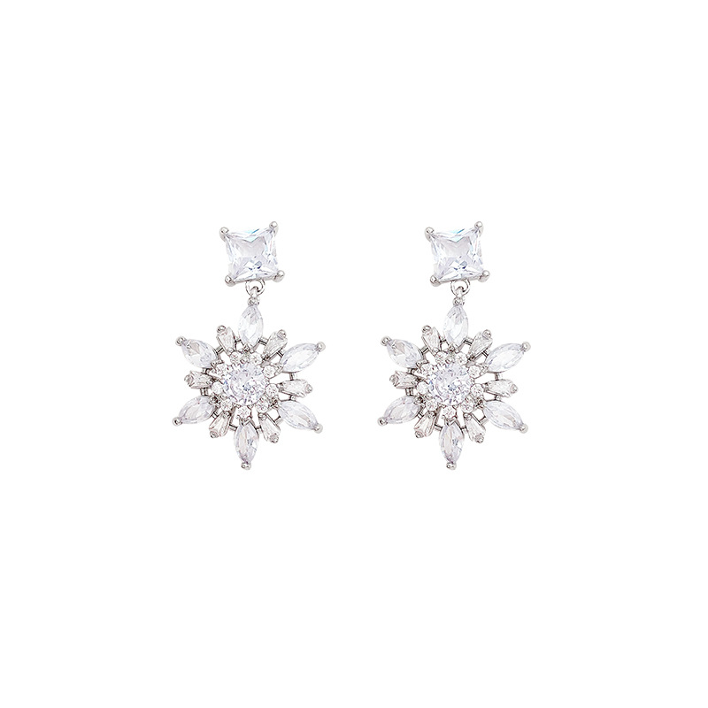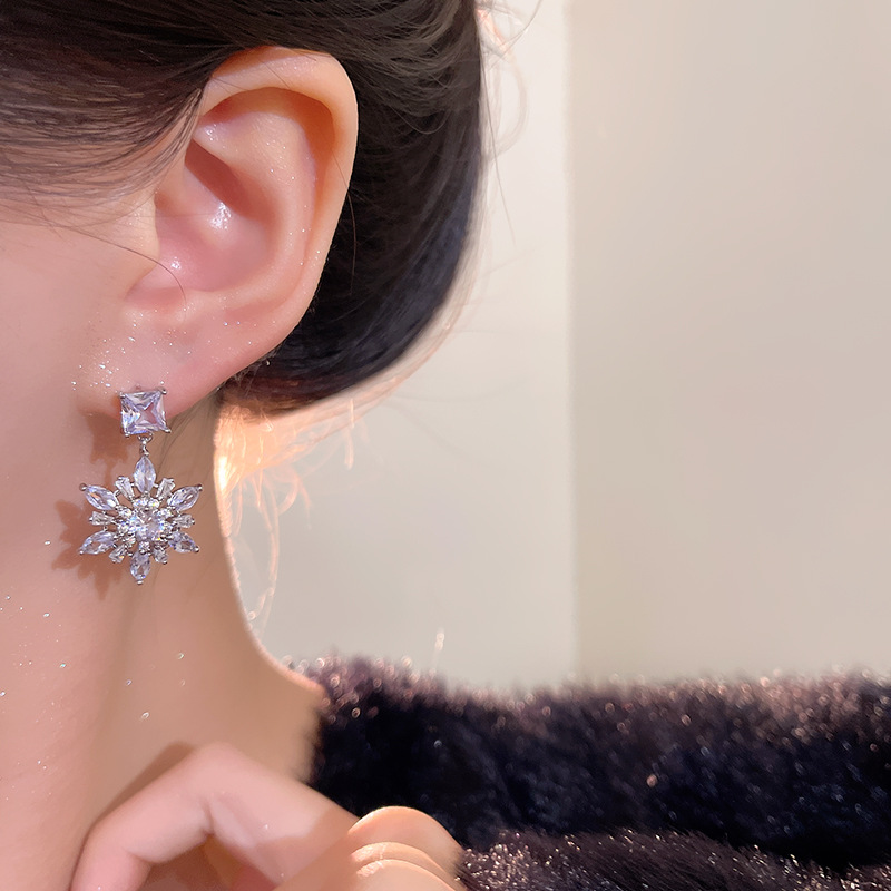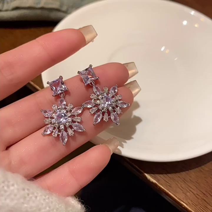 轻奢小众时尚气质高级感耳环耳饰爆闪精致满钻锆石雪花耳钉女批发
