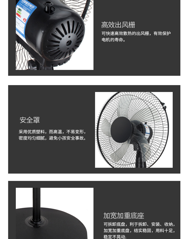 厂家16寸黑色家用电风扇多档可调节大功率五叶落地立式摇头落地扇