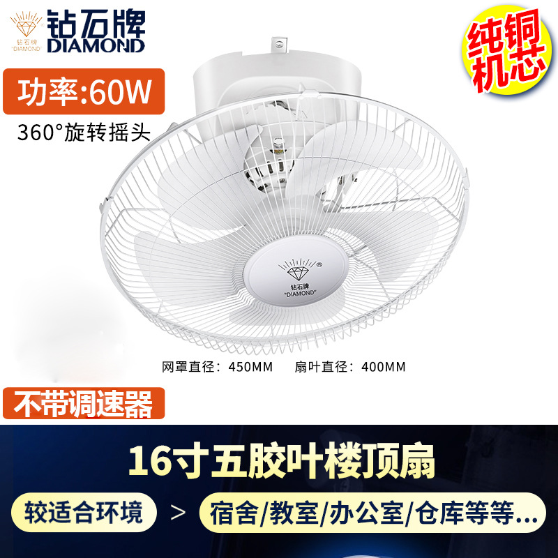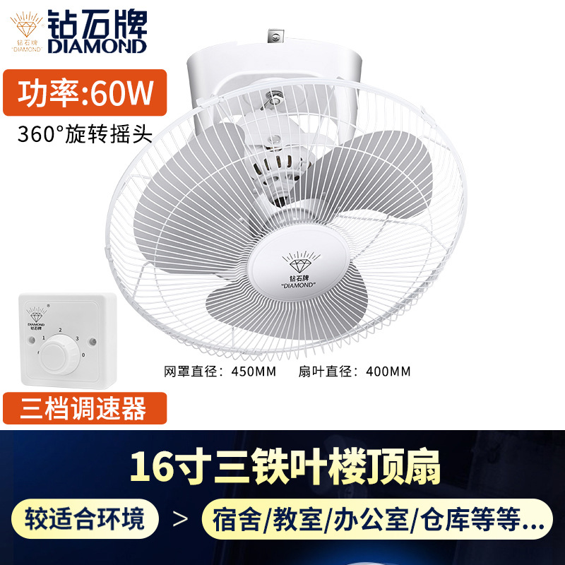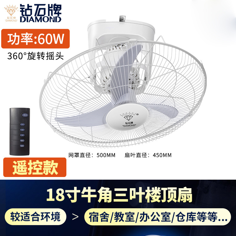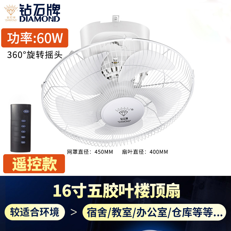 钻石牌楼顶扇16寸商用摇头风扇学校宿舍大功率遥控器吸顶扇电风扇