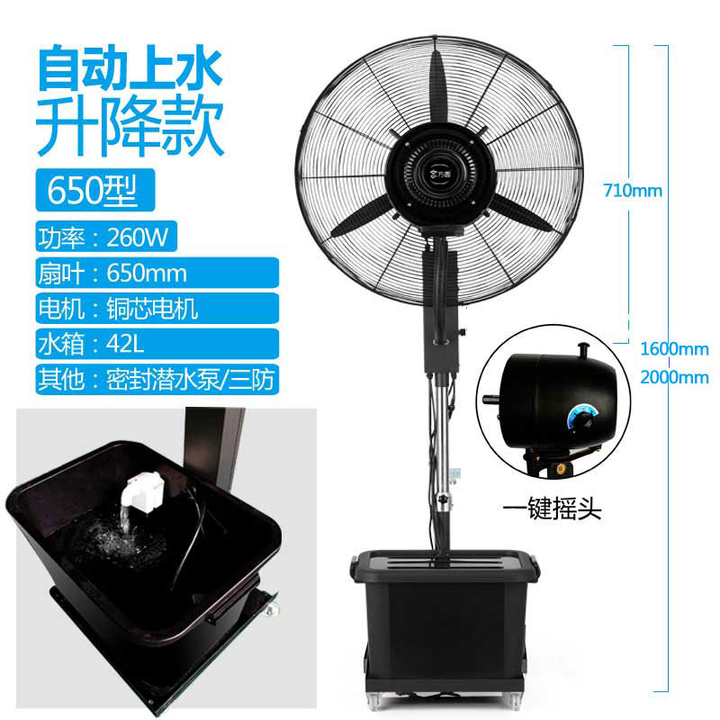 京方圆工业喷雾风扇水雾化降温水冷制冷大功率商用强力落地电风扇