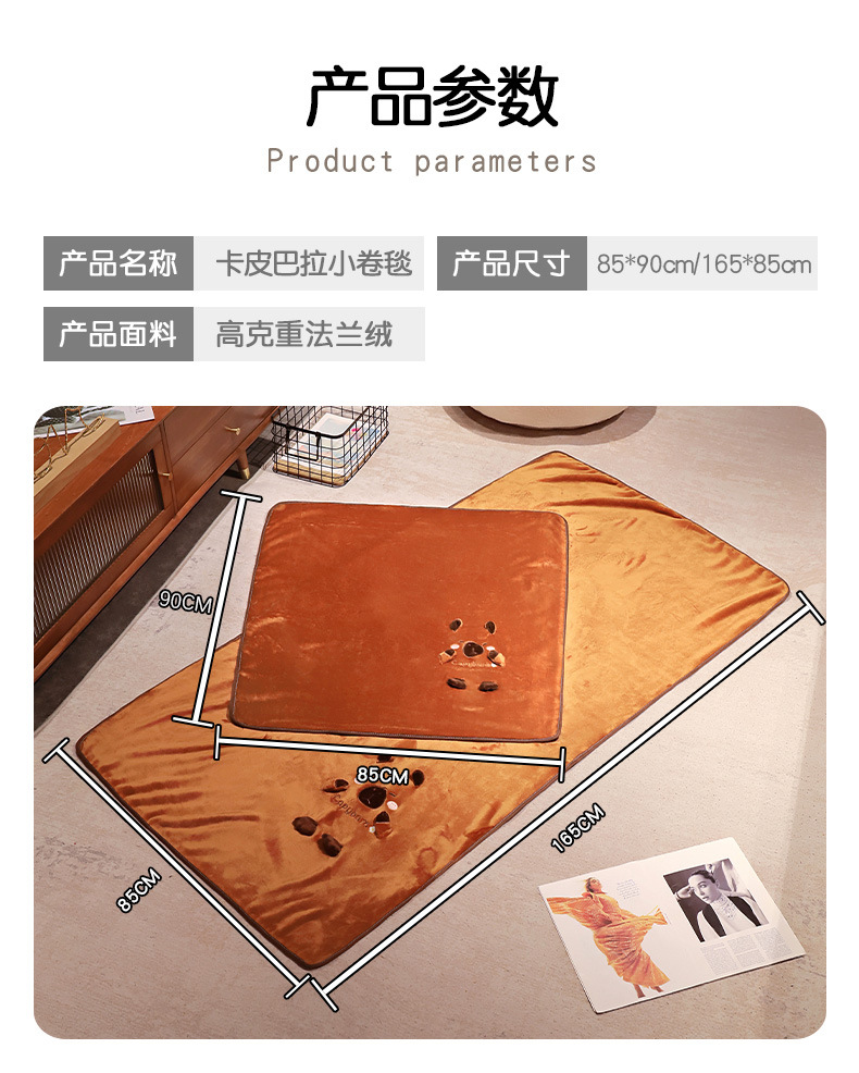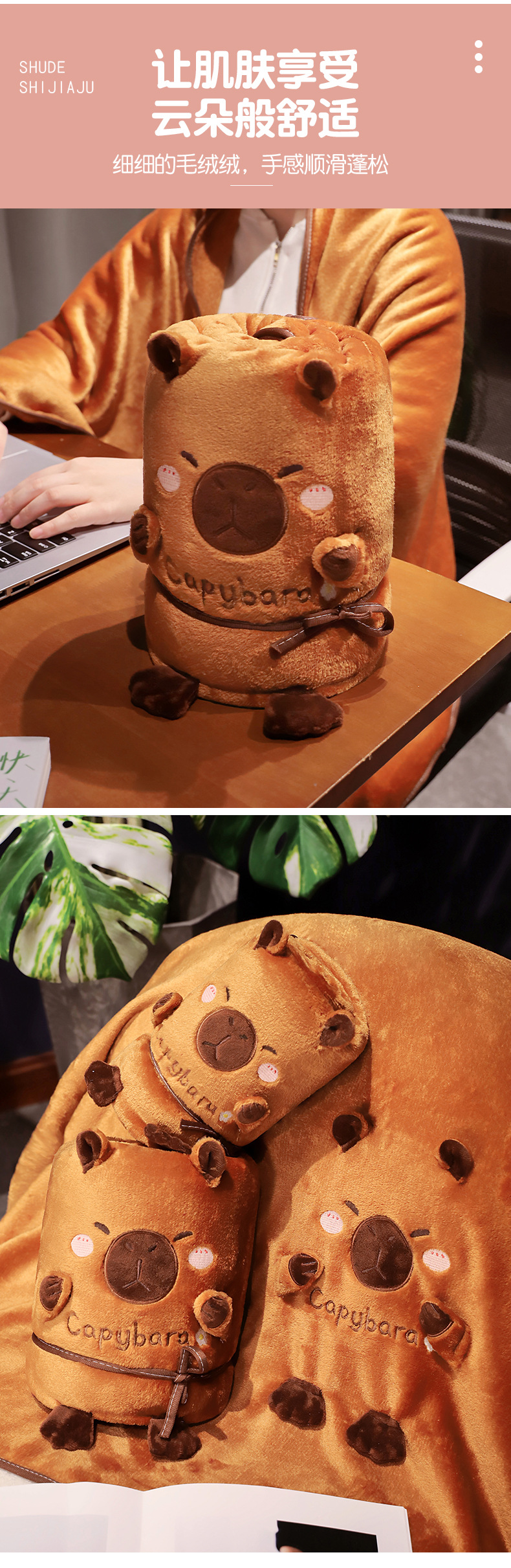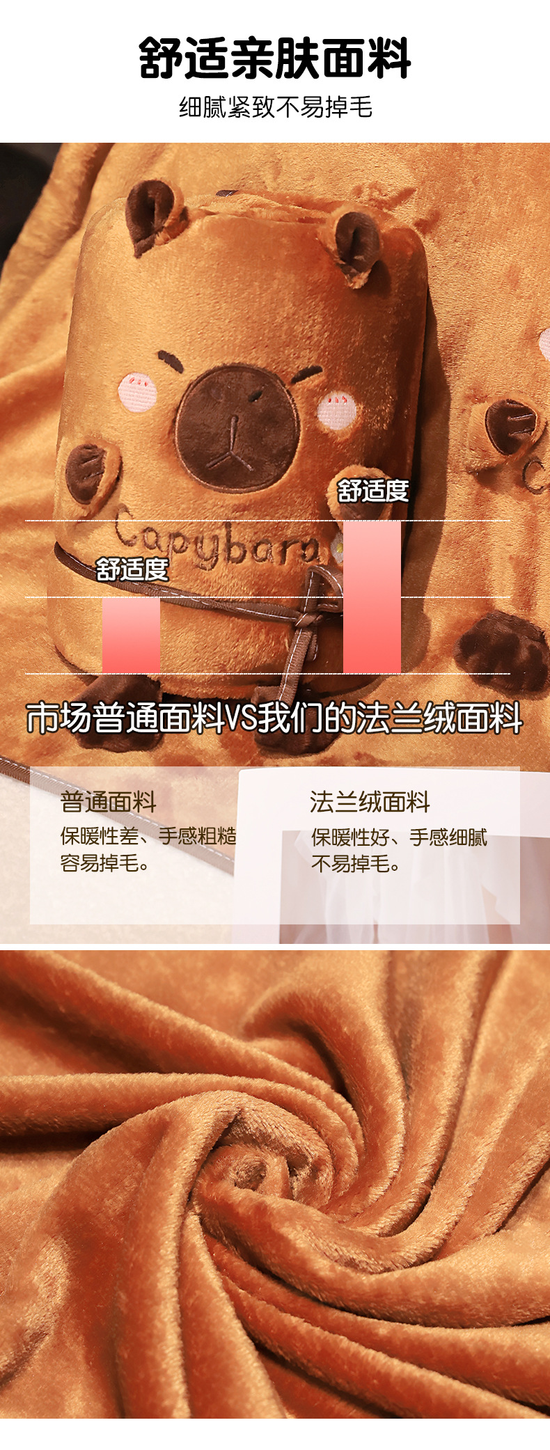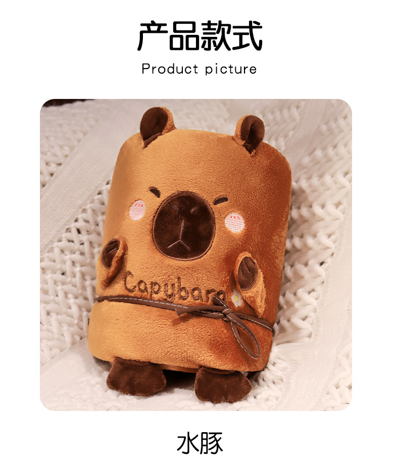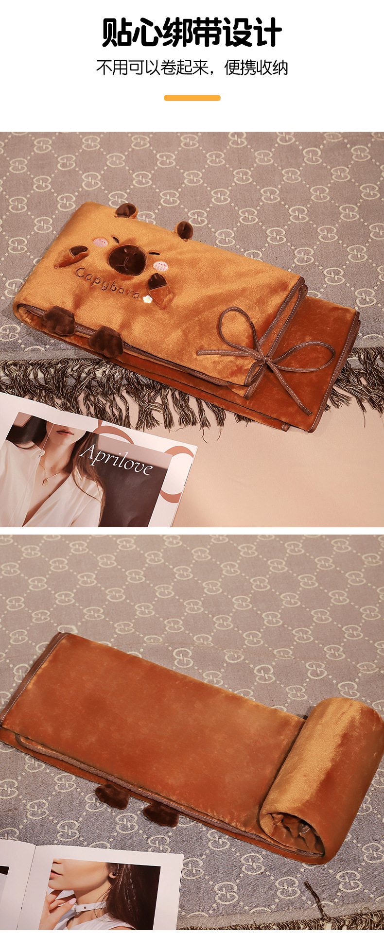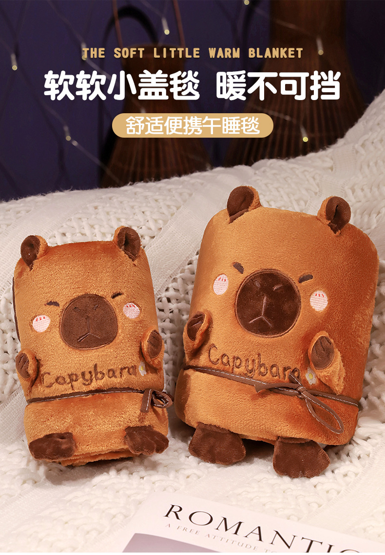 创意卡通水豚卡皮巴拉小卷毯办公室沙发学生汽车午休毛毯四季通用