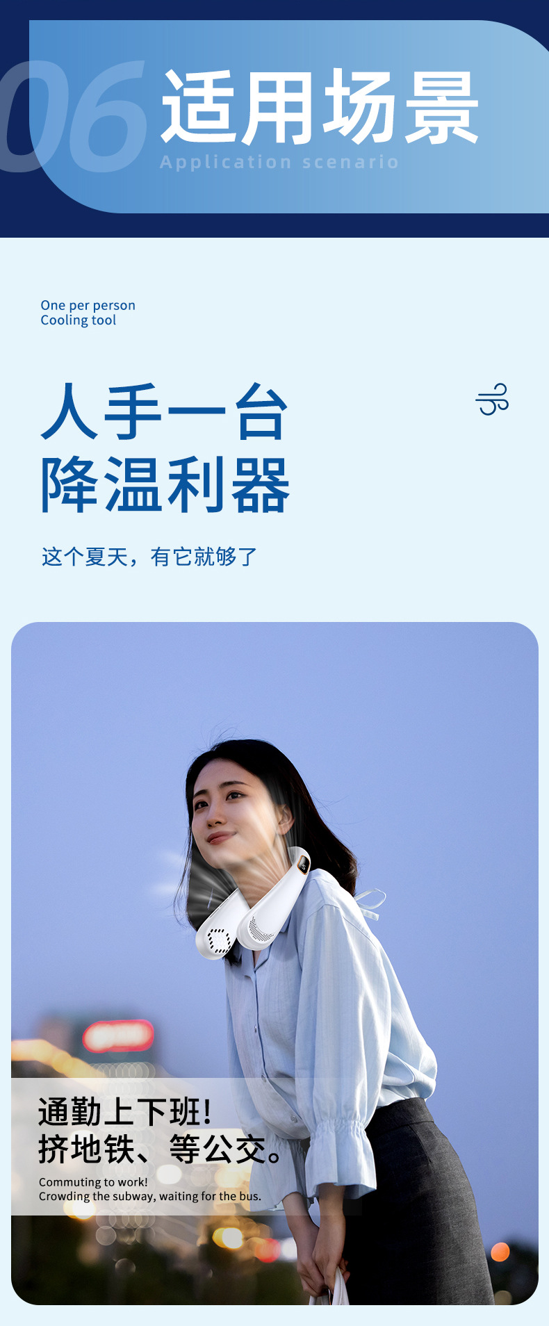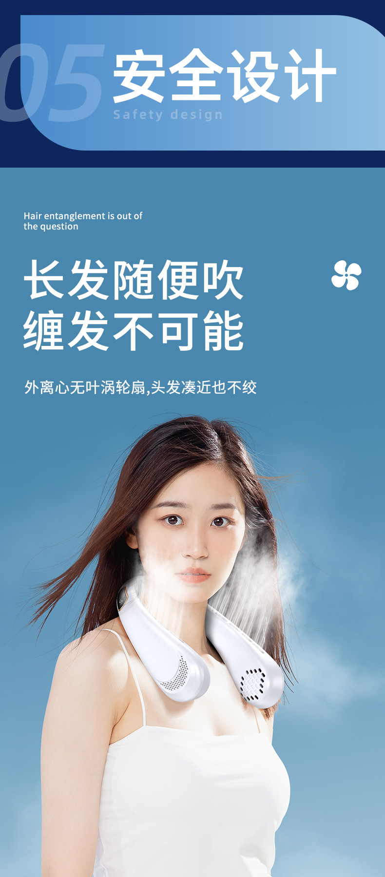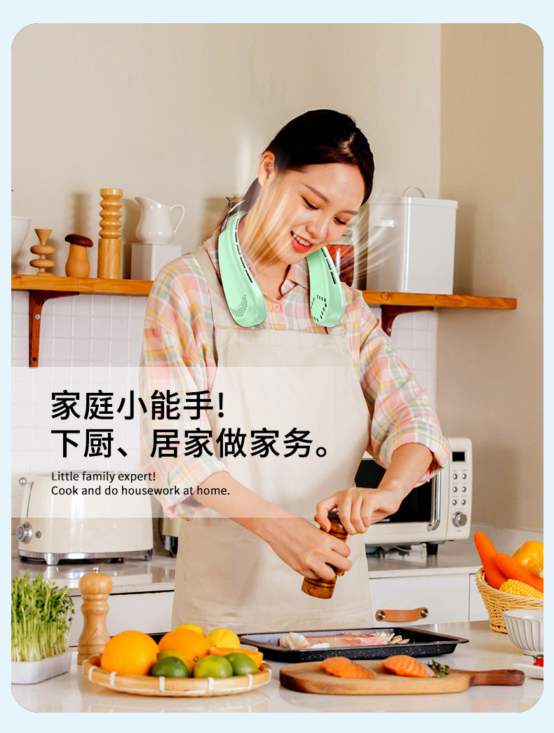 新款数显五档无叶挂脖风扇 usb充电迷你懒人户外便携式挂颈小风扇