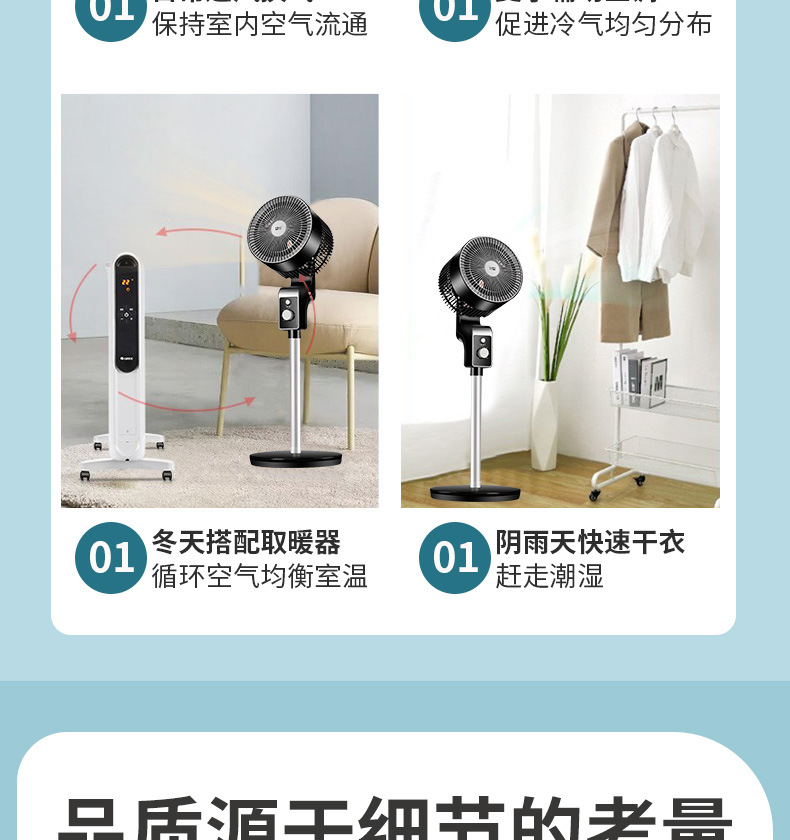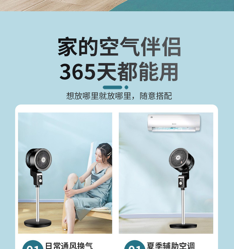 空气扇家用落地扇台立两用扇底噪左右摇头遥控定时空气循环扇