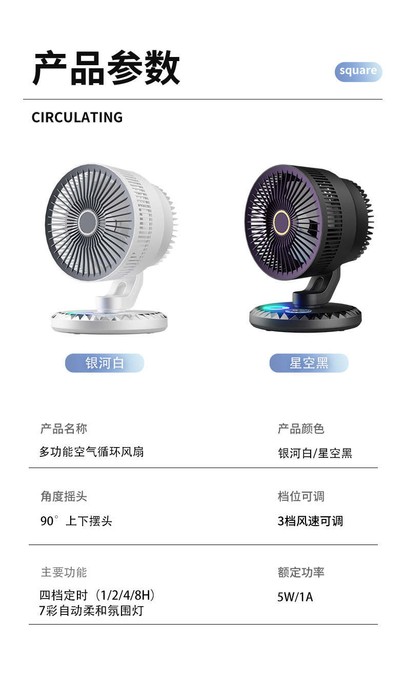 新款空气循环扇家用USB充电小风扇便携式迷你桌面香薰电风扇