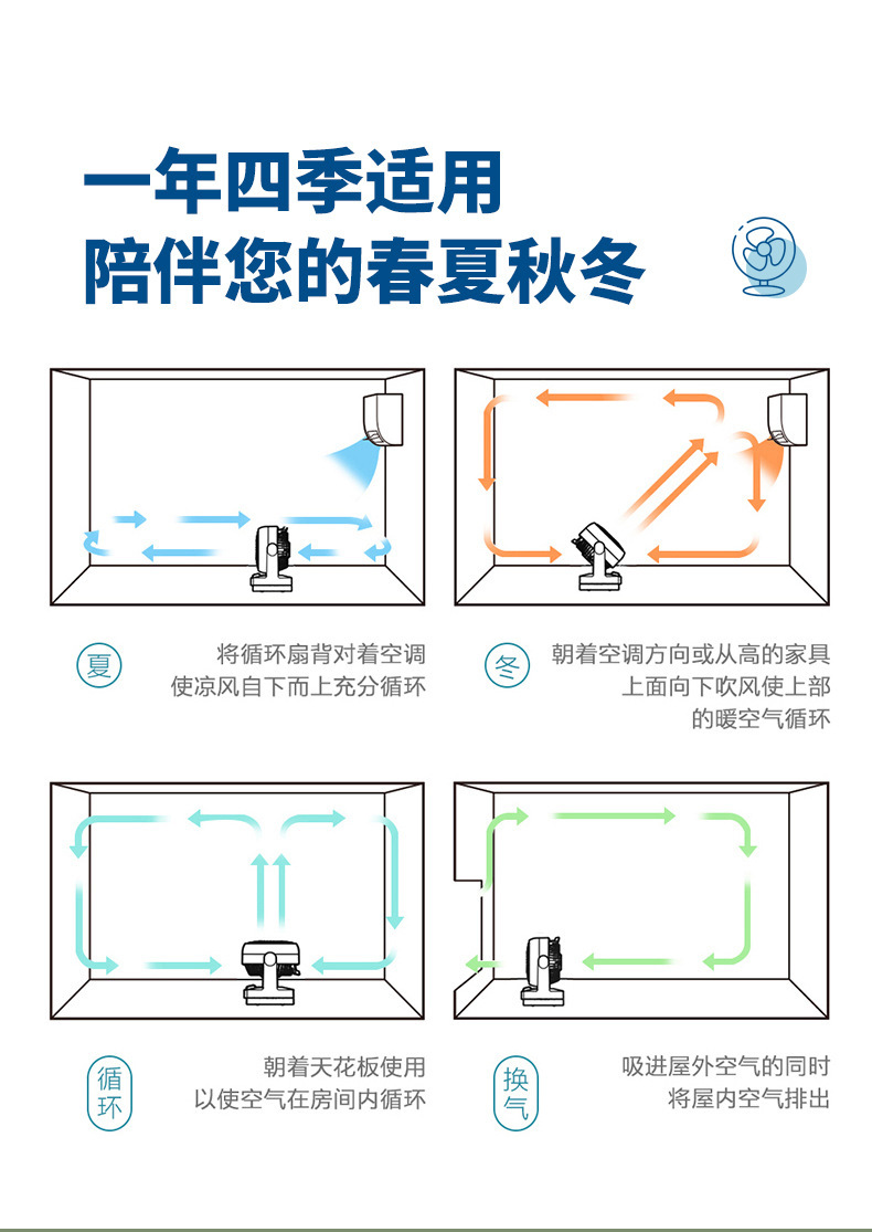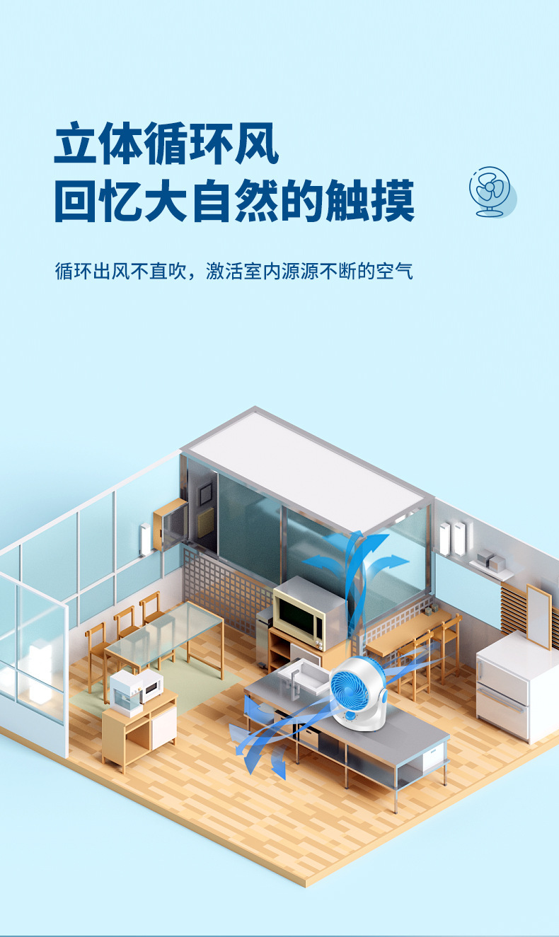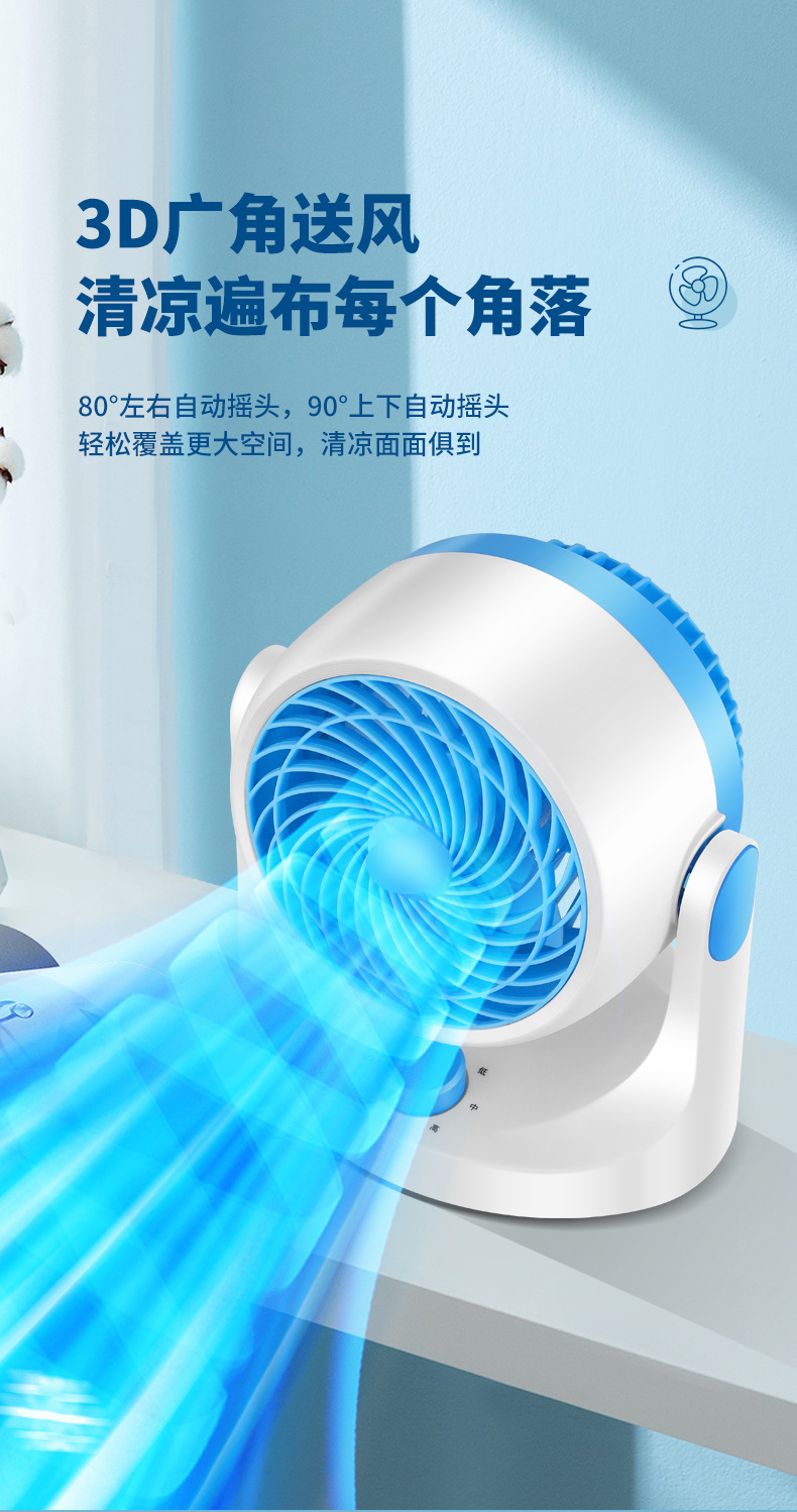 金正空气循环扇小型办公桌面电风扇家用宿舍静音大风力循环风扇
