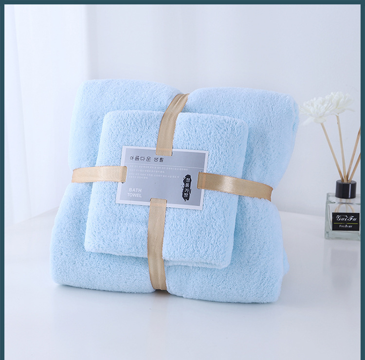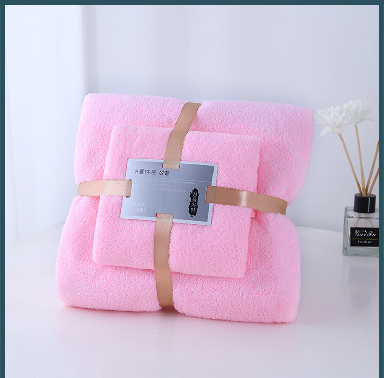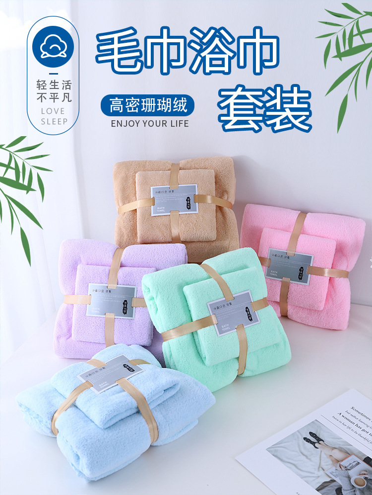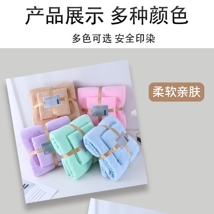 厂家现货 珊瑚绒子母套装珊瑚绒切边浴巾吸水活动礼品毛巾批发