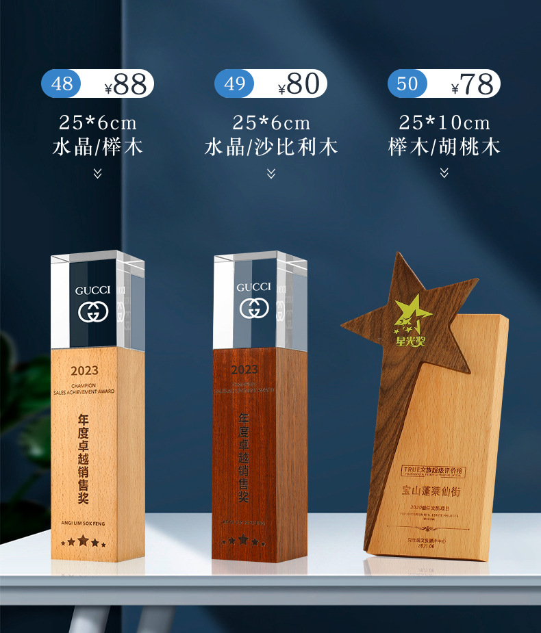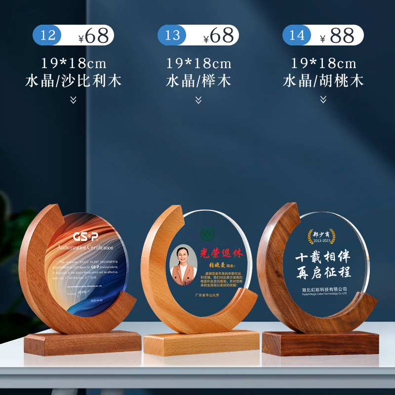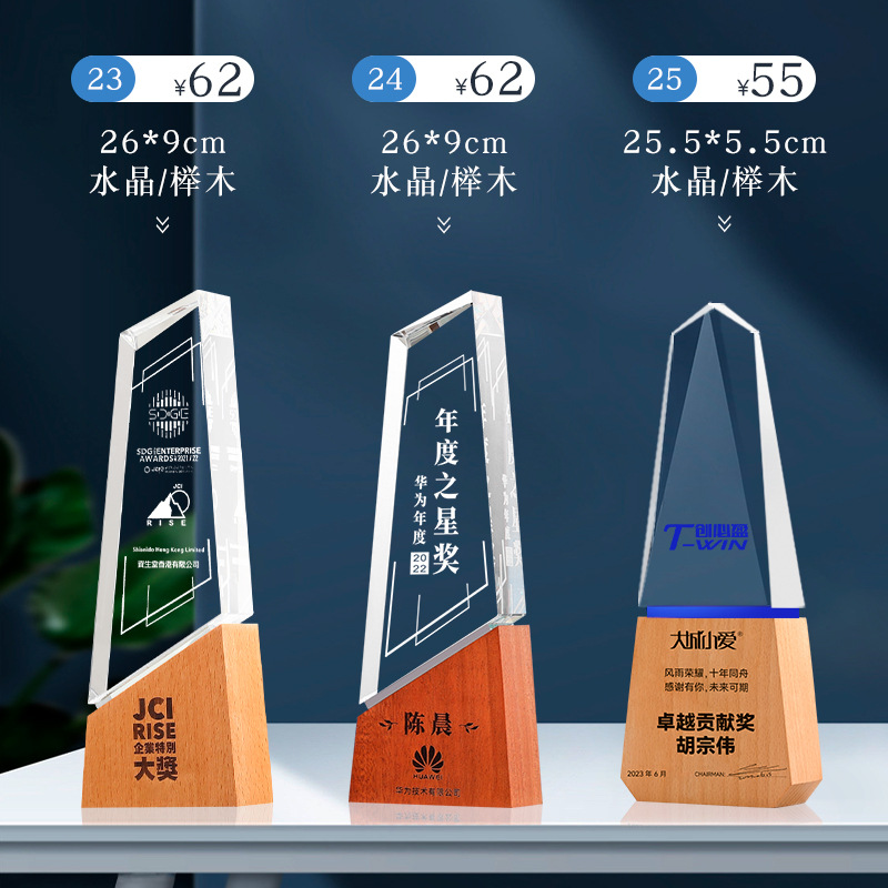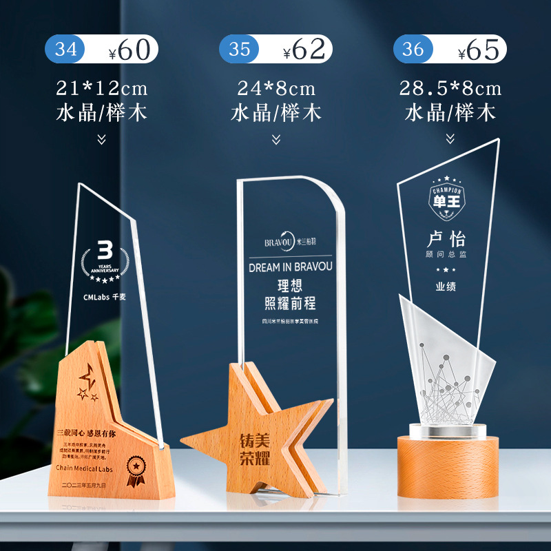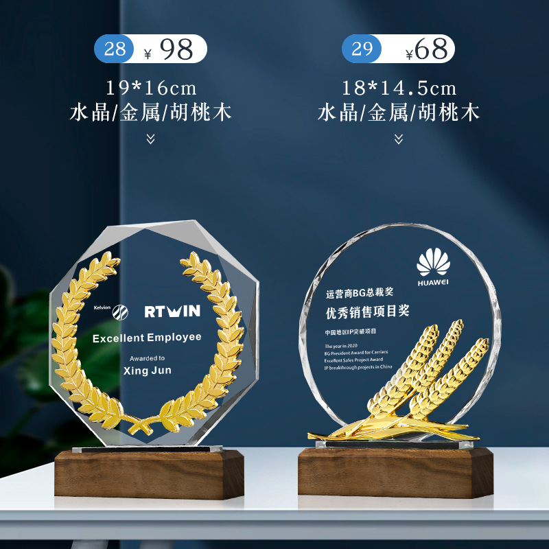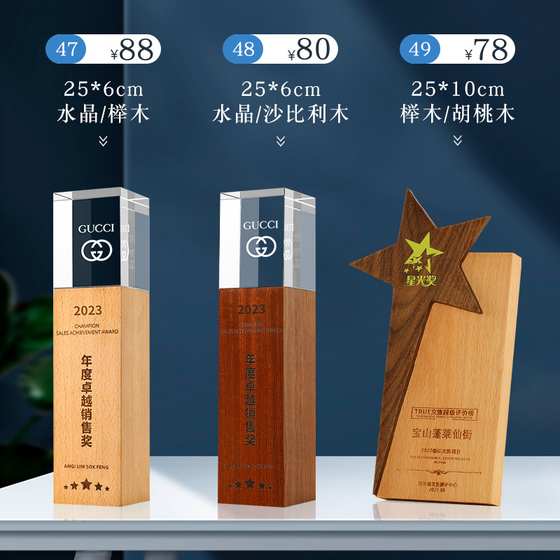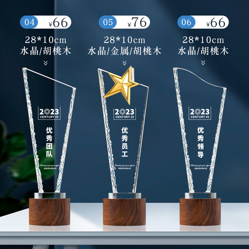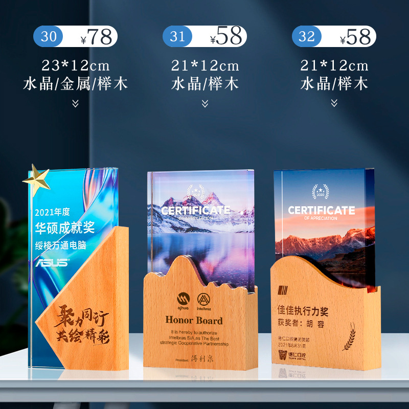 水晶奖杯批发刻字定制创意高端大气年会优秀员工实木质奖杯颁奖牌