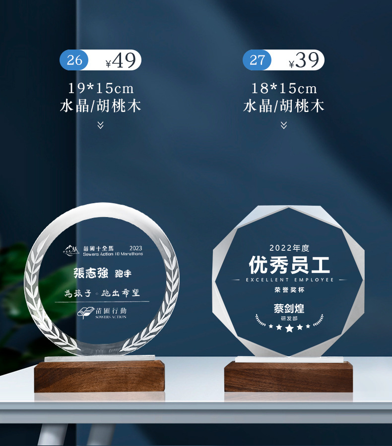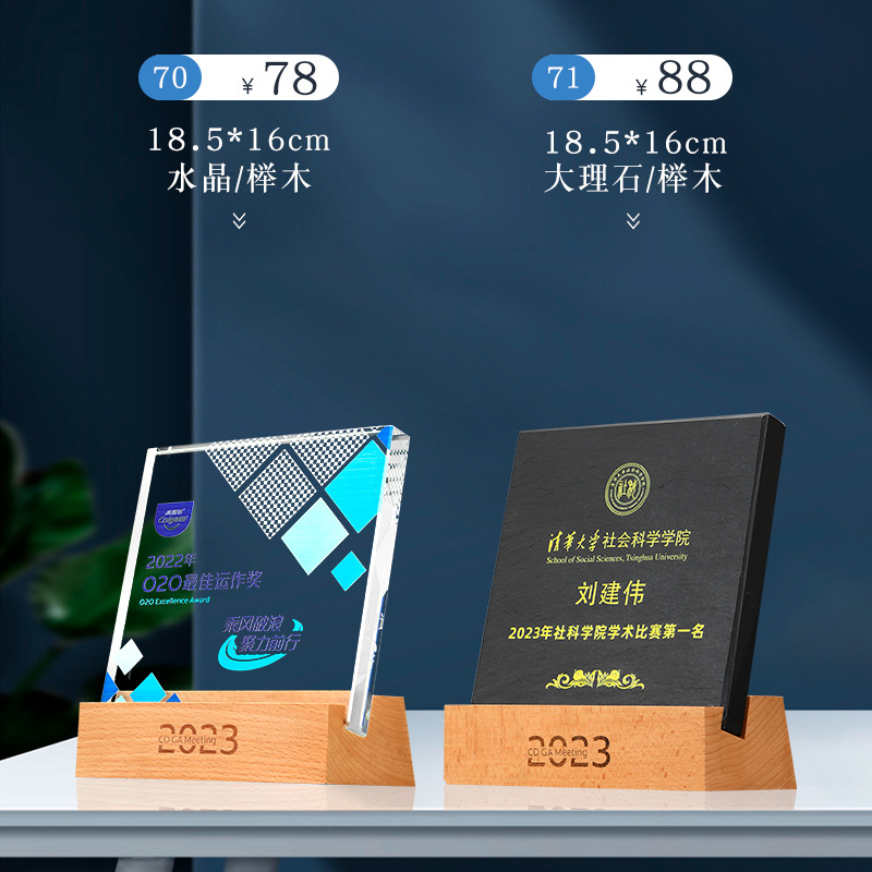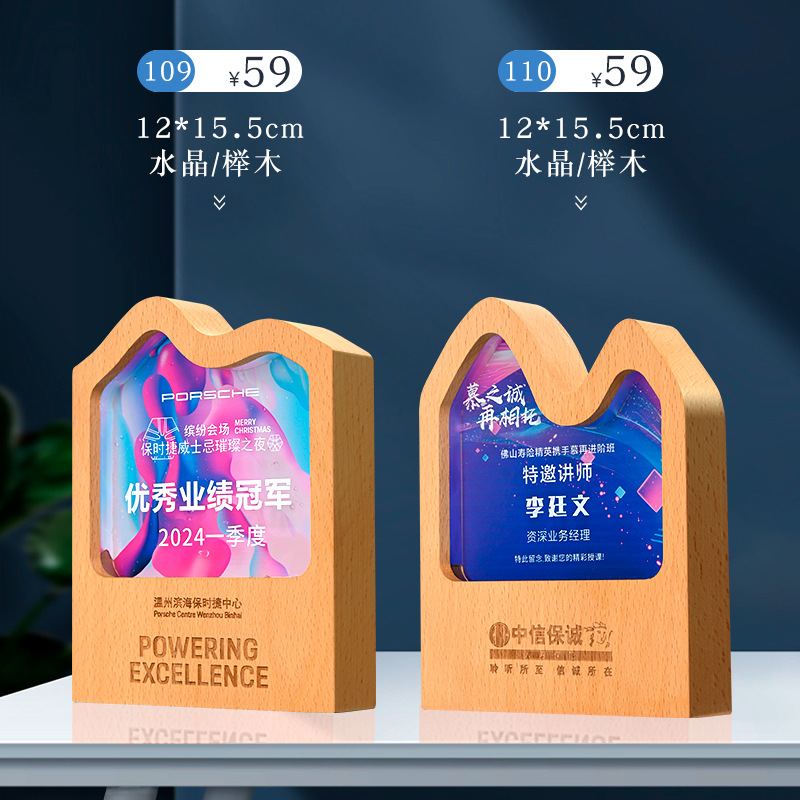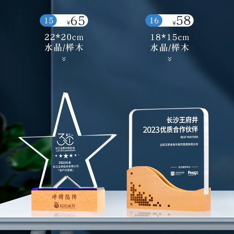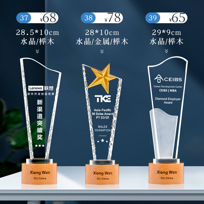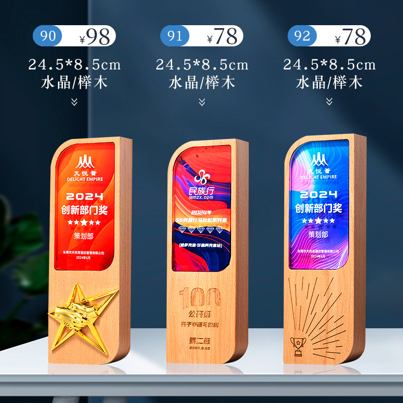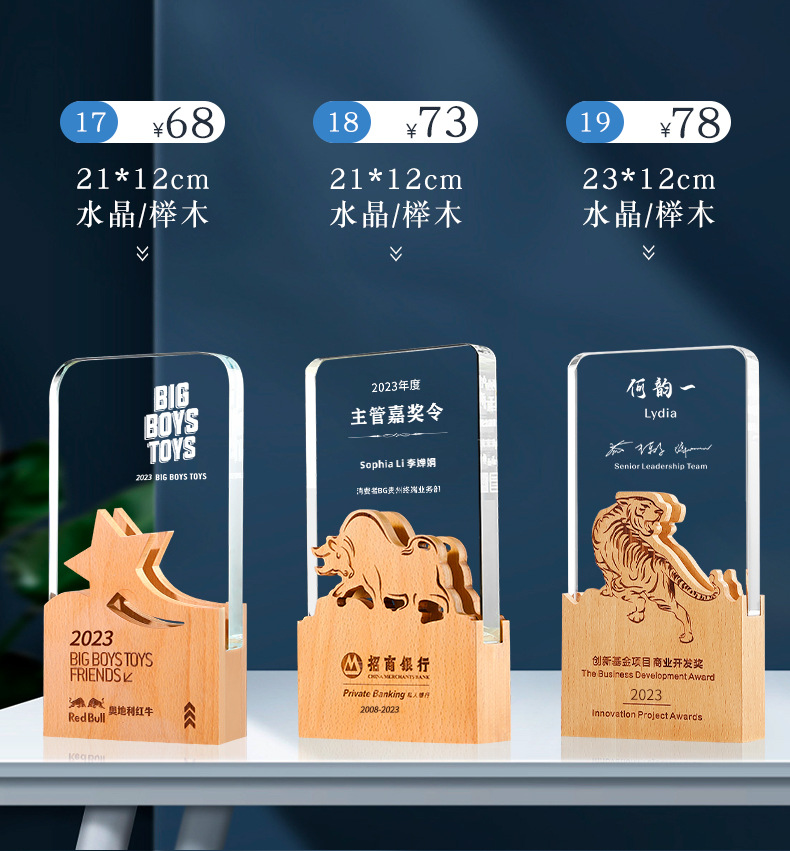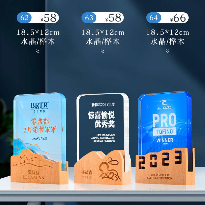 水晶奖杯批发刻字定制创意高端大气年会优秀员工实木质奖杯颁奖牌