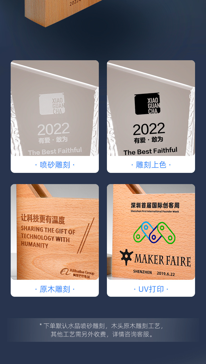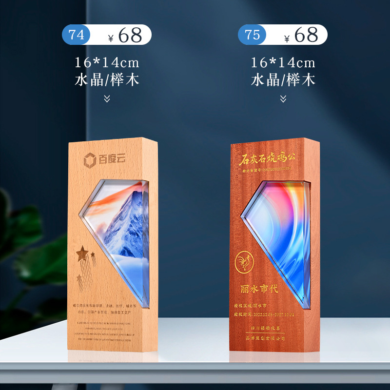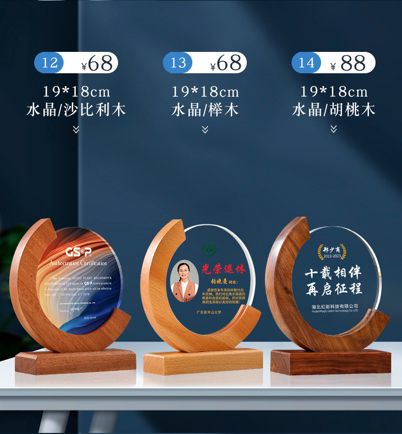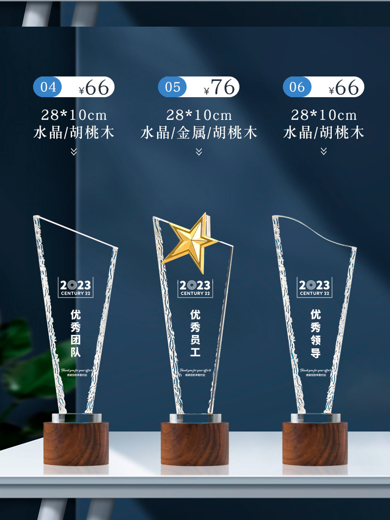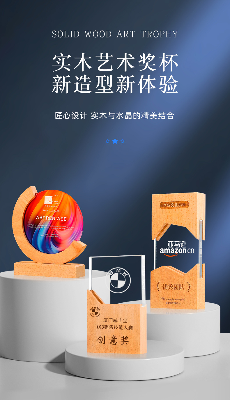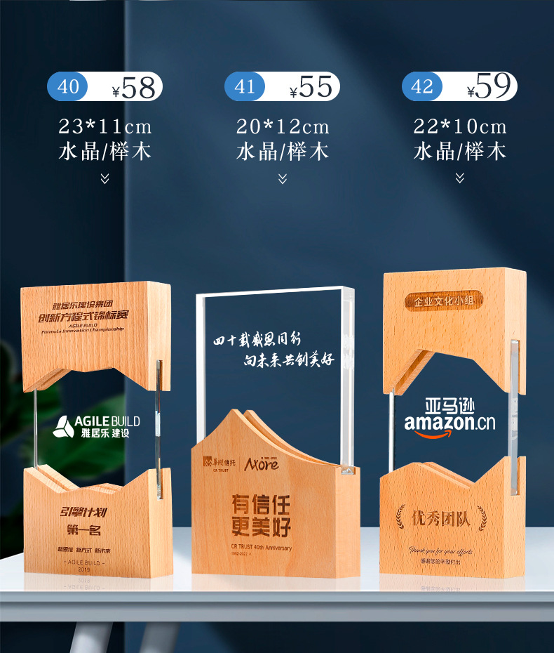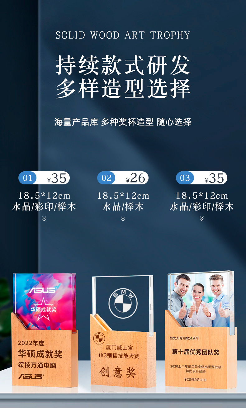 水晶奖杯批发刻字定制创意高端大气年会优秀员工实木质奖杯颁奖牌