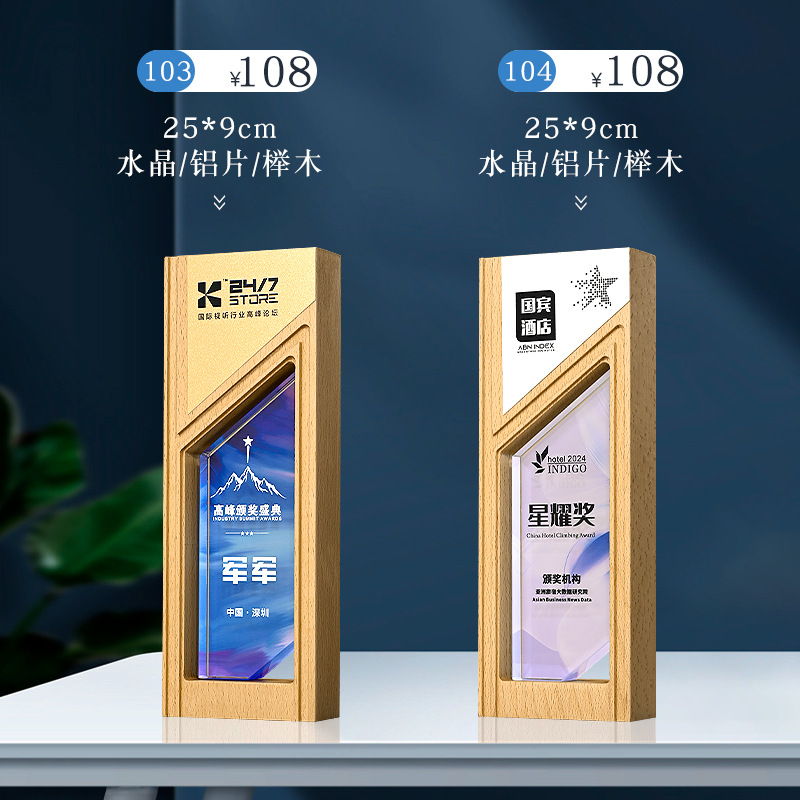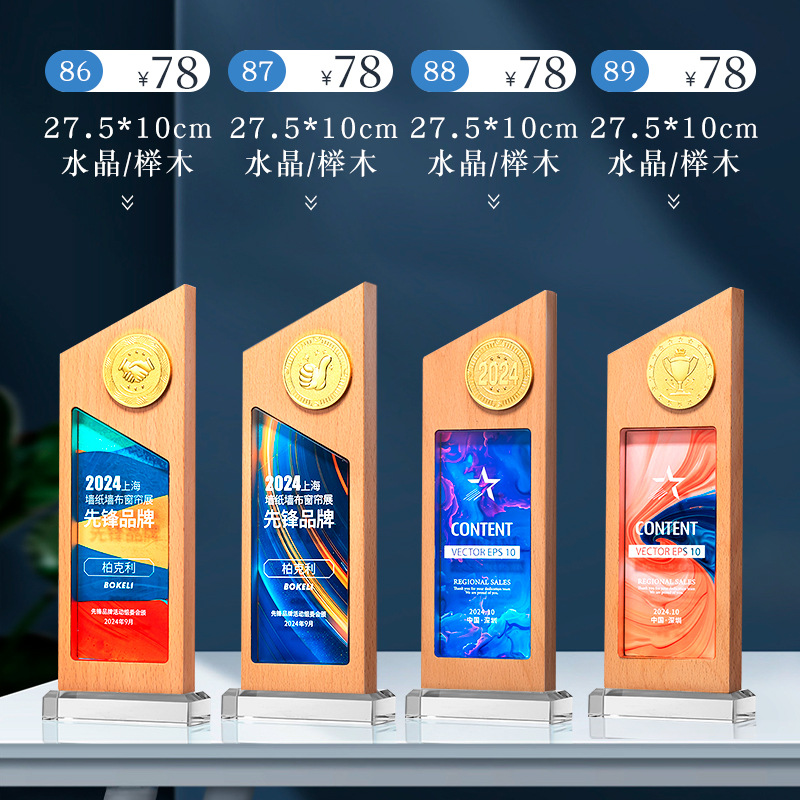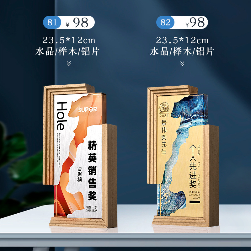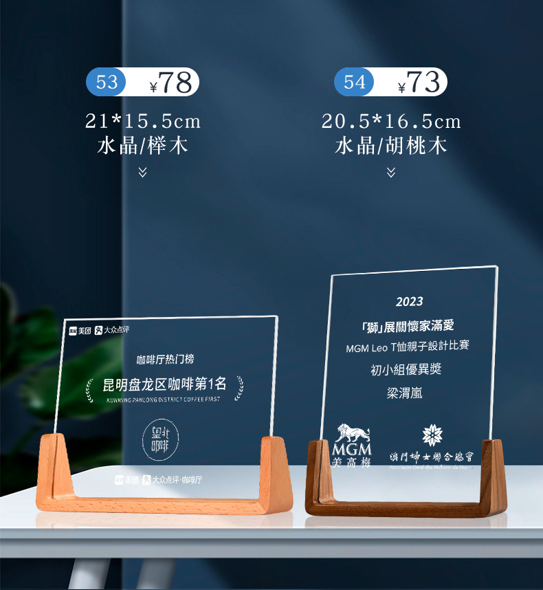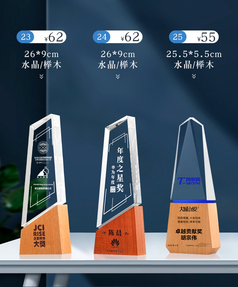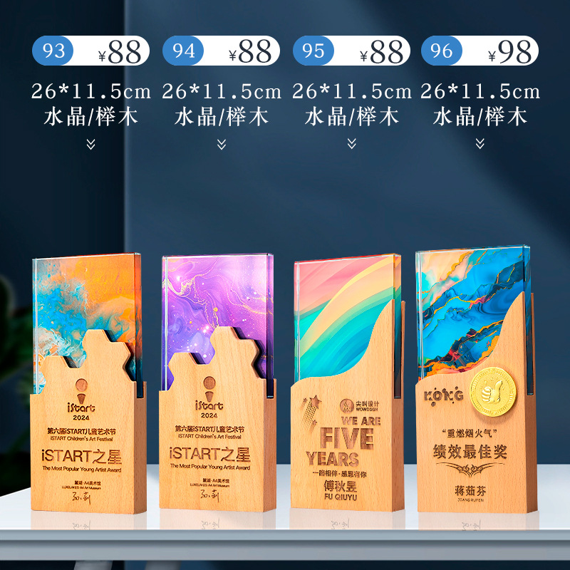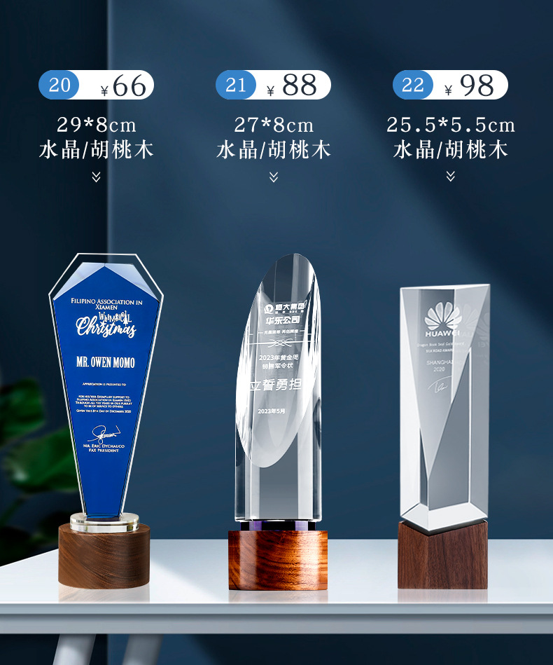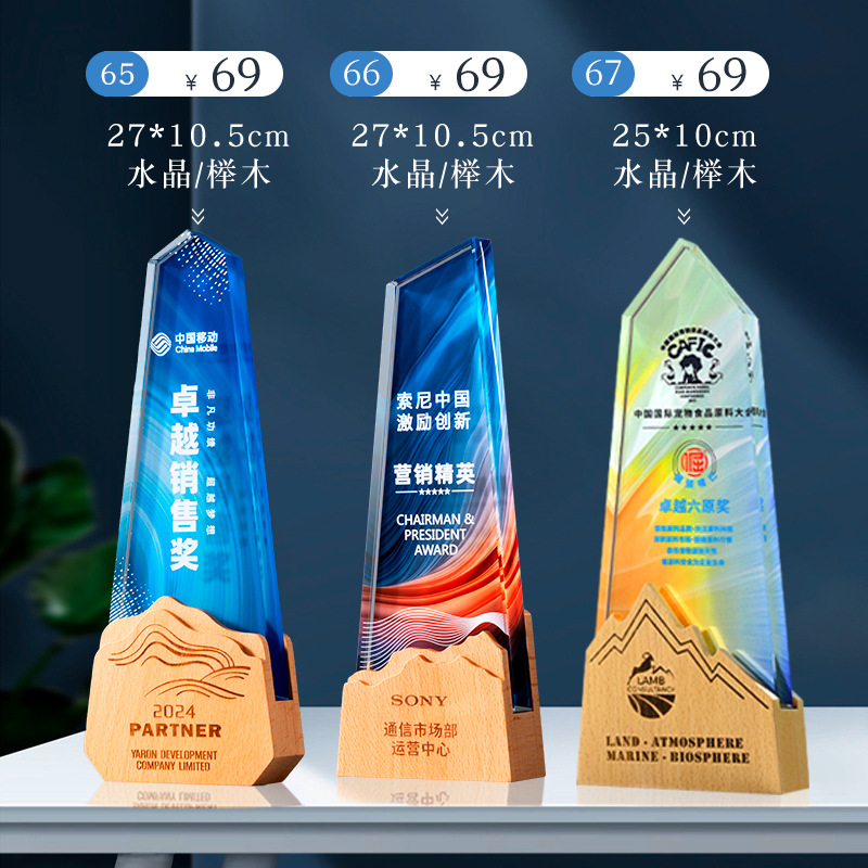 水晶奖杯批发刻字定制创意高端大气年会优秀员工实木质奖杯颁奖牌