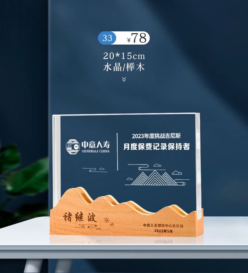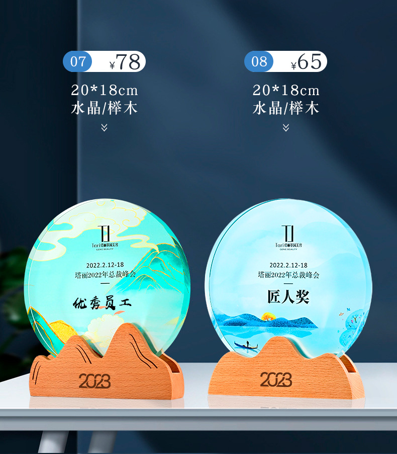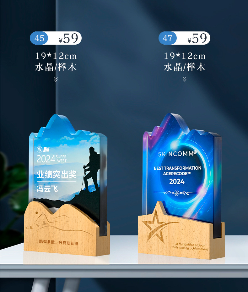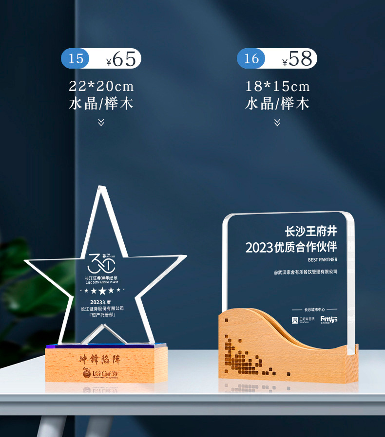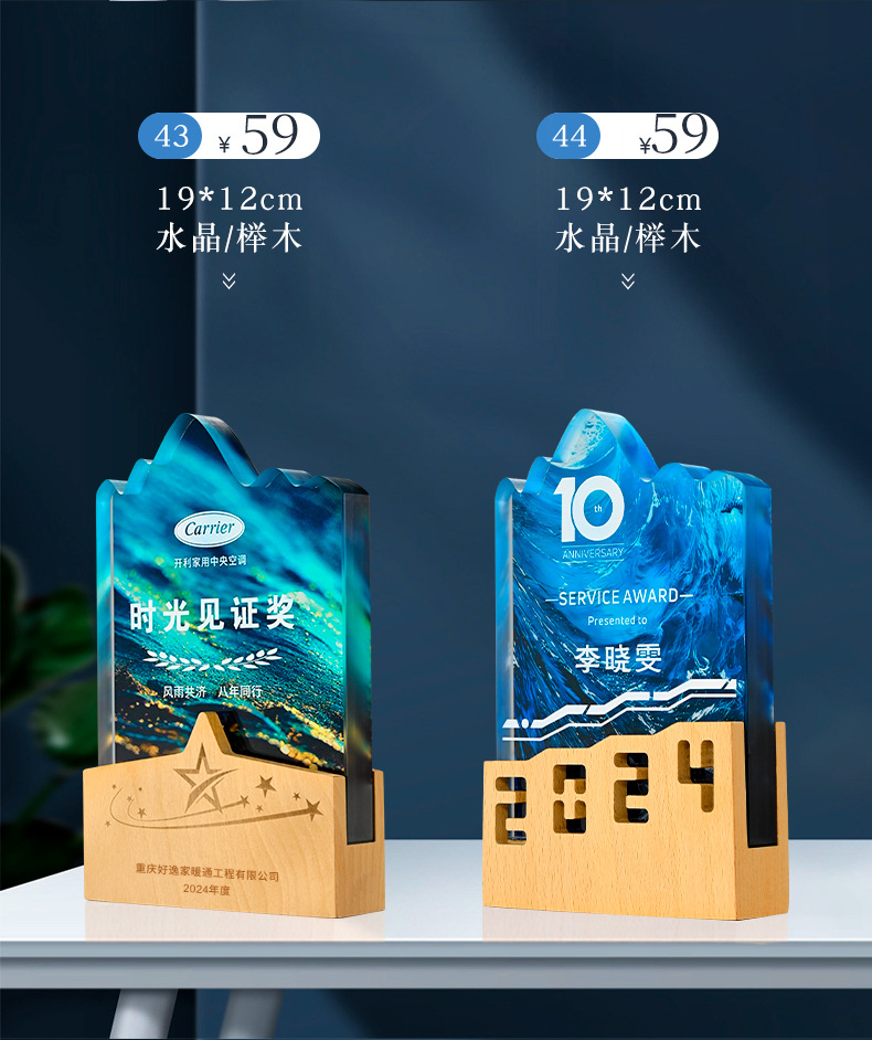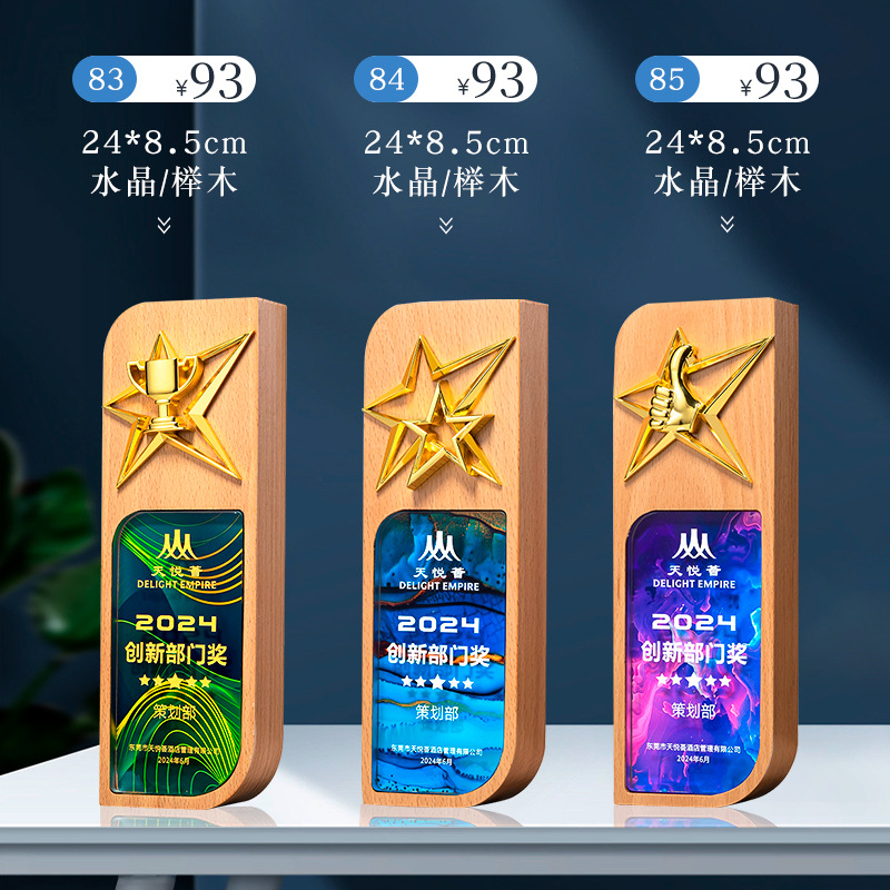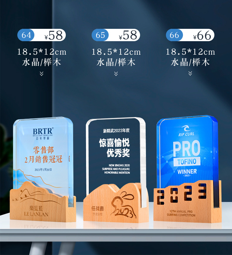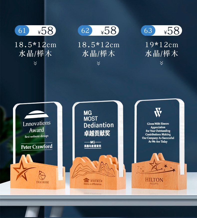 水晶奖杯批发刻字定制创意高端大气年会优秀员工实木质奖杯颁奖牌