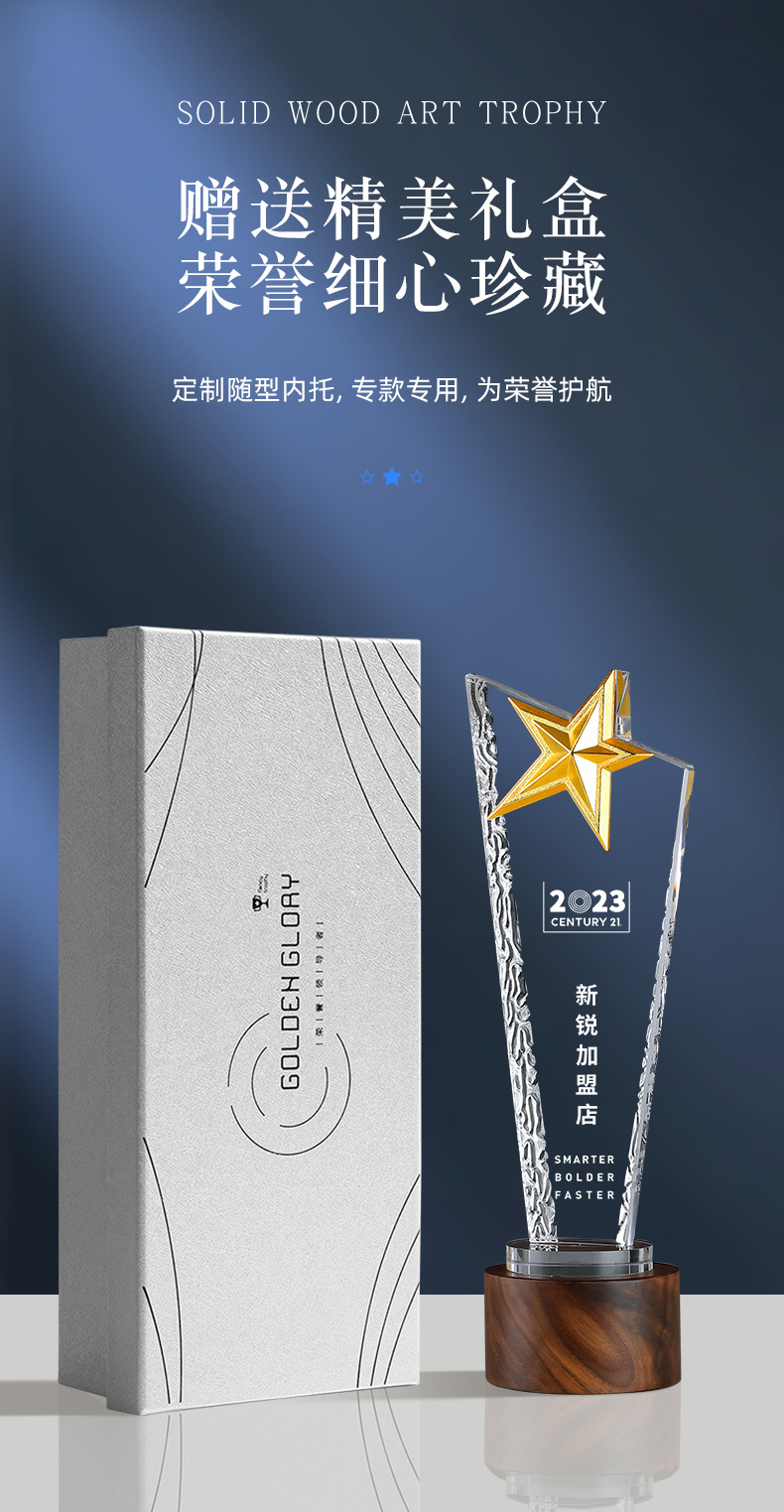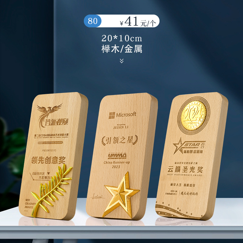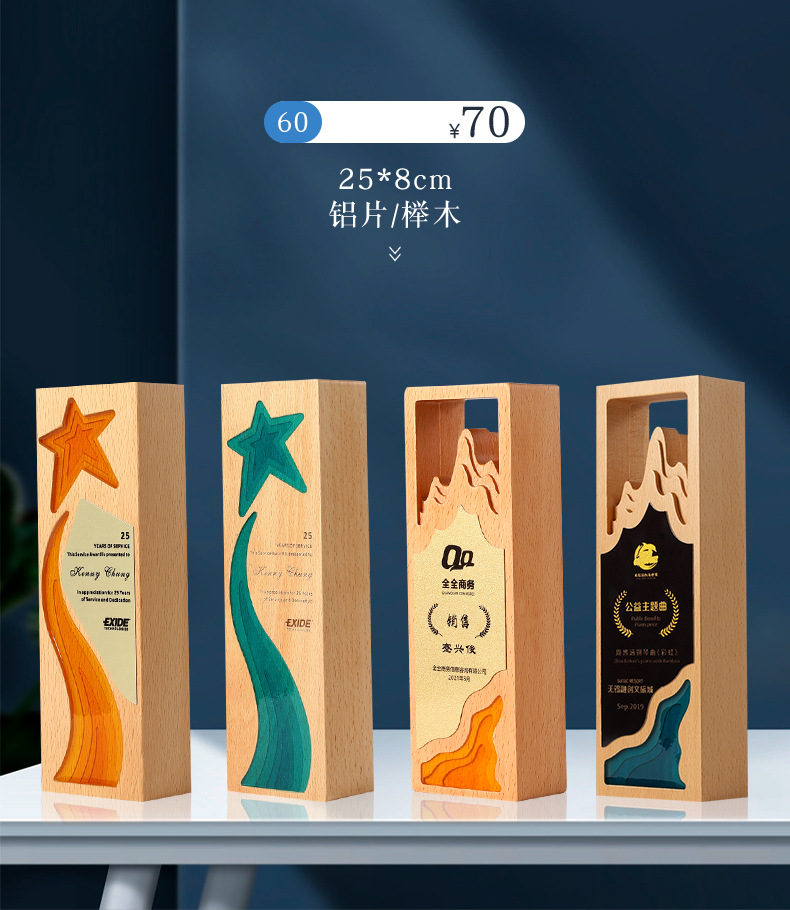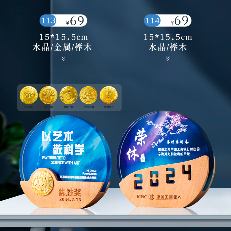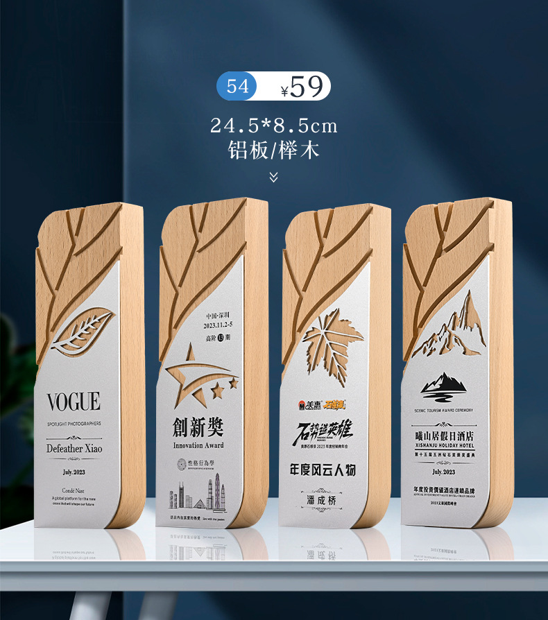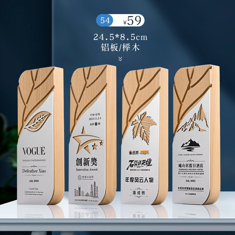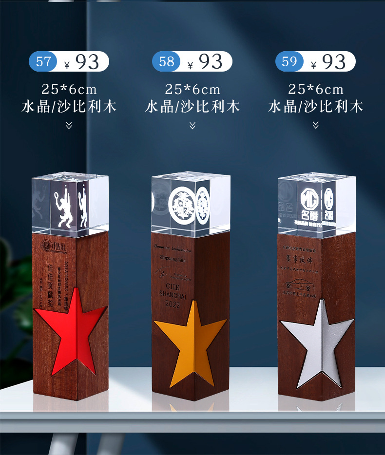 水晶奖杯批发刻字定制创意高端大气年会优秀员工实木质奖杯颁奖牌