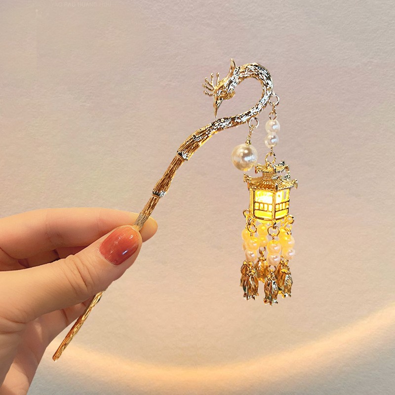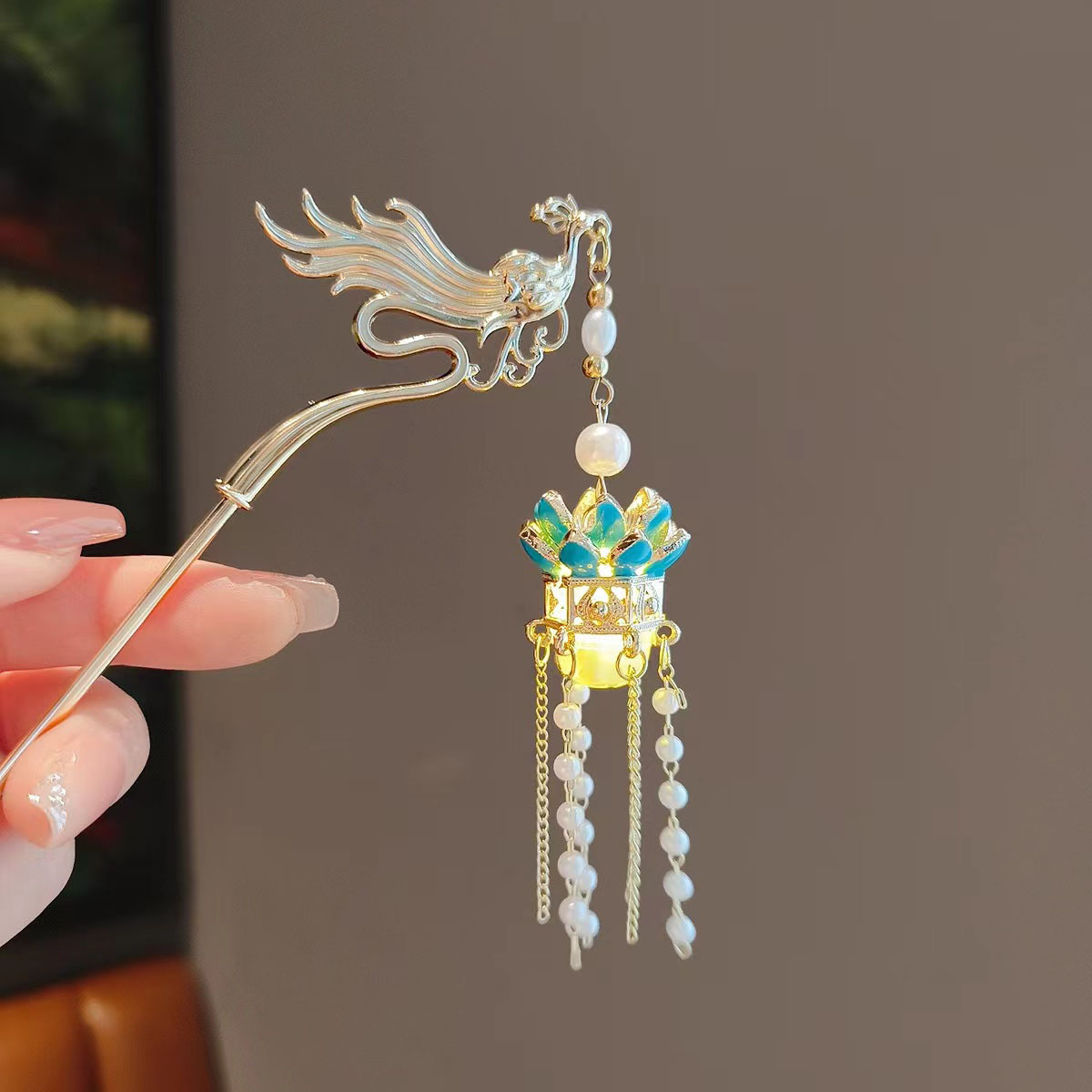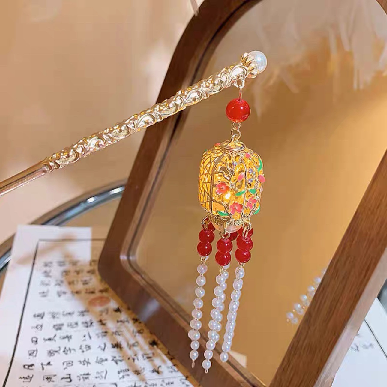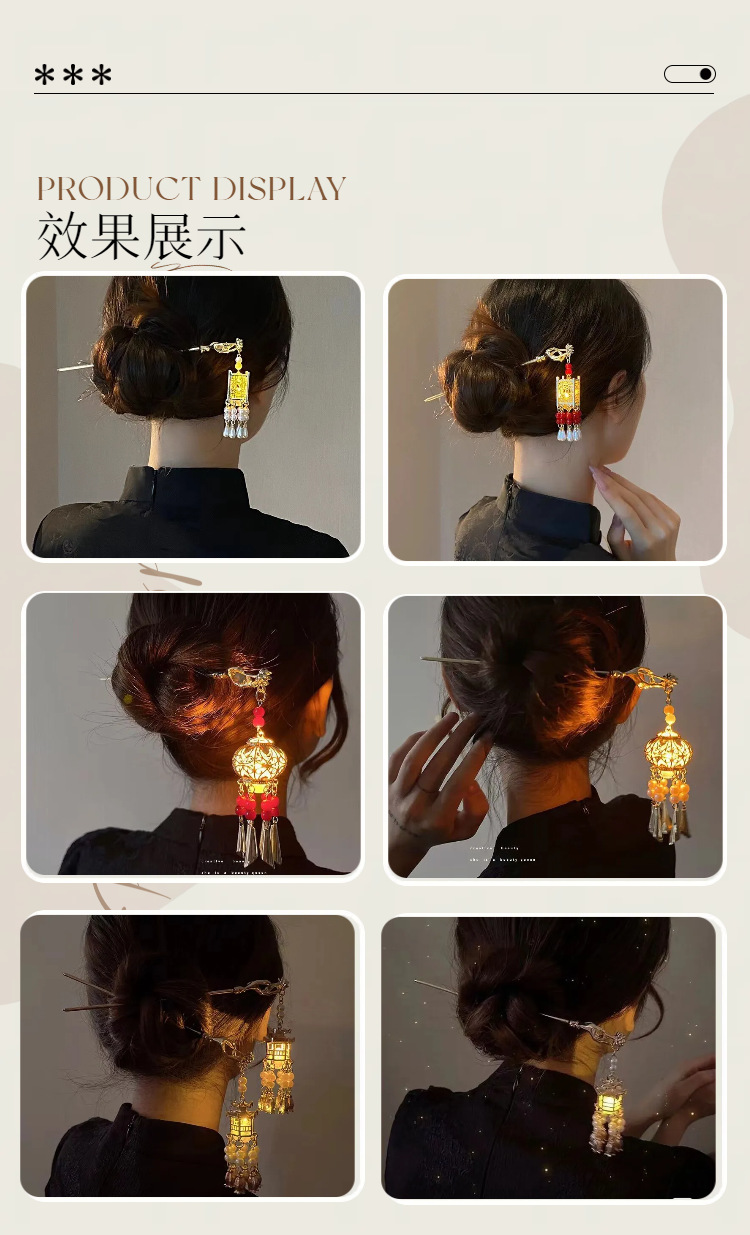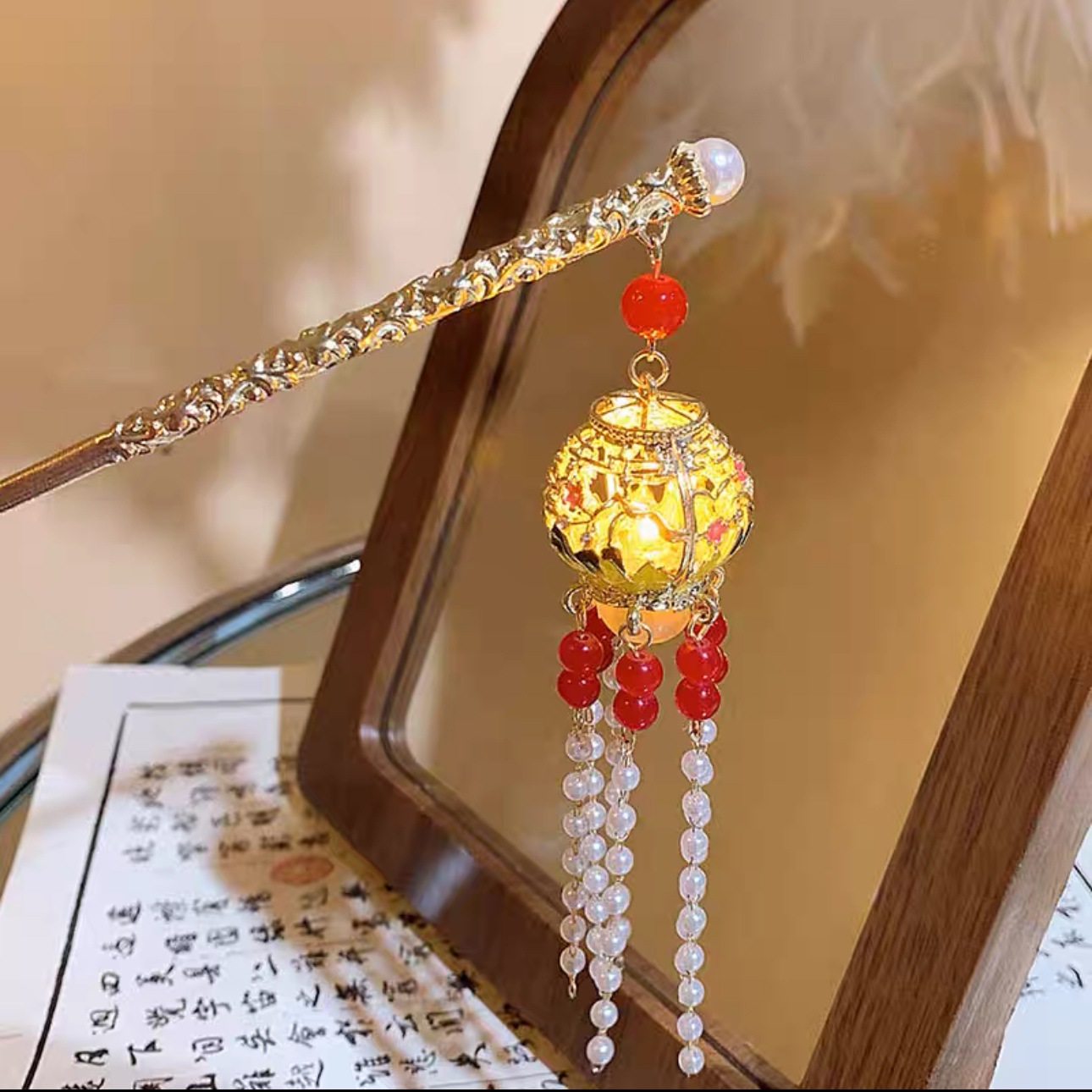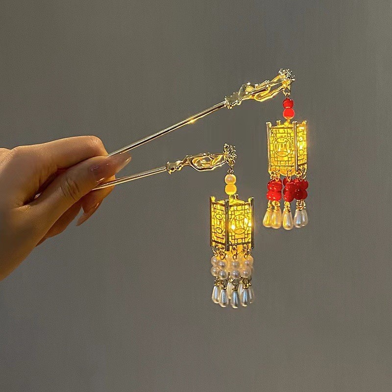 复古流苏宫灯发簪高级感发光簪子女古风头饰汉服发饰日常百搭饰品