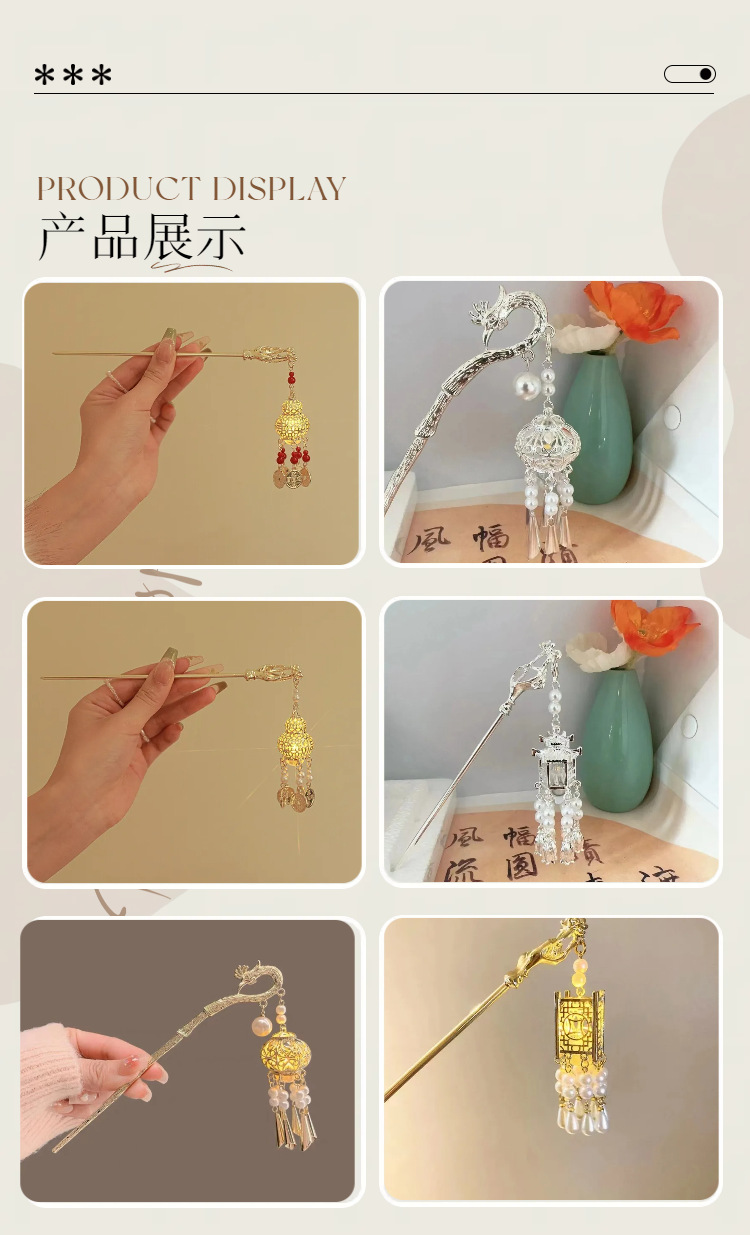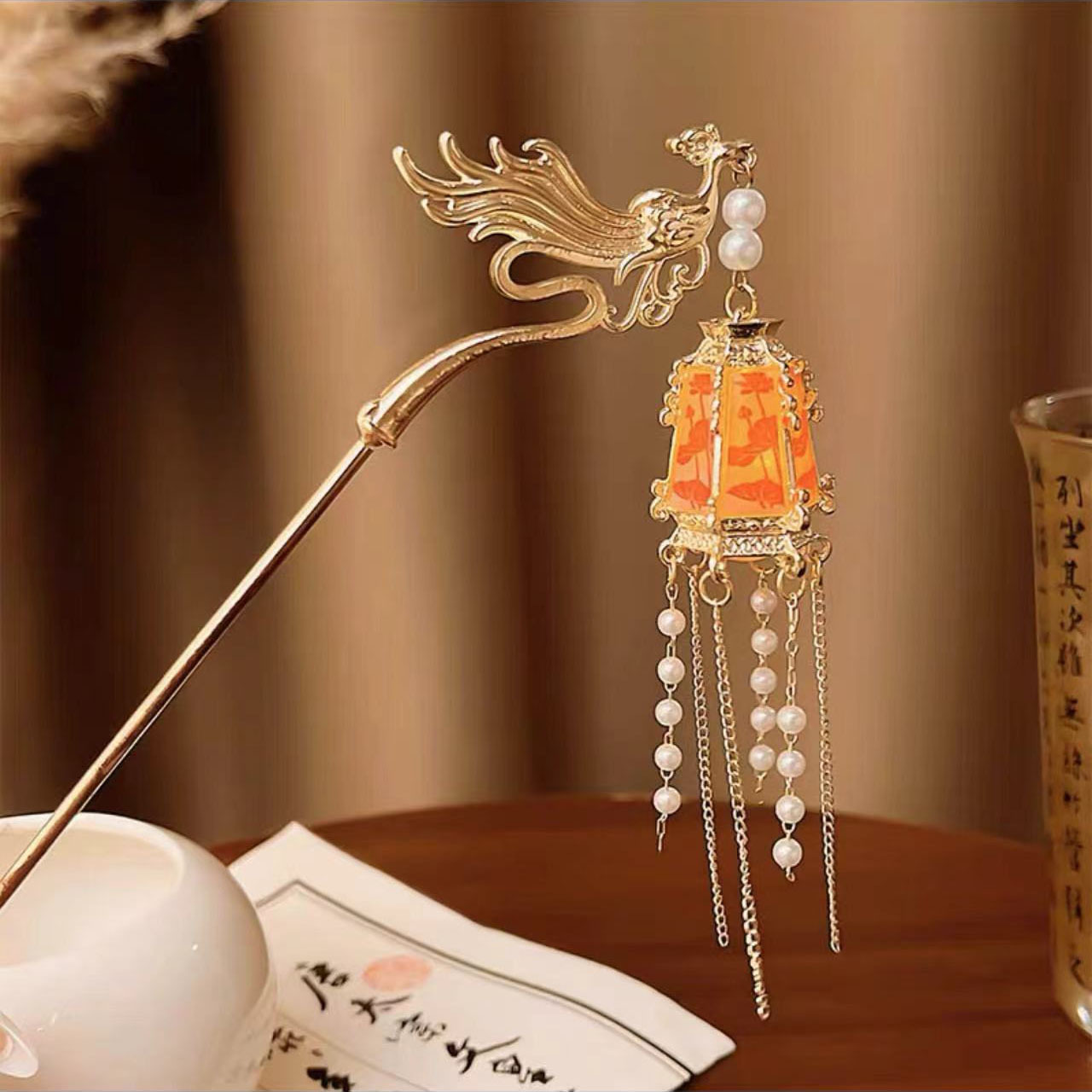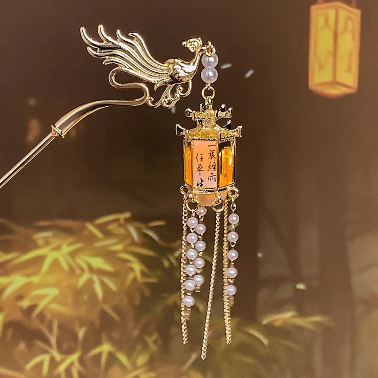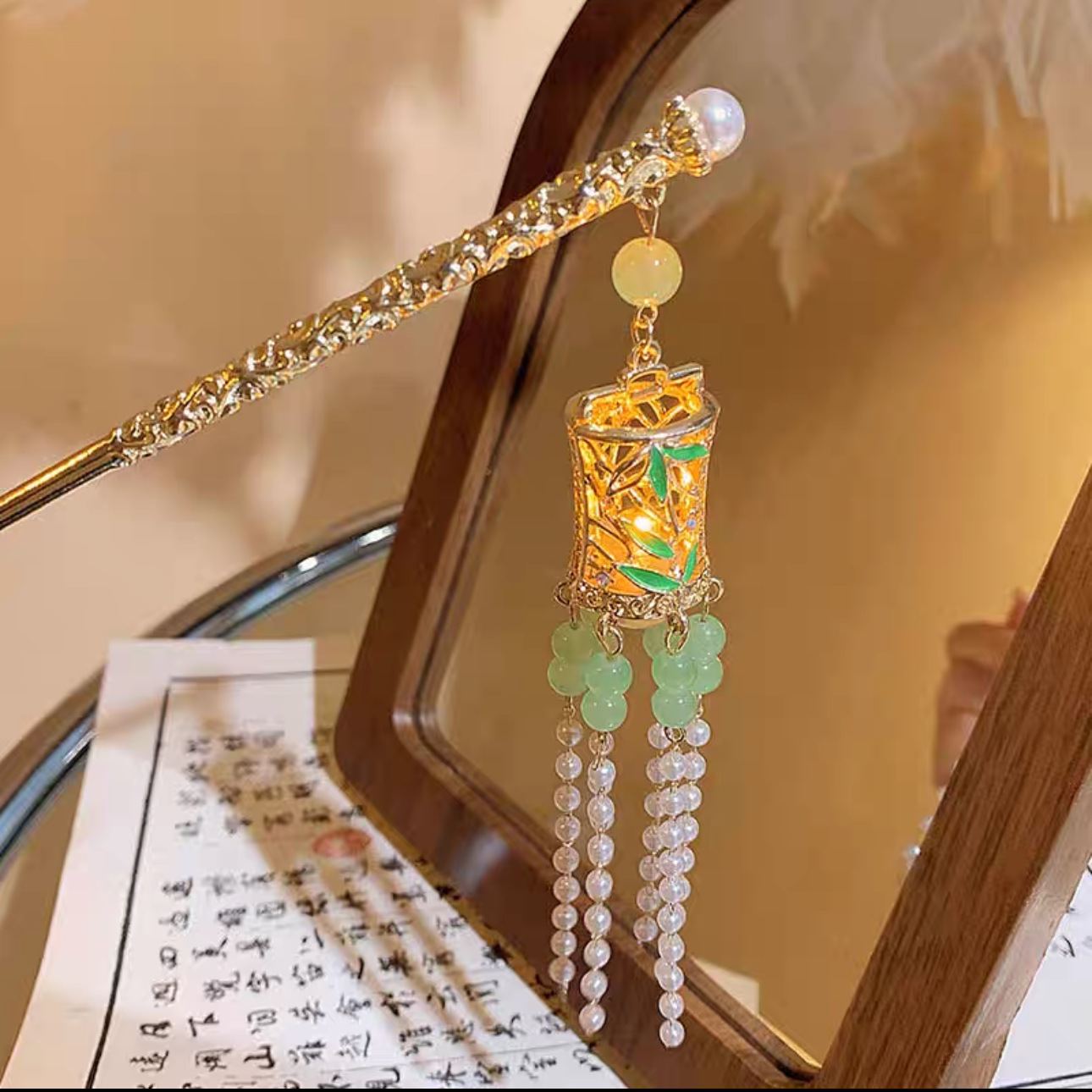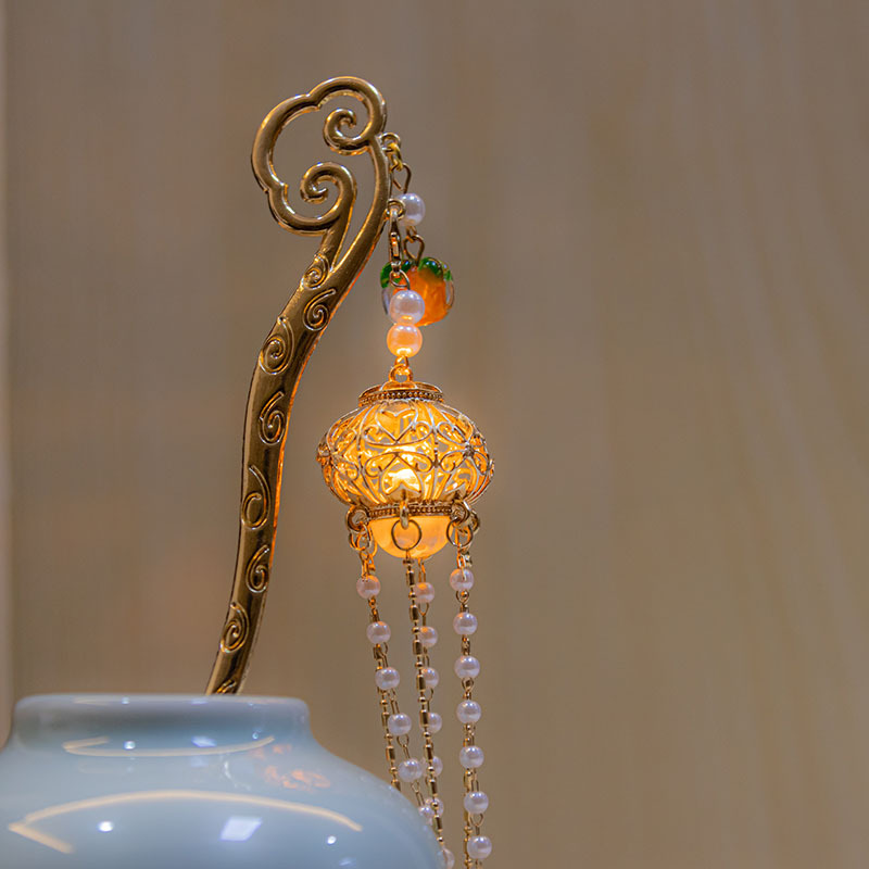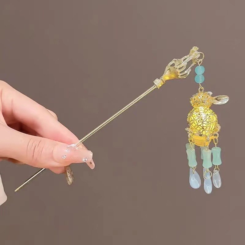 复古流苏宫灯发簪高级感发光簪子女古风头饰汉服发饰日常百搭饰品