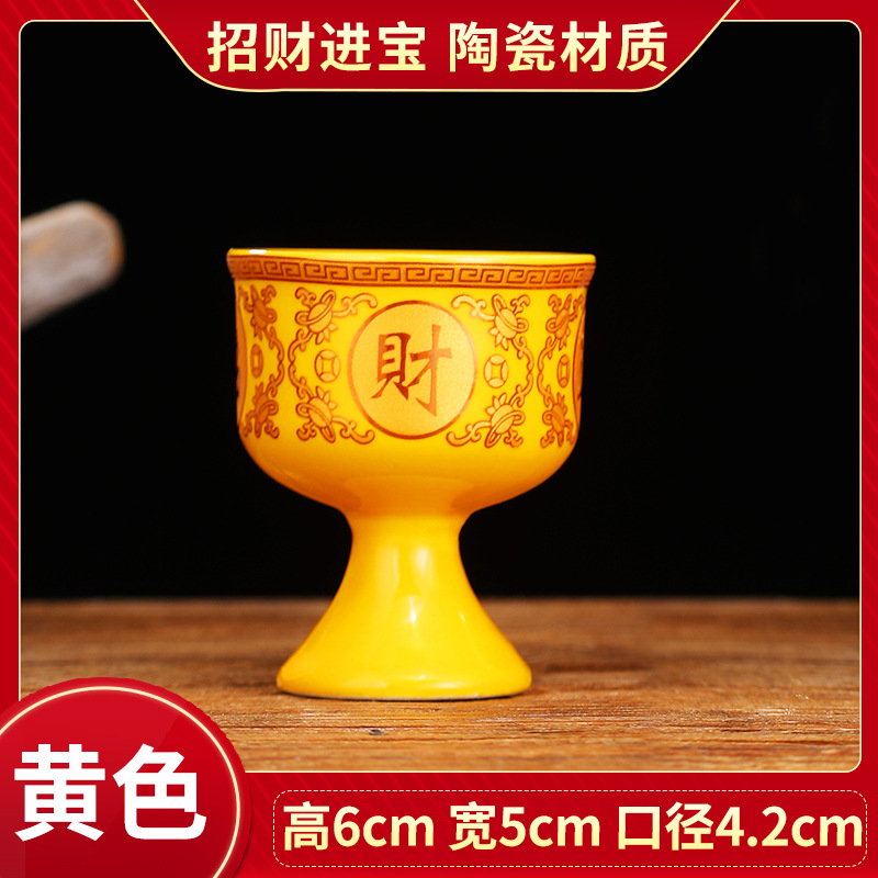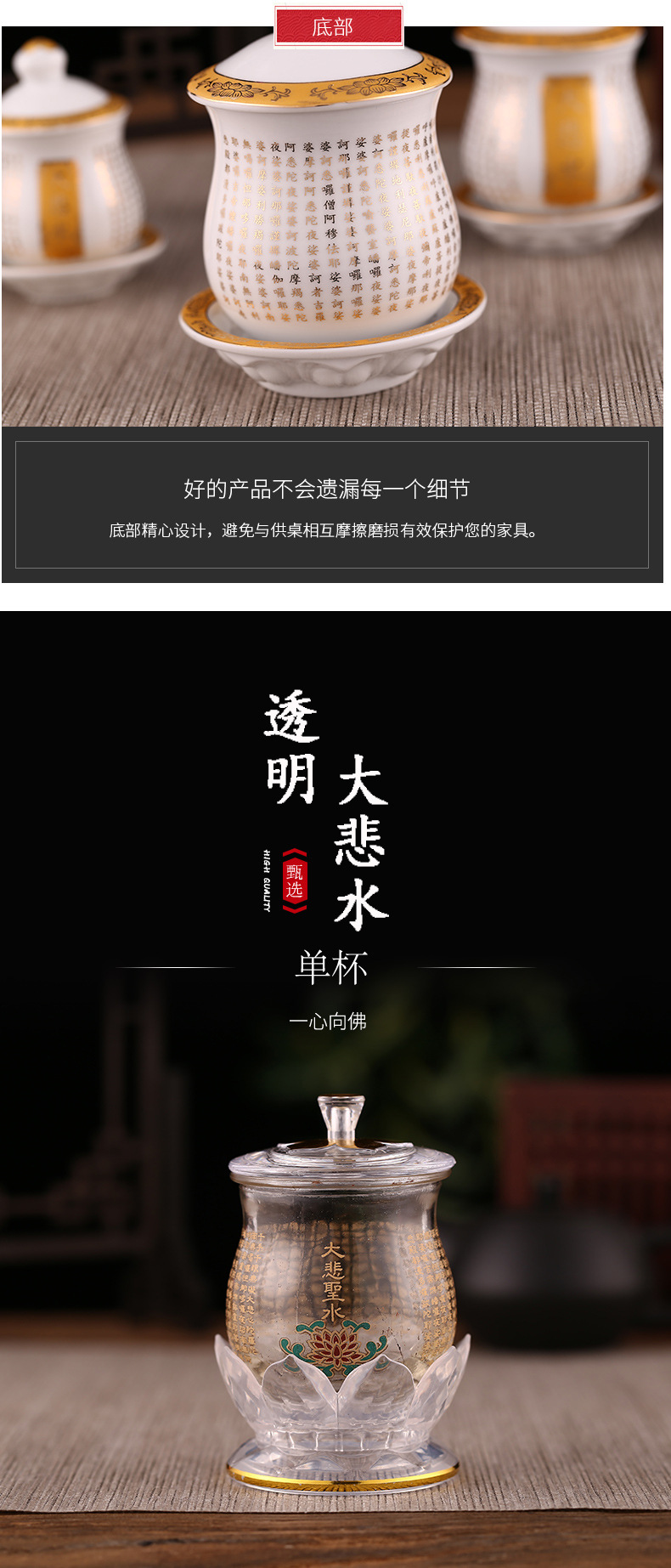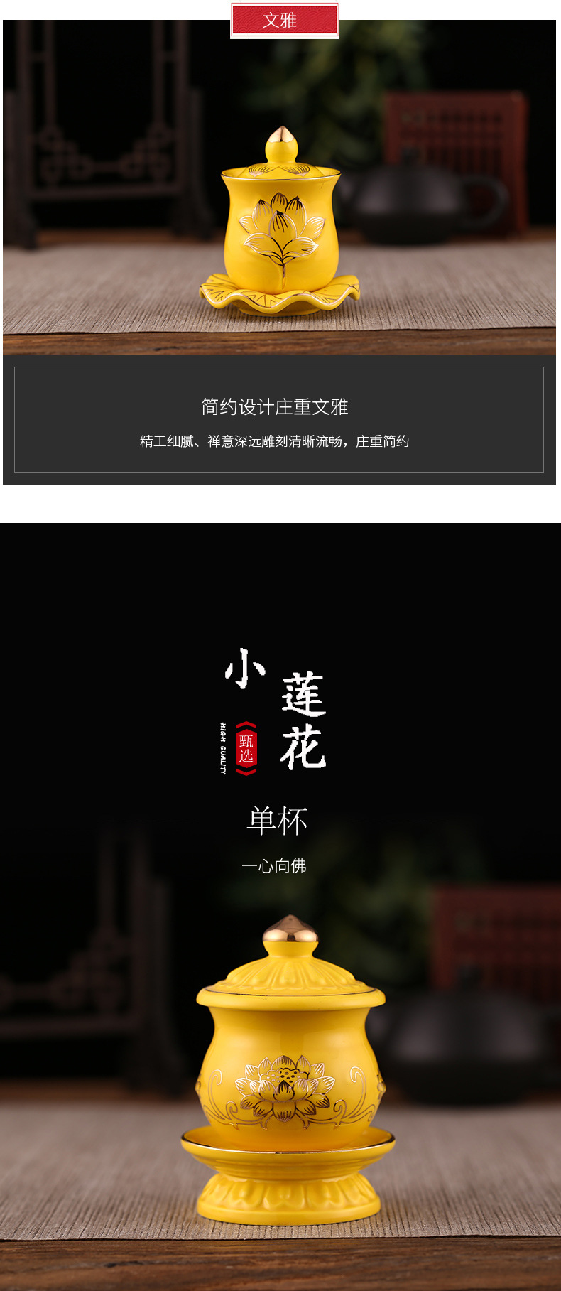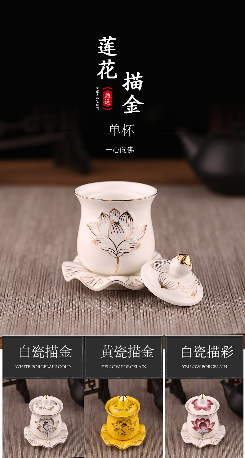 佛前供水杯 陶瓷圣水杯手绘浮雕描金莲花观音净水杯供具用品