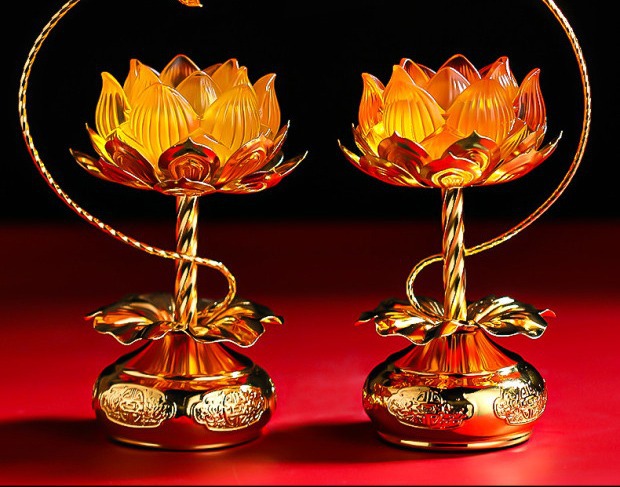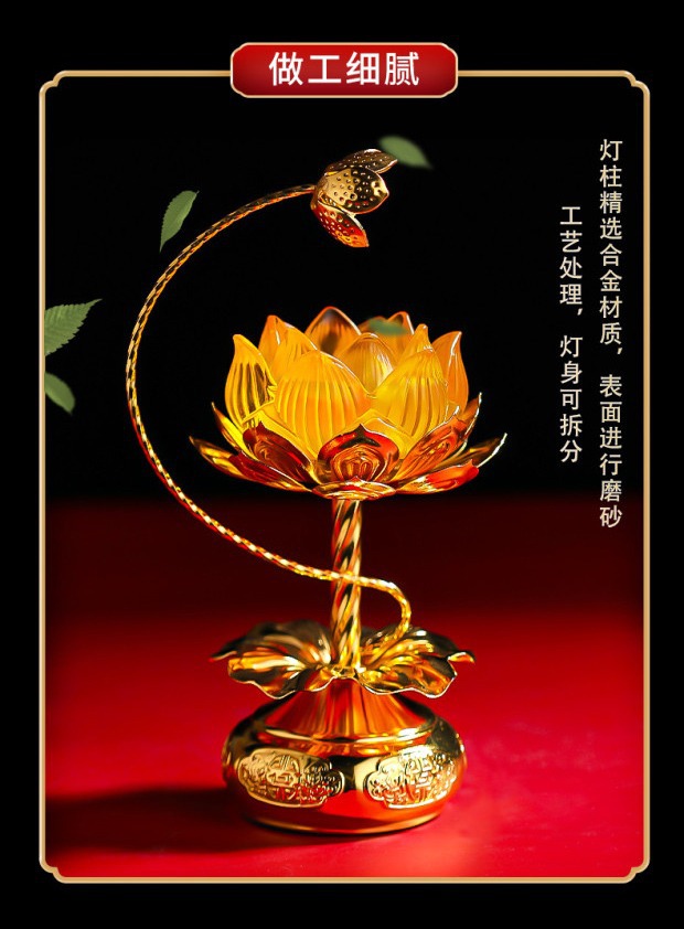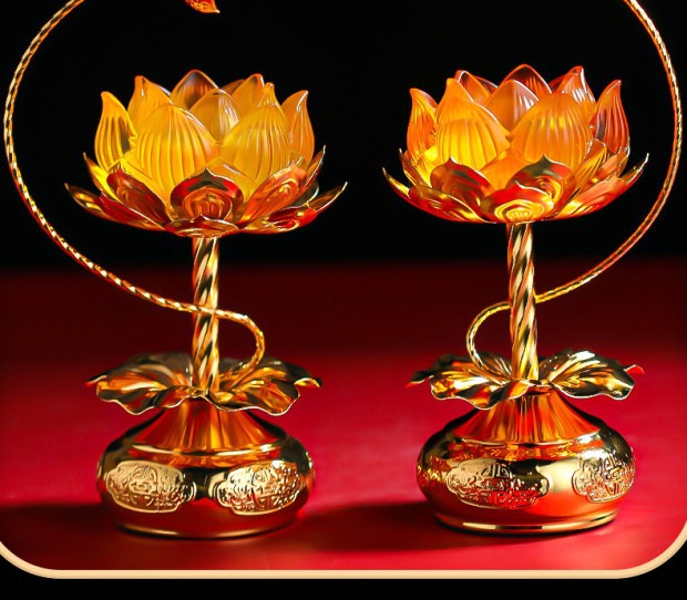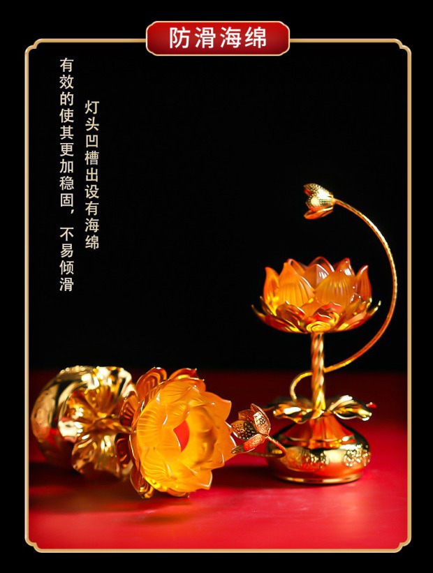 琉璃酥油灯底座家用莲花灯佛前供奉专用蜡烛台摆件供佛长明灯灯盏
