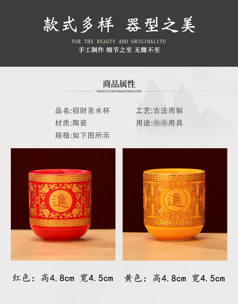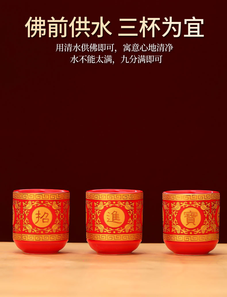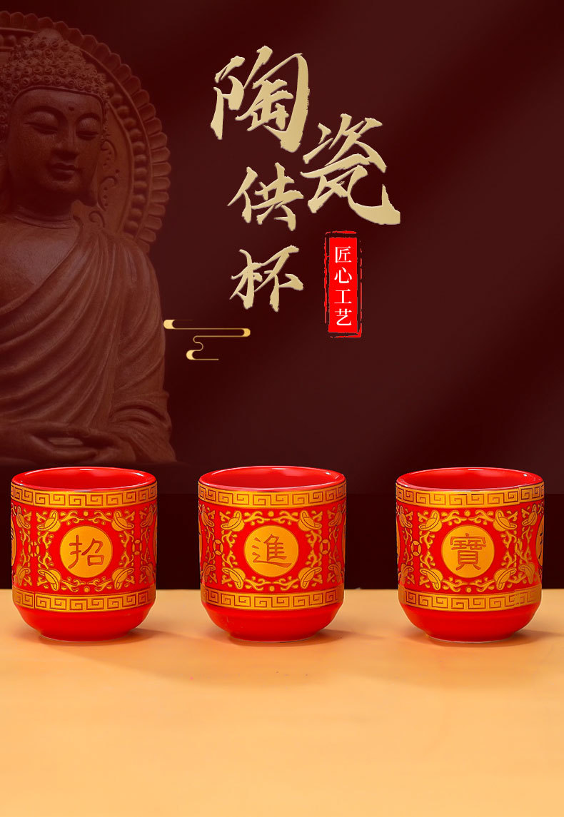 陶瓷供杯家用观音莲花净水杯大悲水供佛水杯贡杯财神爷圣水杯