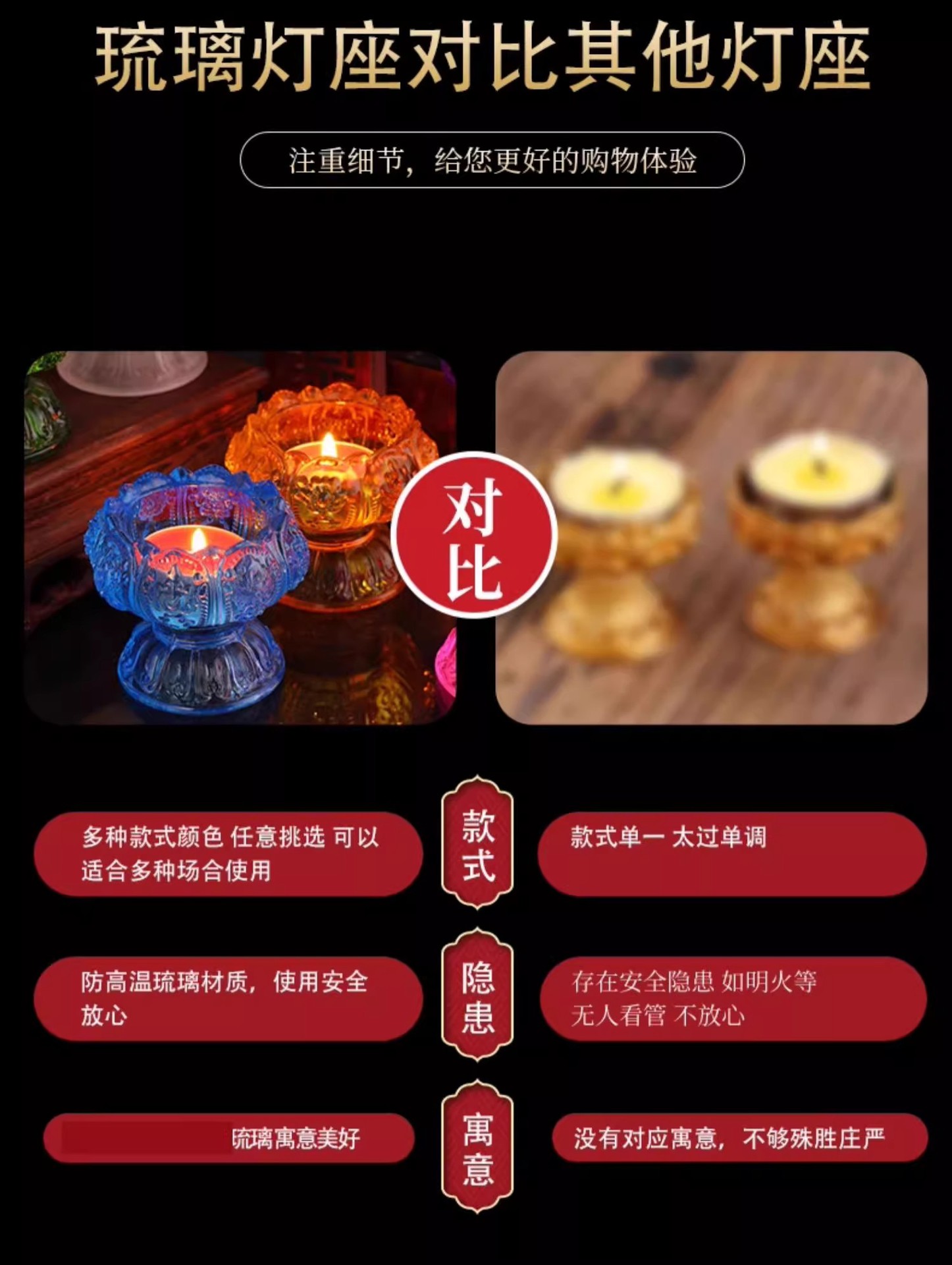 七彩琉璃莲花酥油灯座佛前八吉祥供灯长明灯蜡烛台佛堂供佛灯灯架