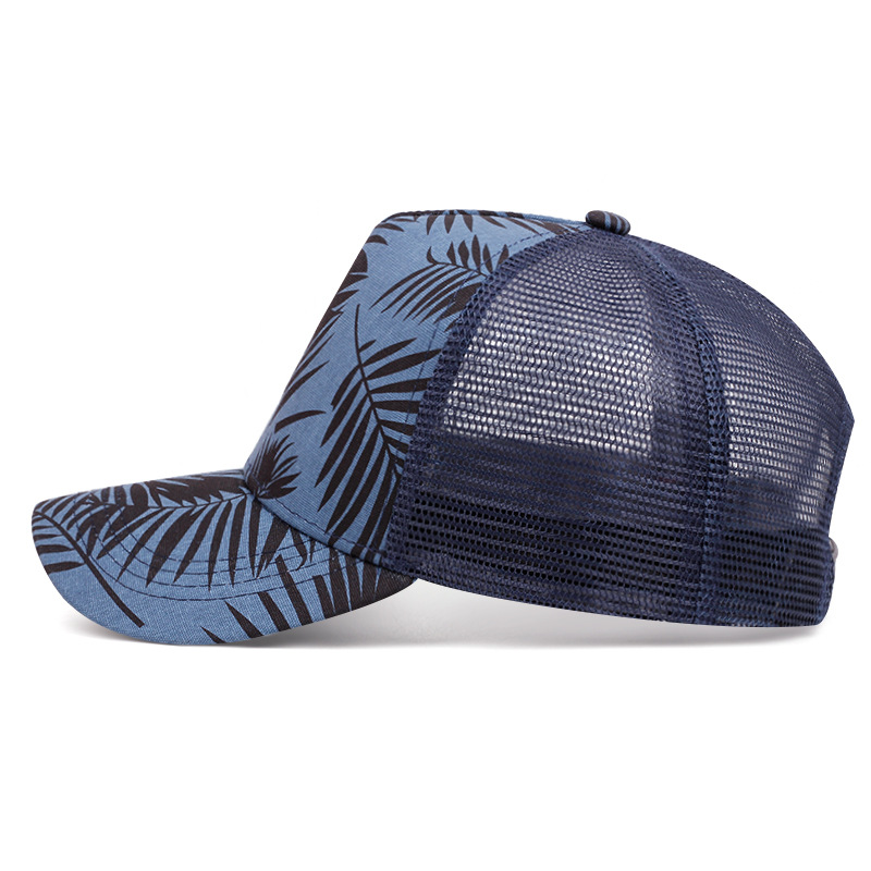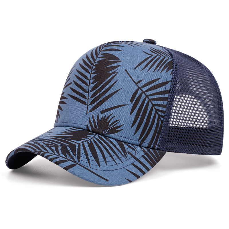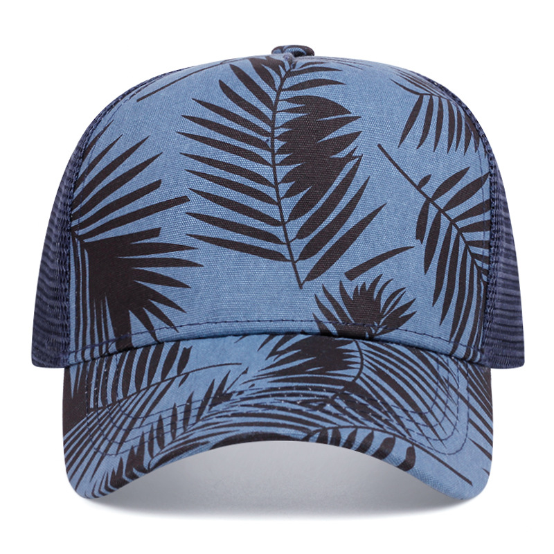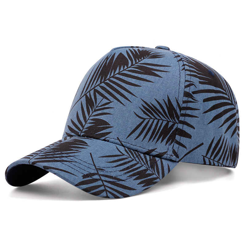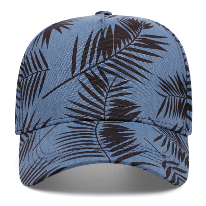 新款浅蓝色系列竹叶图案印刷男女通用百搭小众弯檐遮阳防晒帽