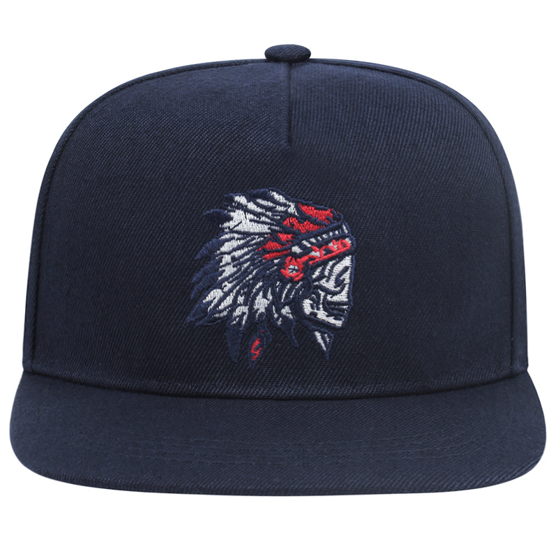 新款跨境印第安人藏青色休闲中式时尚高档刺绣遮阳防晒平沿帽
