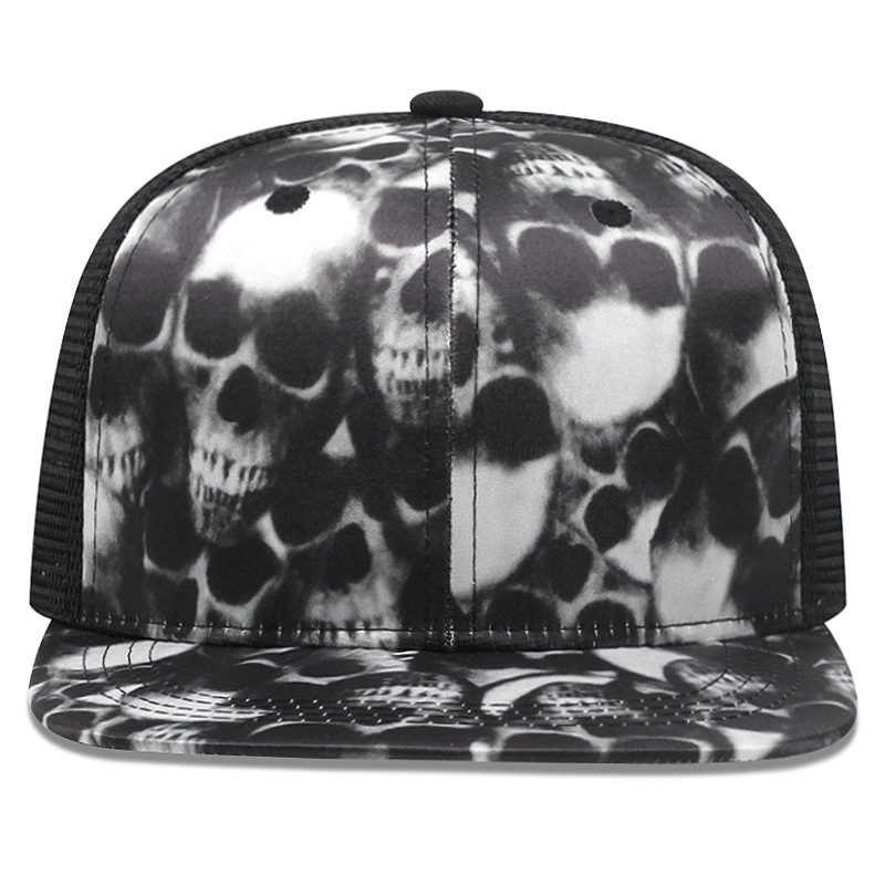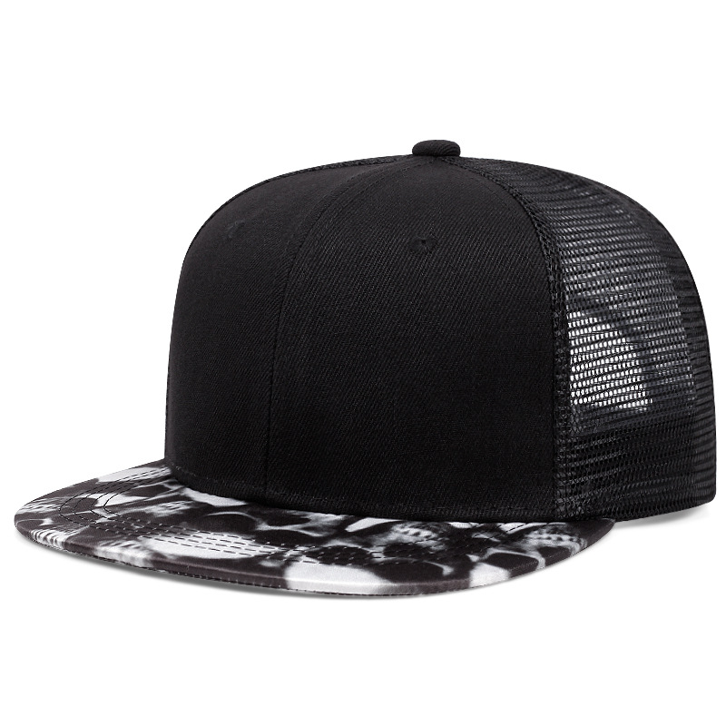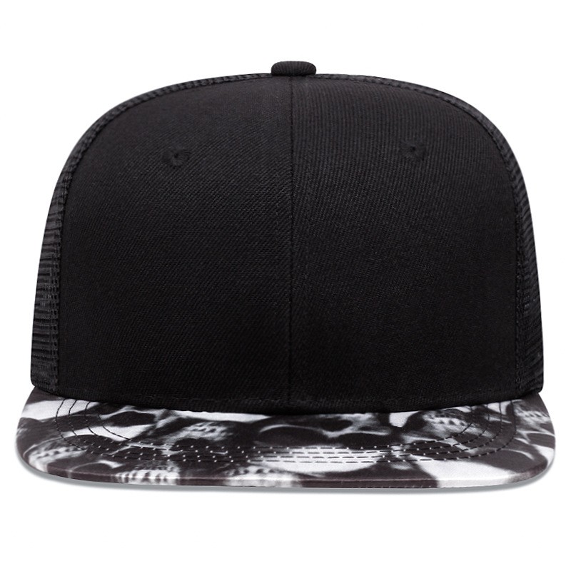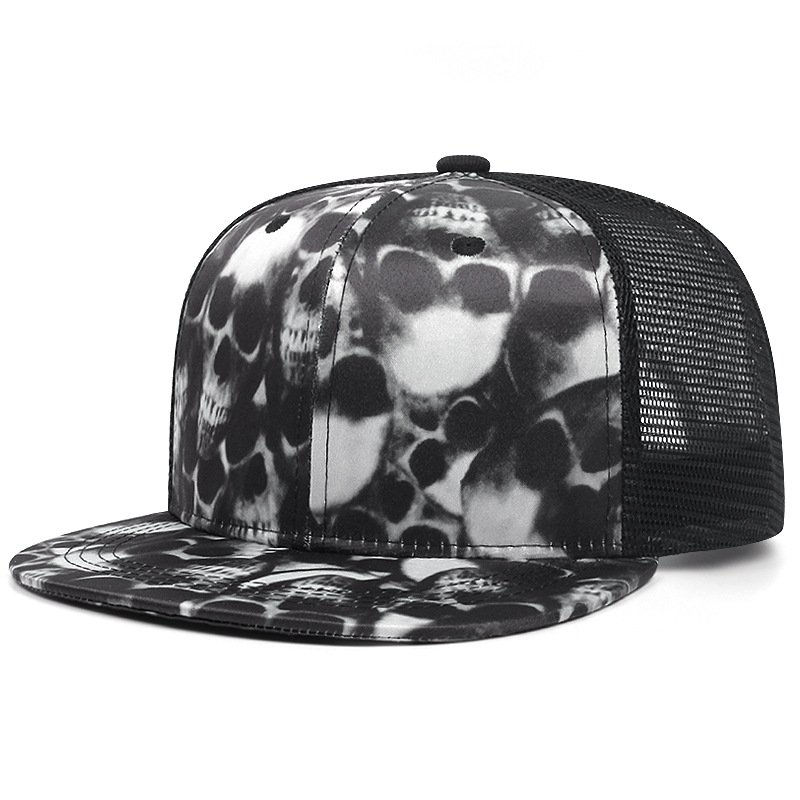 新款韩版时尚骷髅男士网帽户外运动遮阳百搭个性风潮嘻哈平沿帽