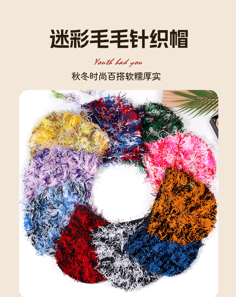 欧美跨境时尚迷彩短款毛线帽街头流行个性嘻哈户外保暖加厚包头帽